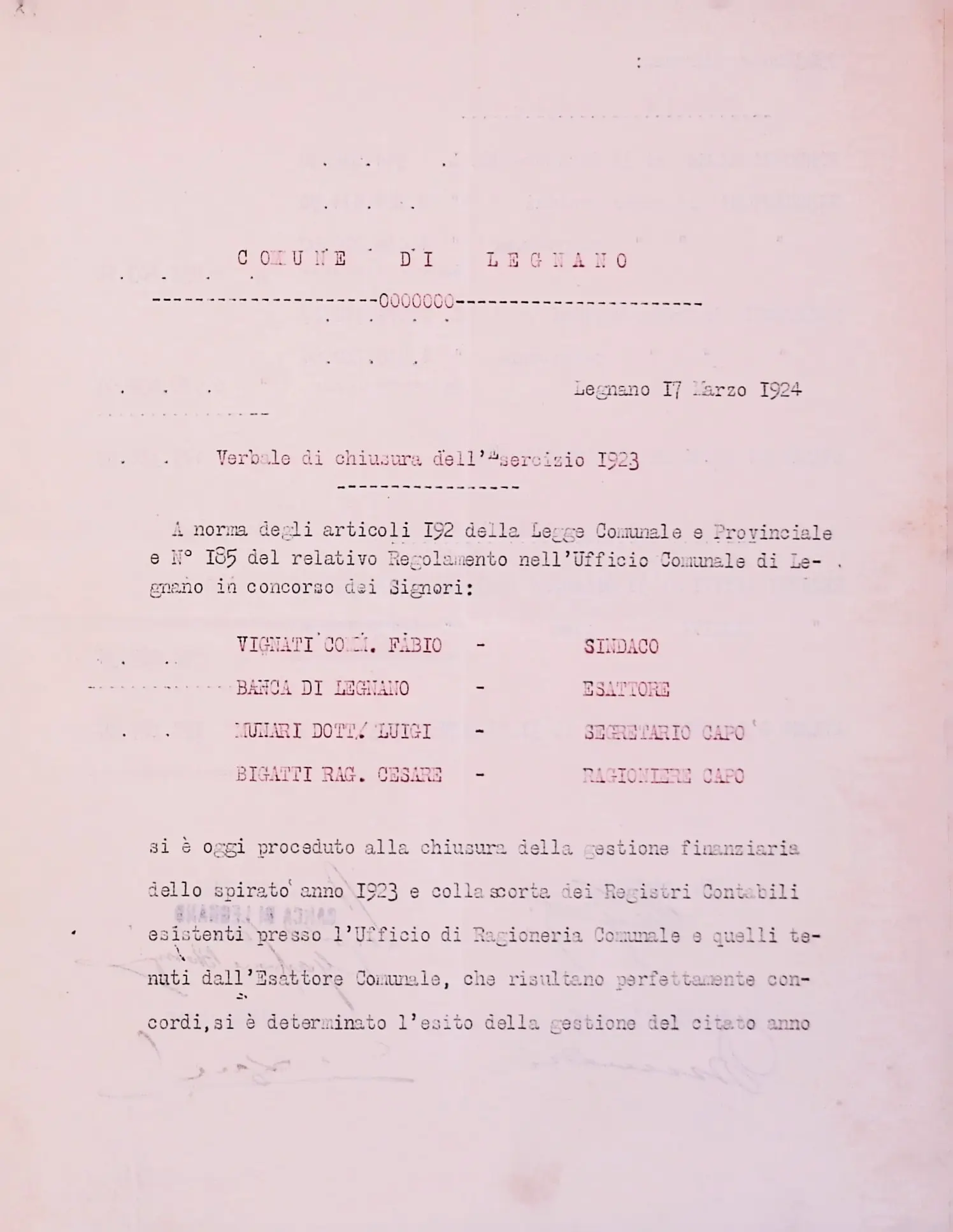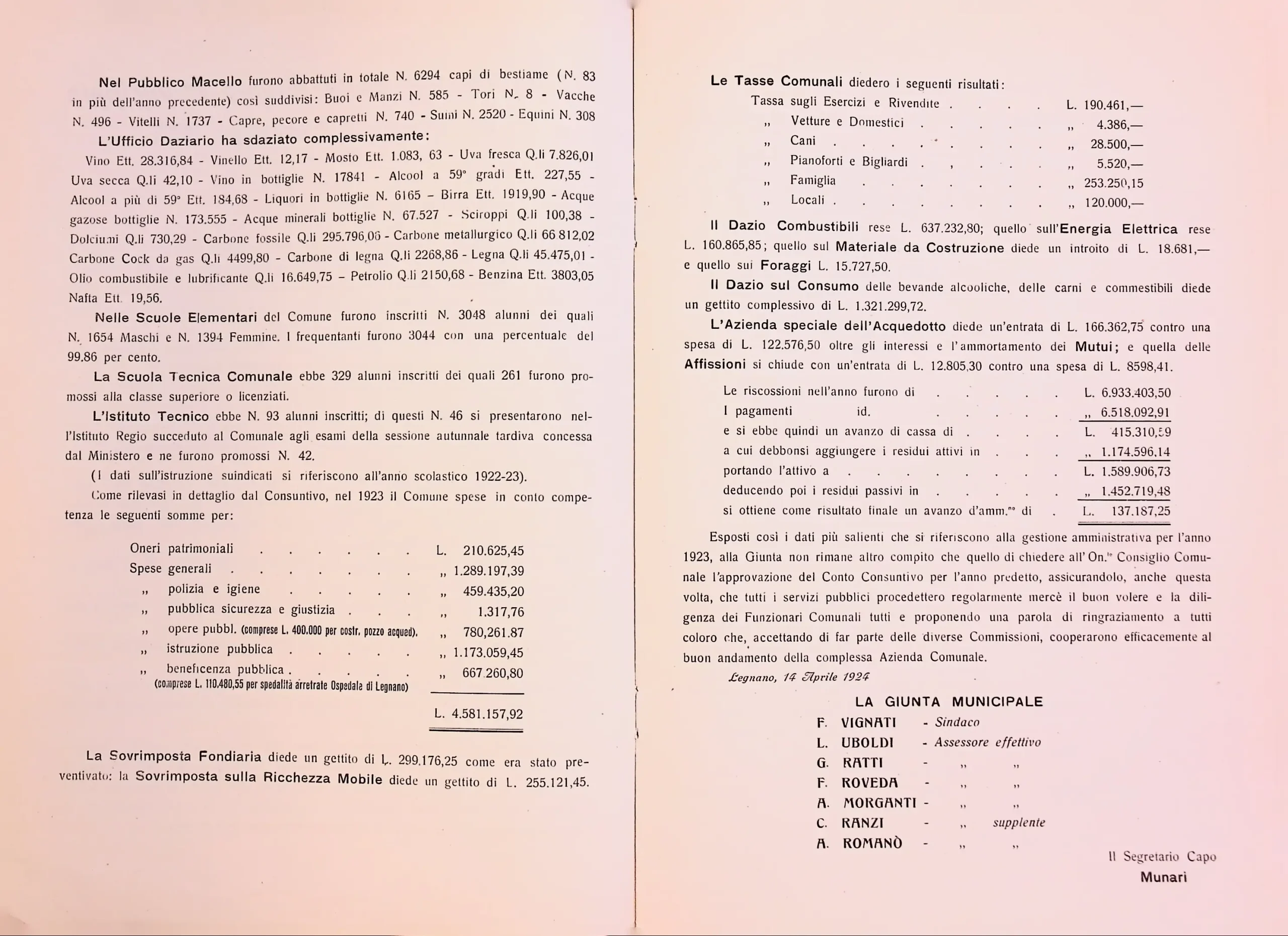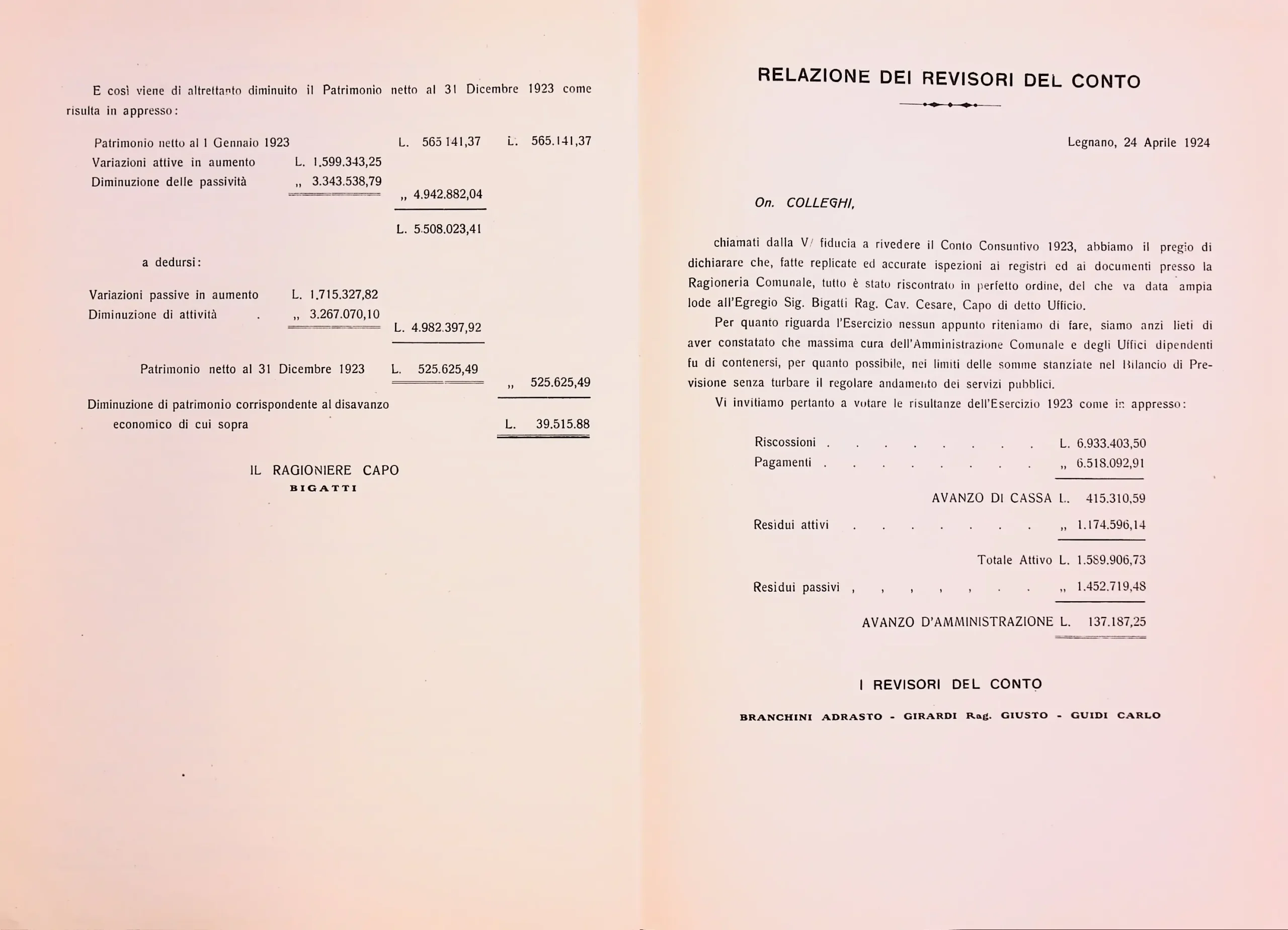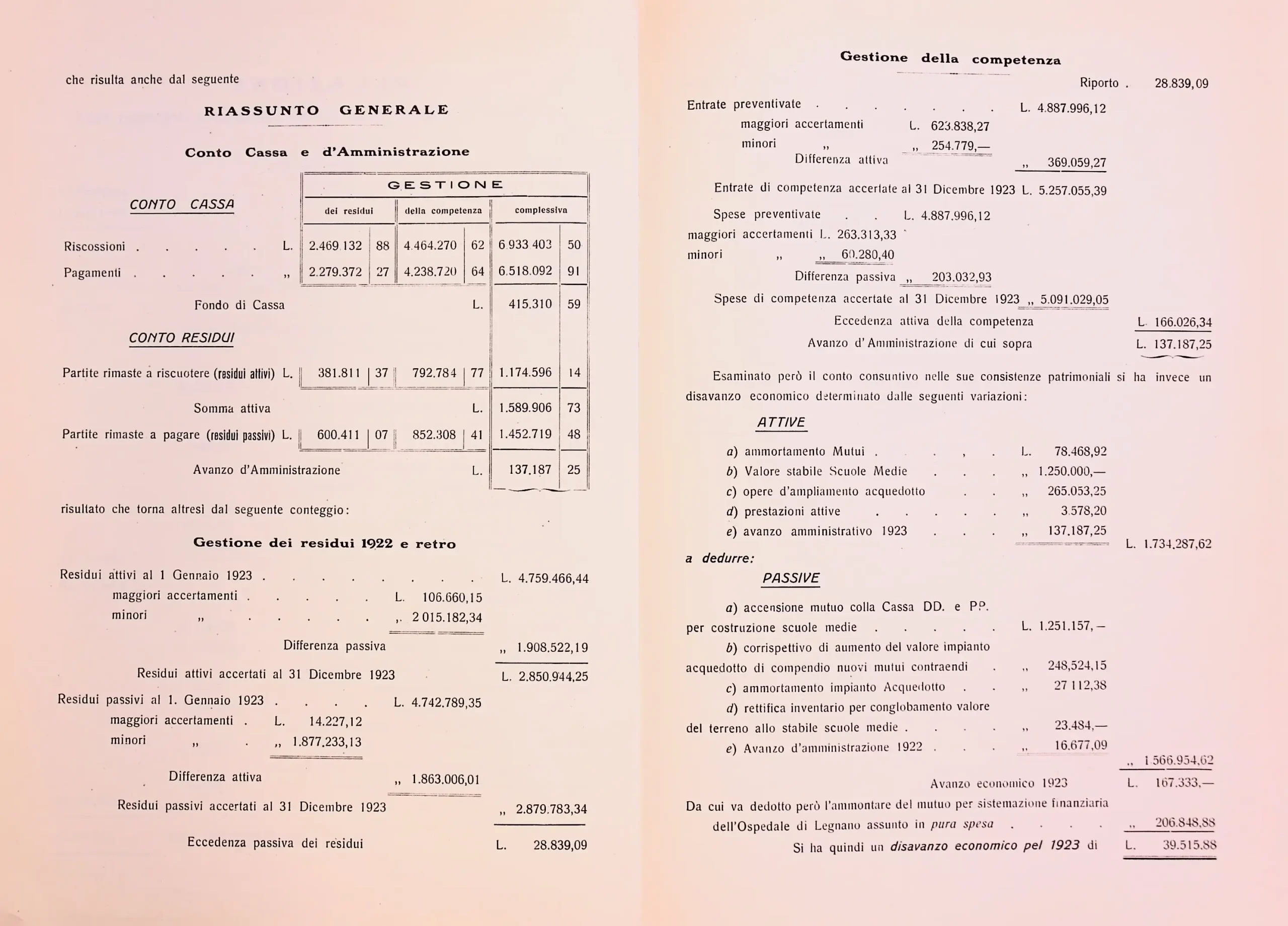 Conto consuntivo esercizio 1923: verbale di chiusura dell’esercizio finanziario
