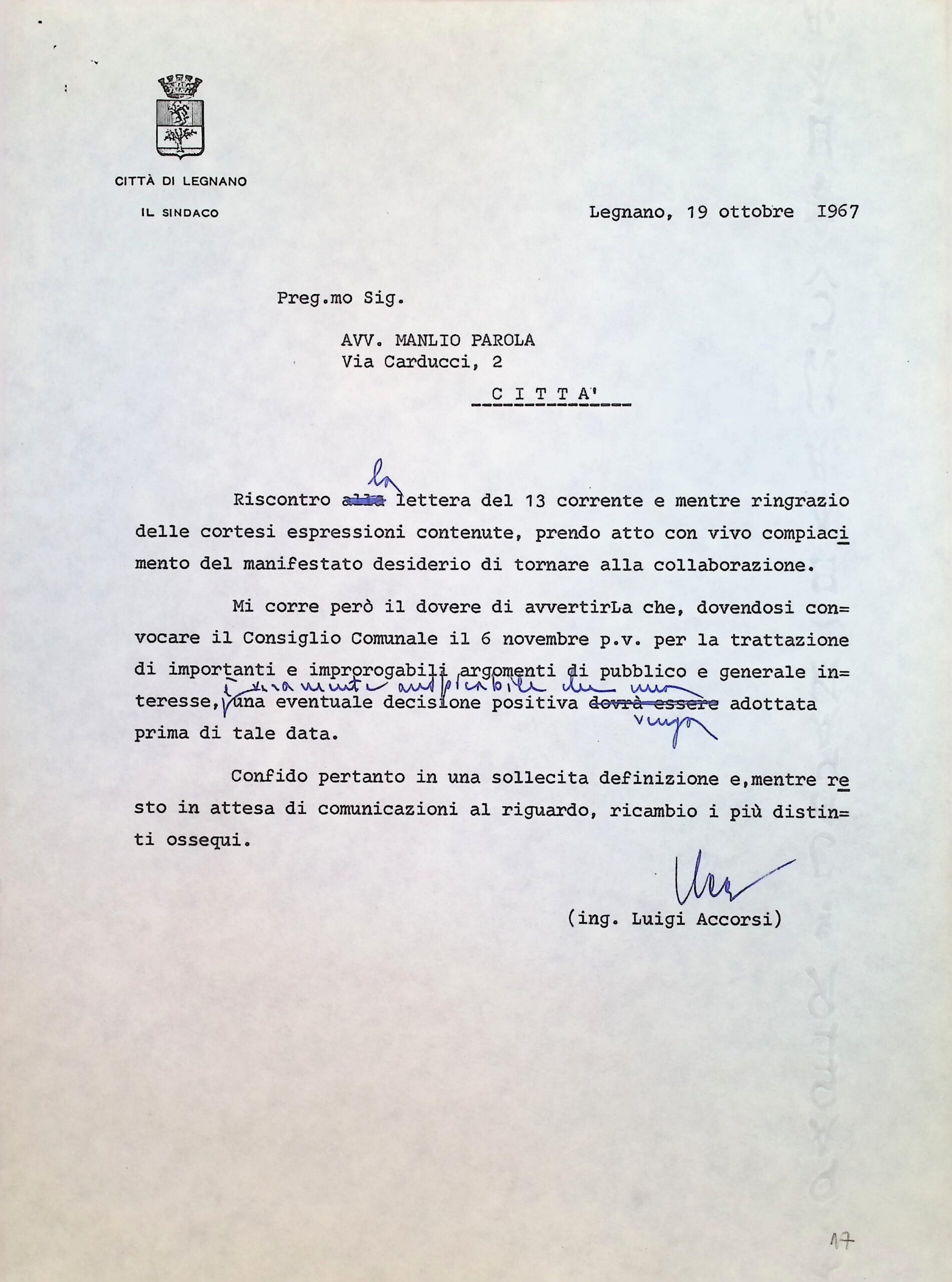 Questa è una sottounità di "Corrispondenza personale del sig. sindaco"