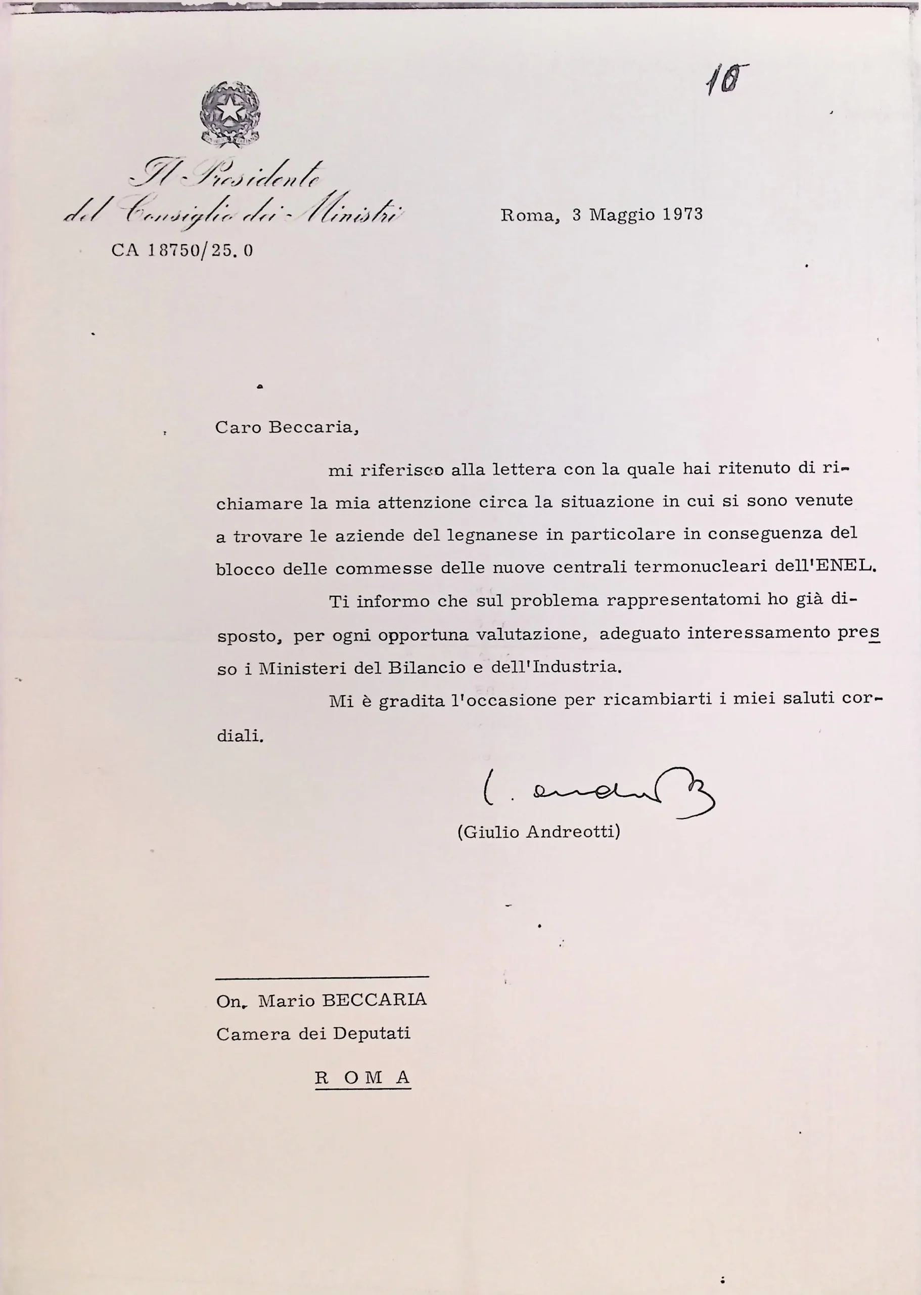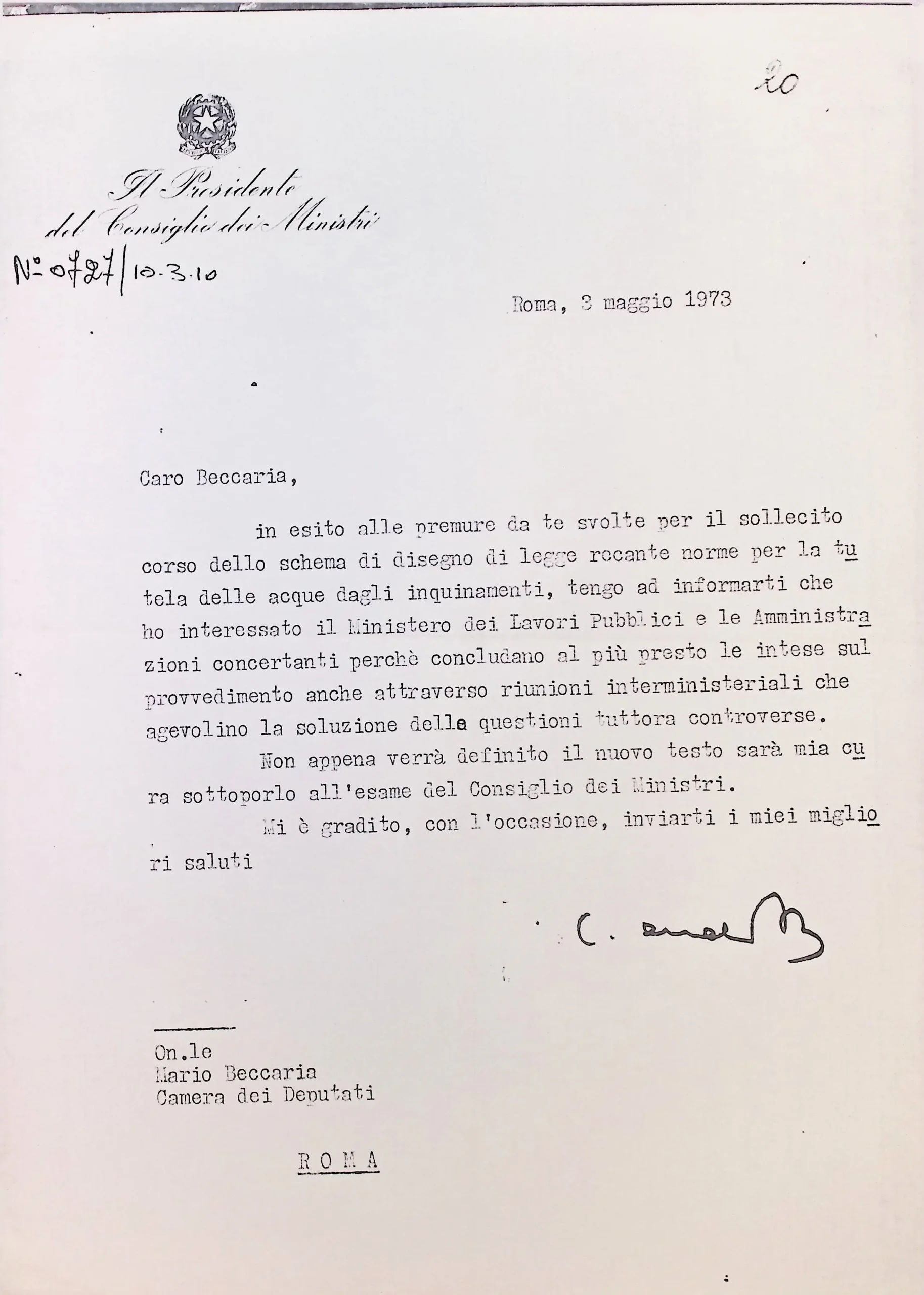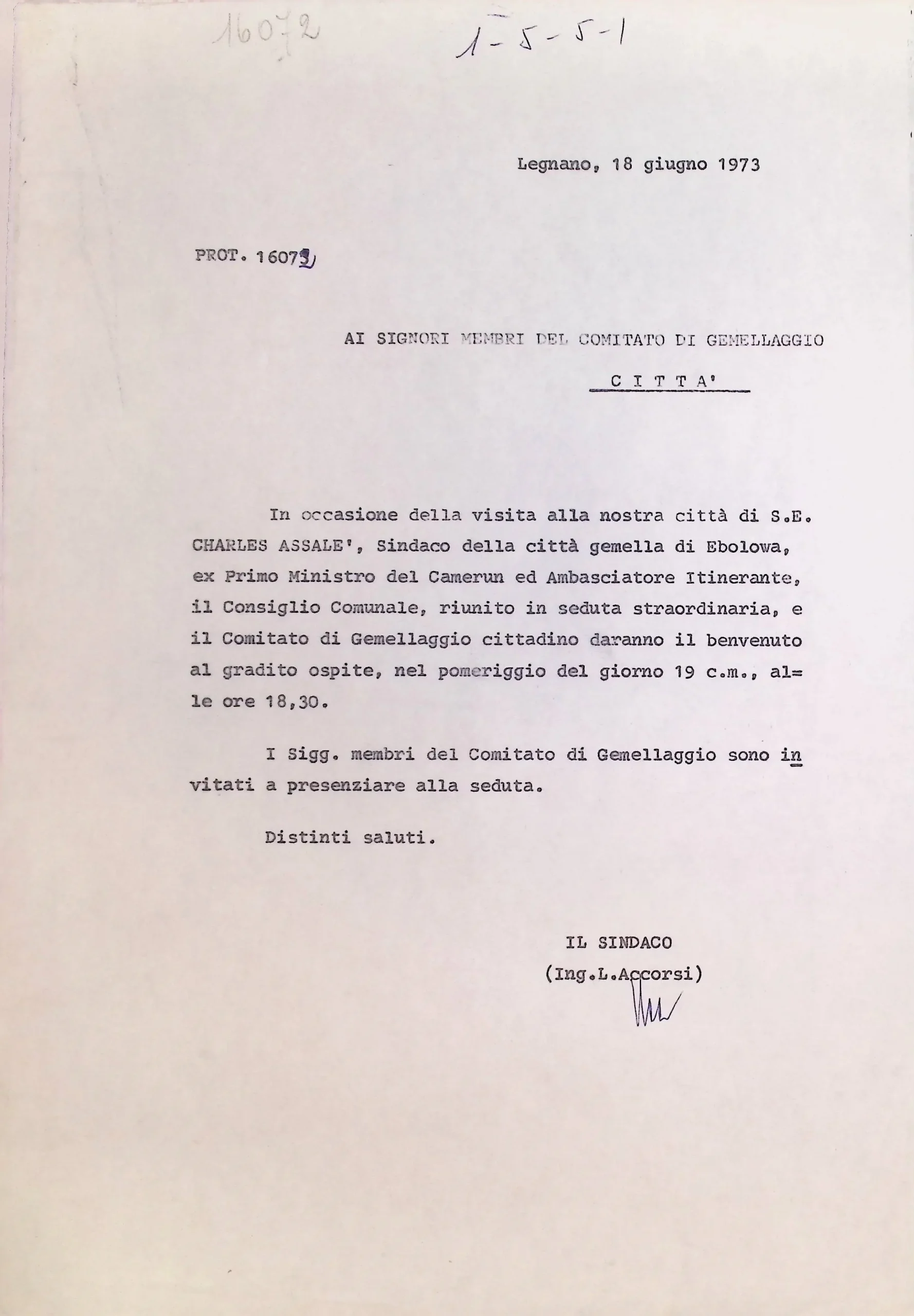 Corrispondenza personale del signor sindaco