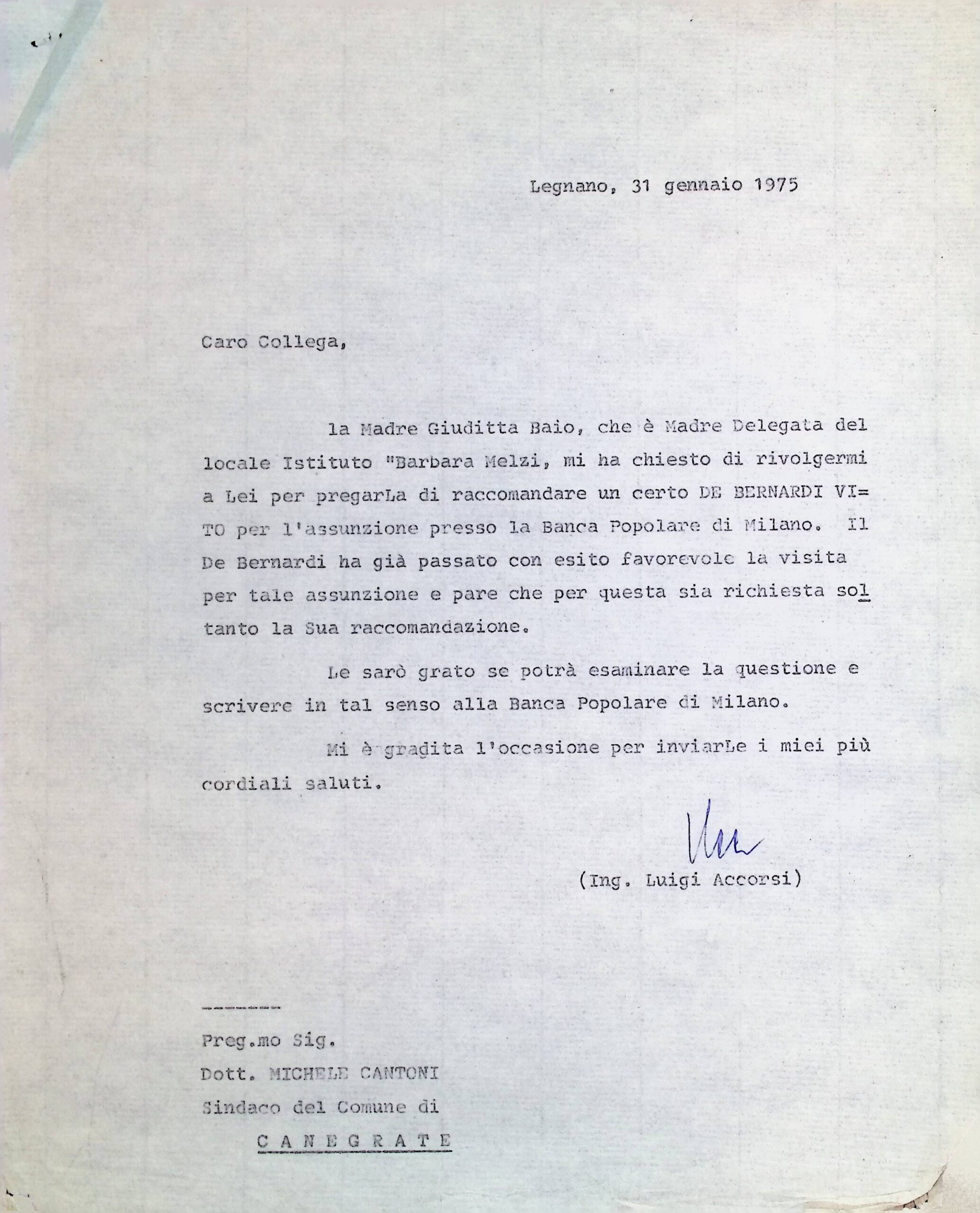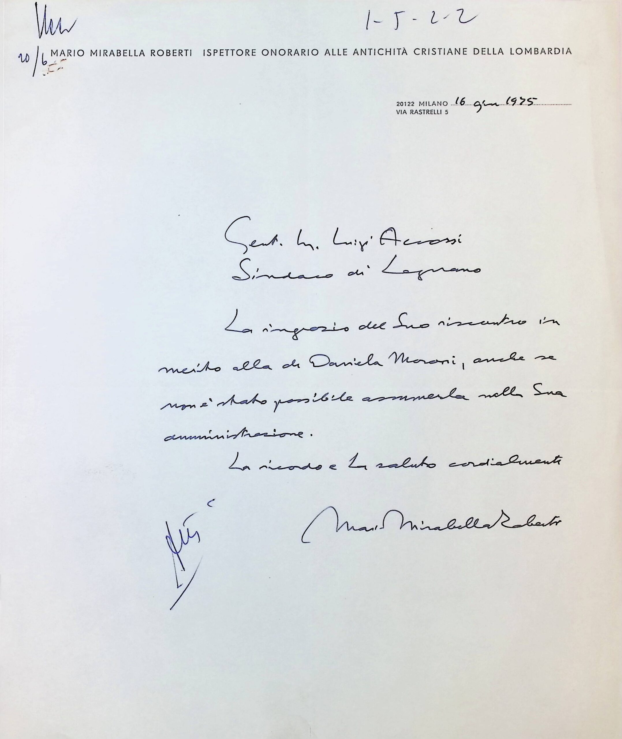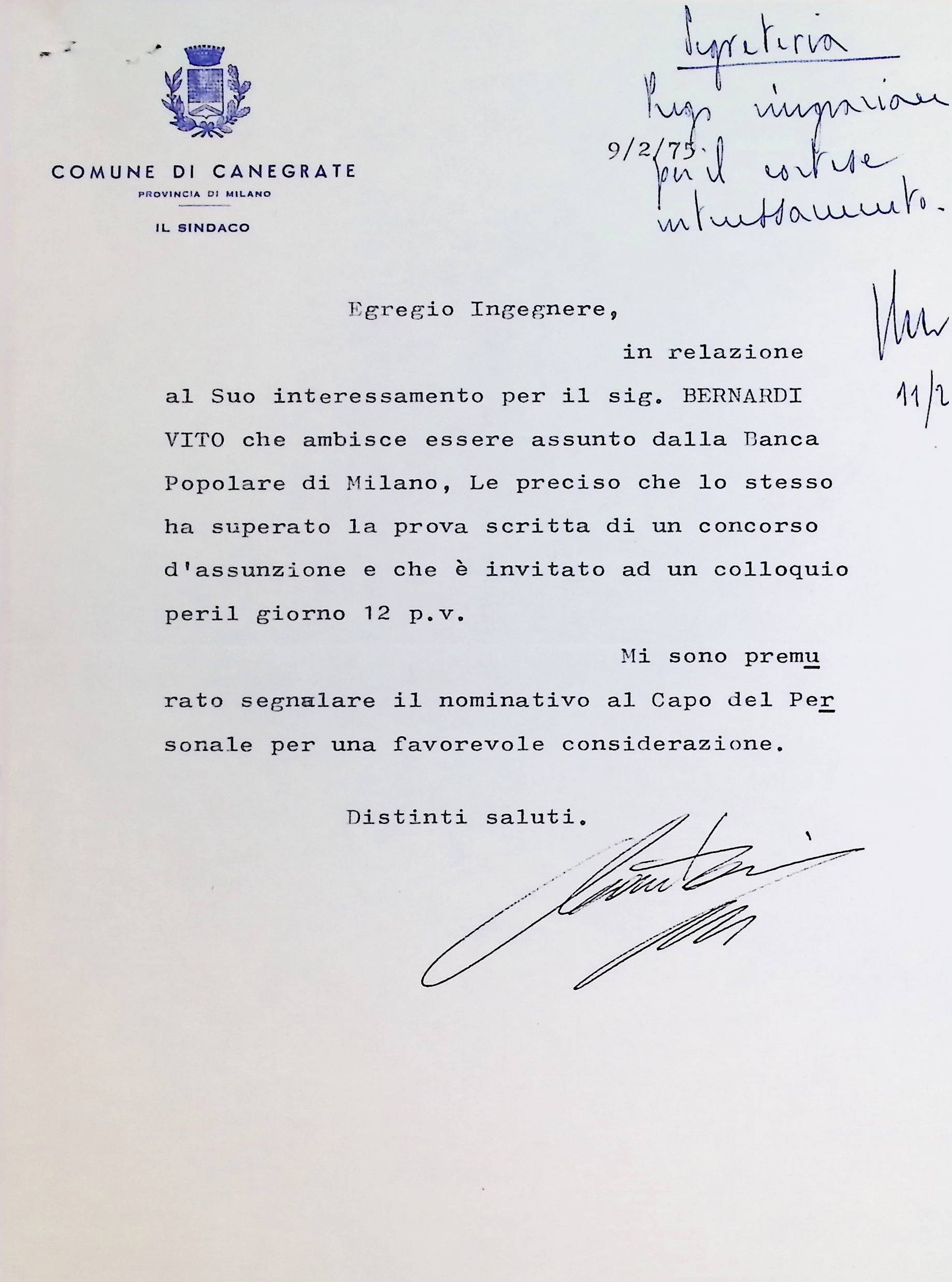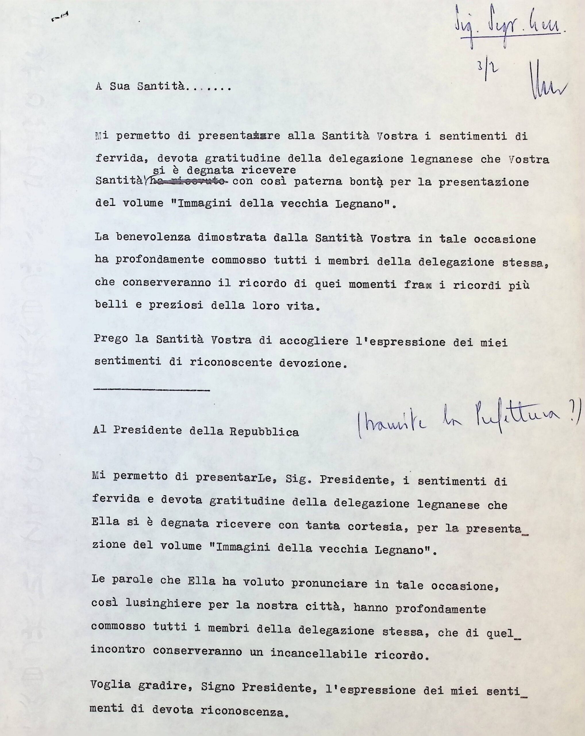 Corrispondenza personale del signor sindaco
