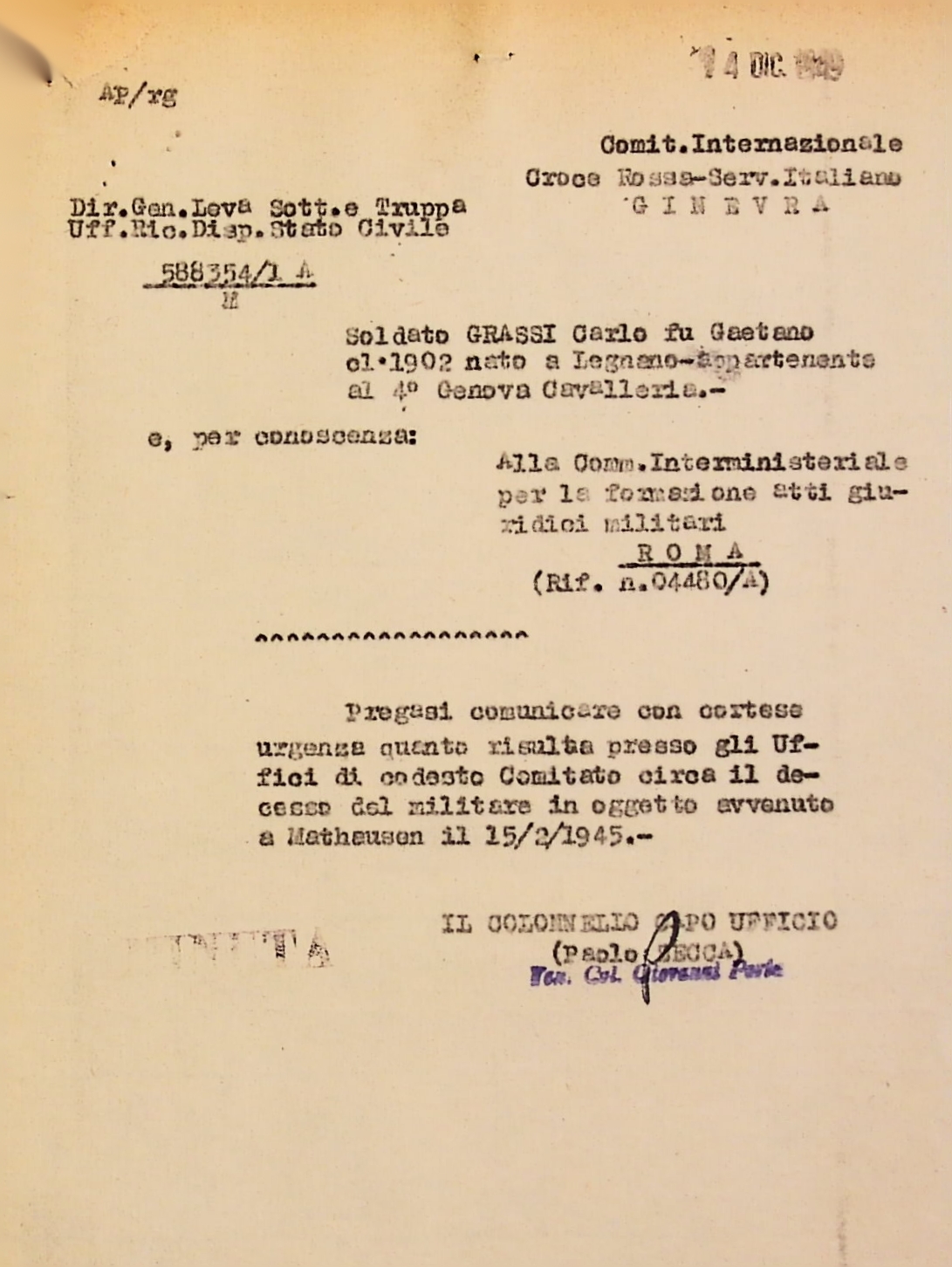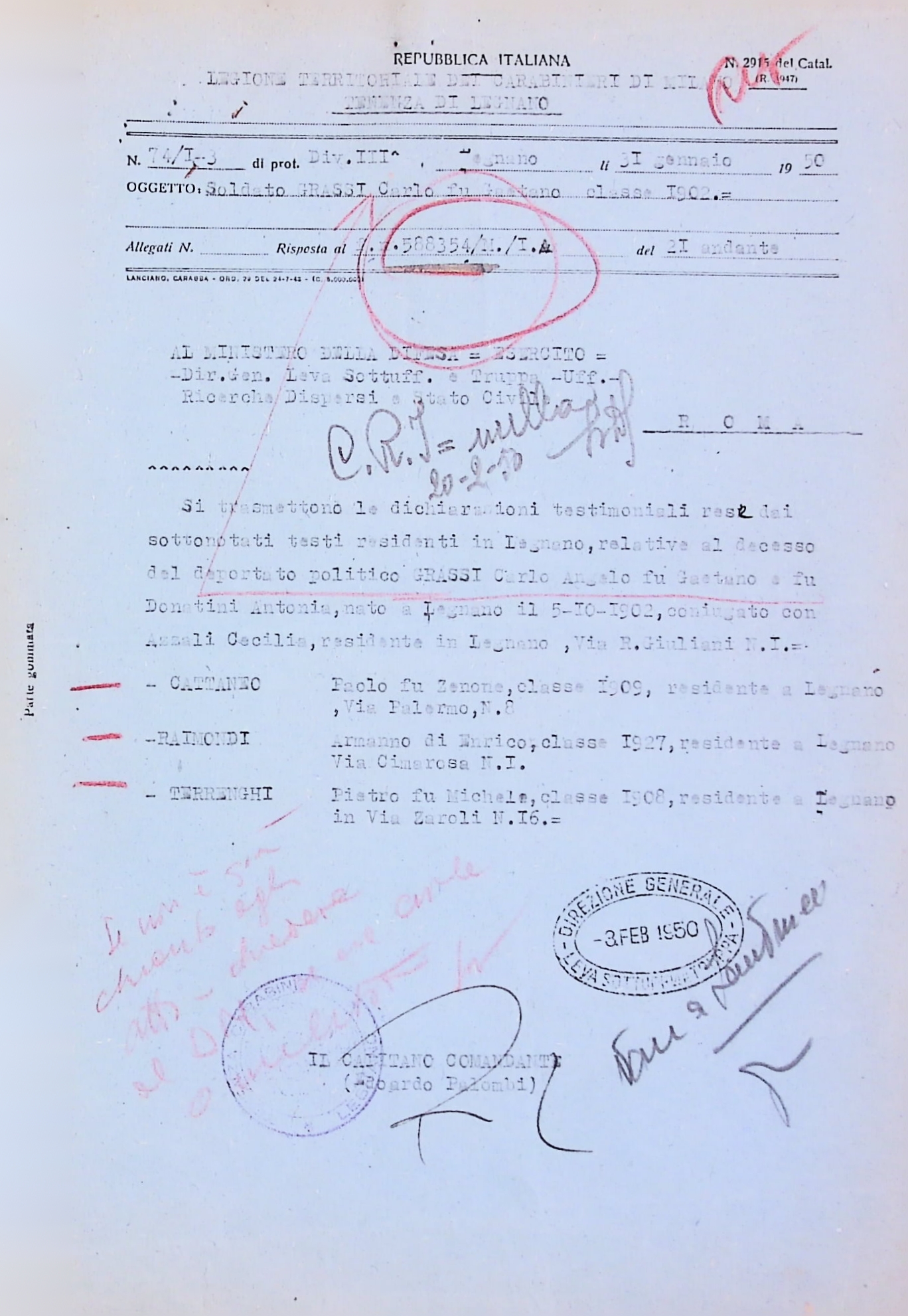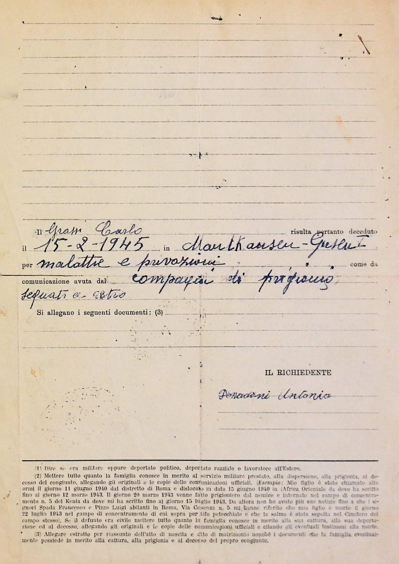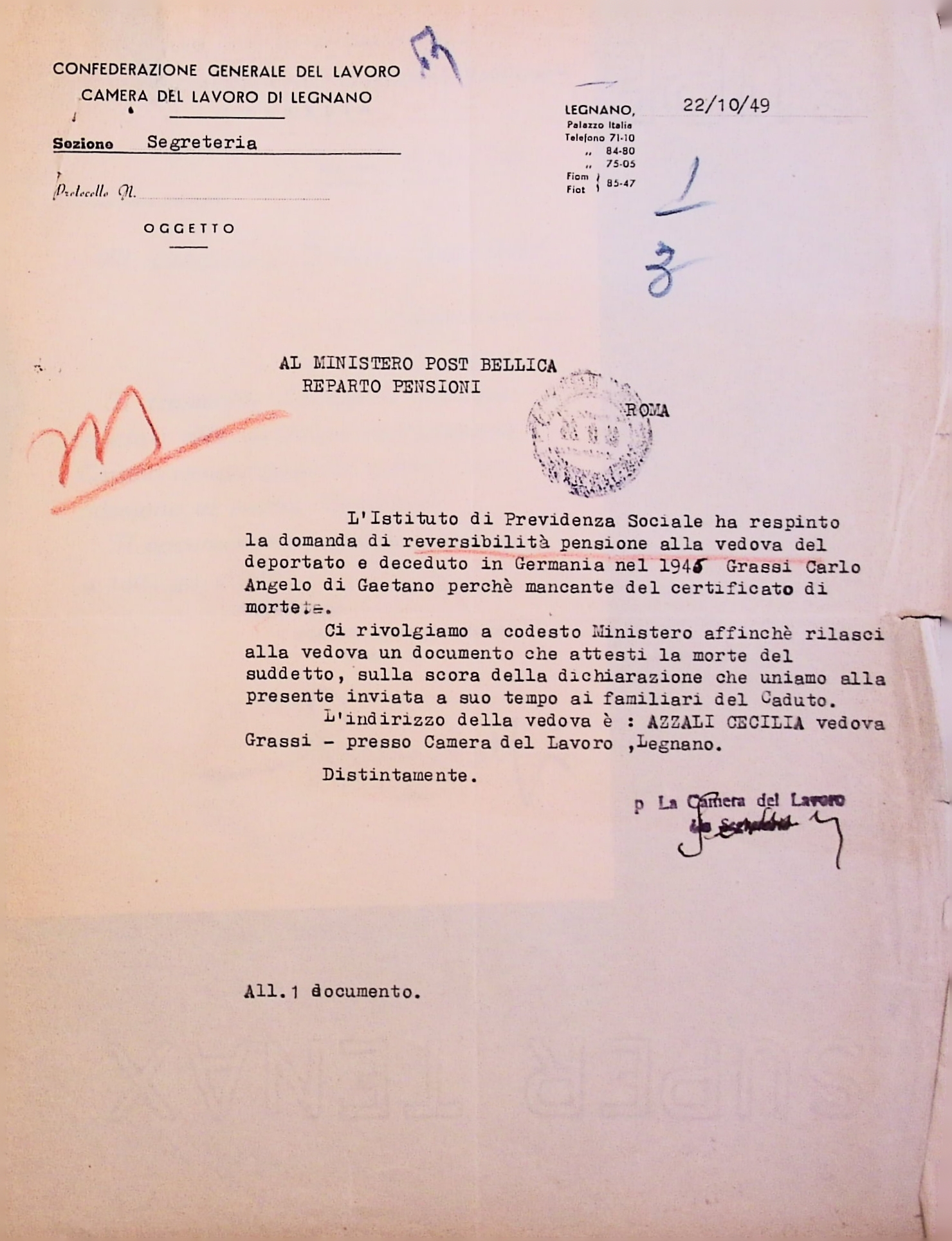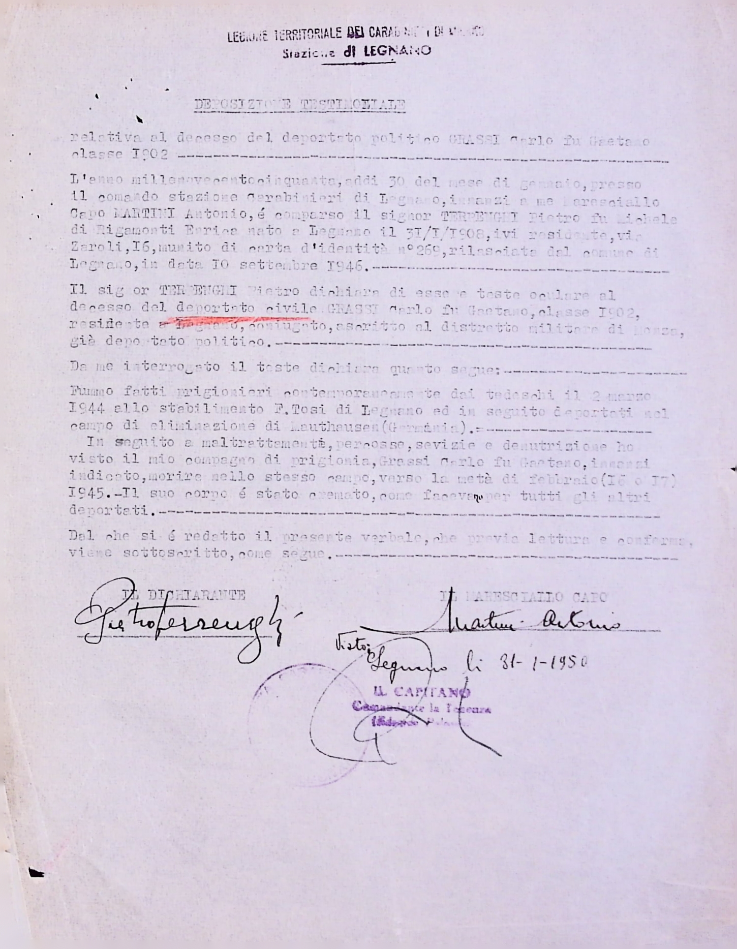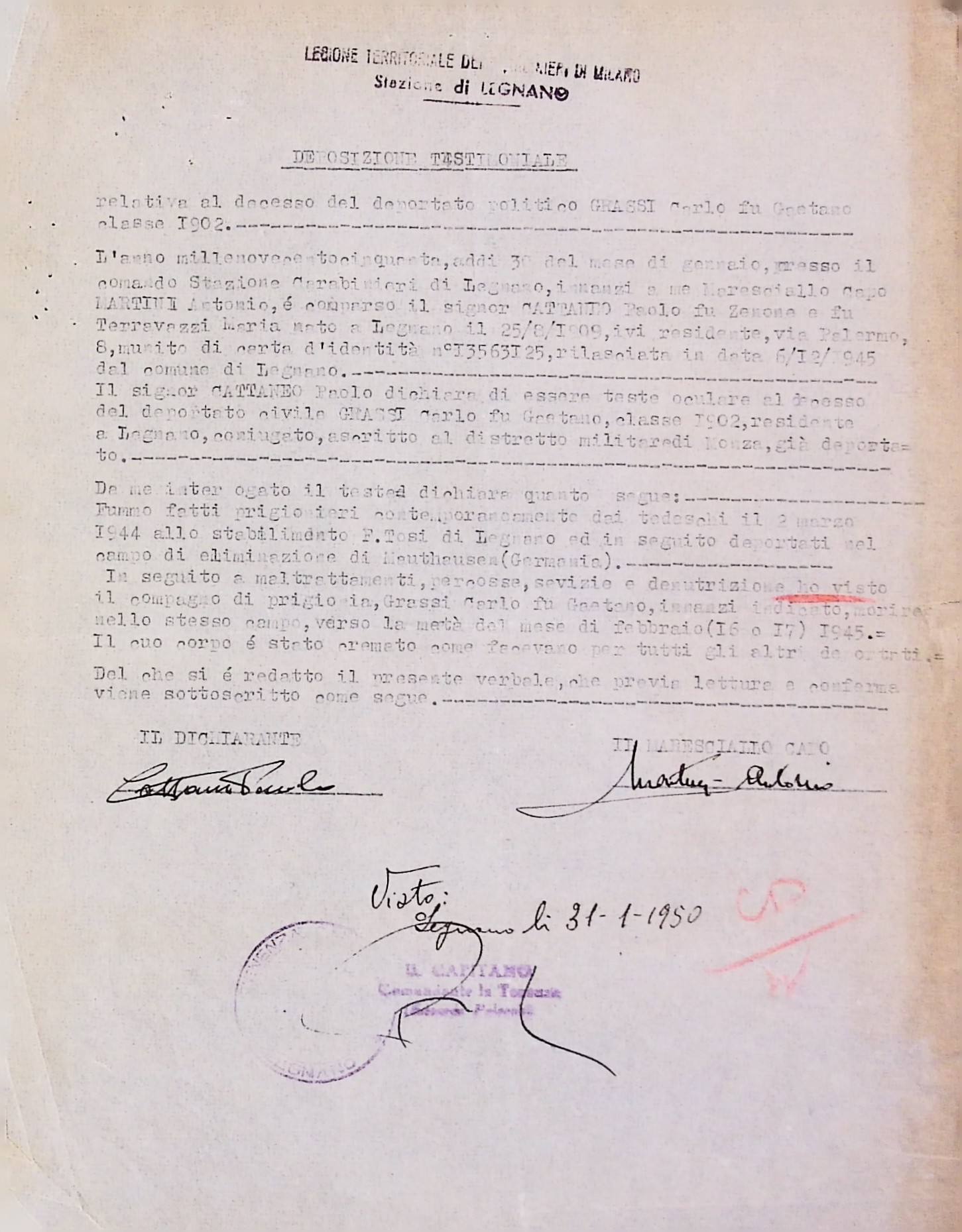 Deportato Carlo Grassi: fascicolo personale
