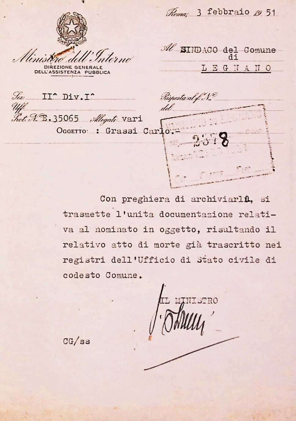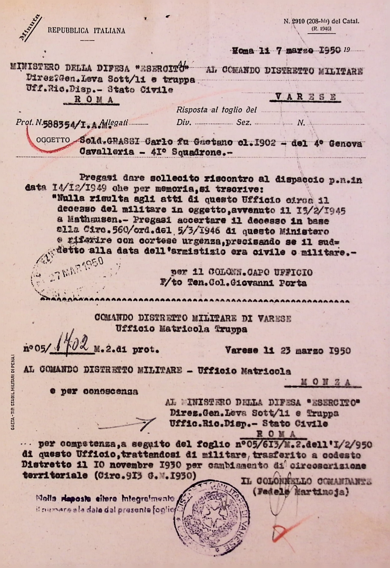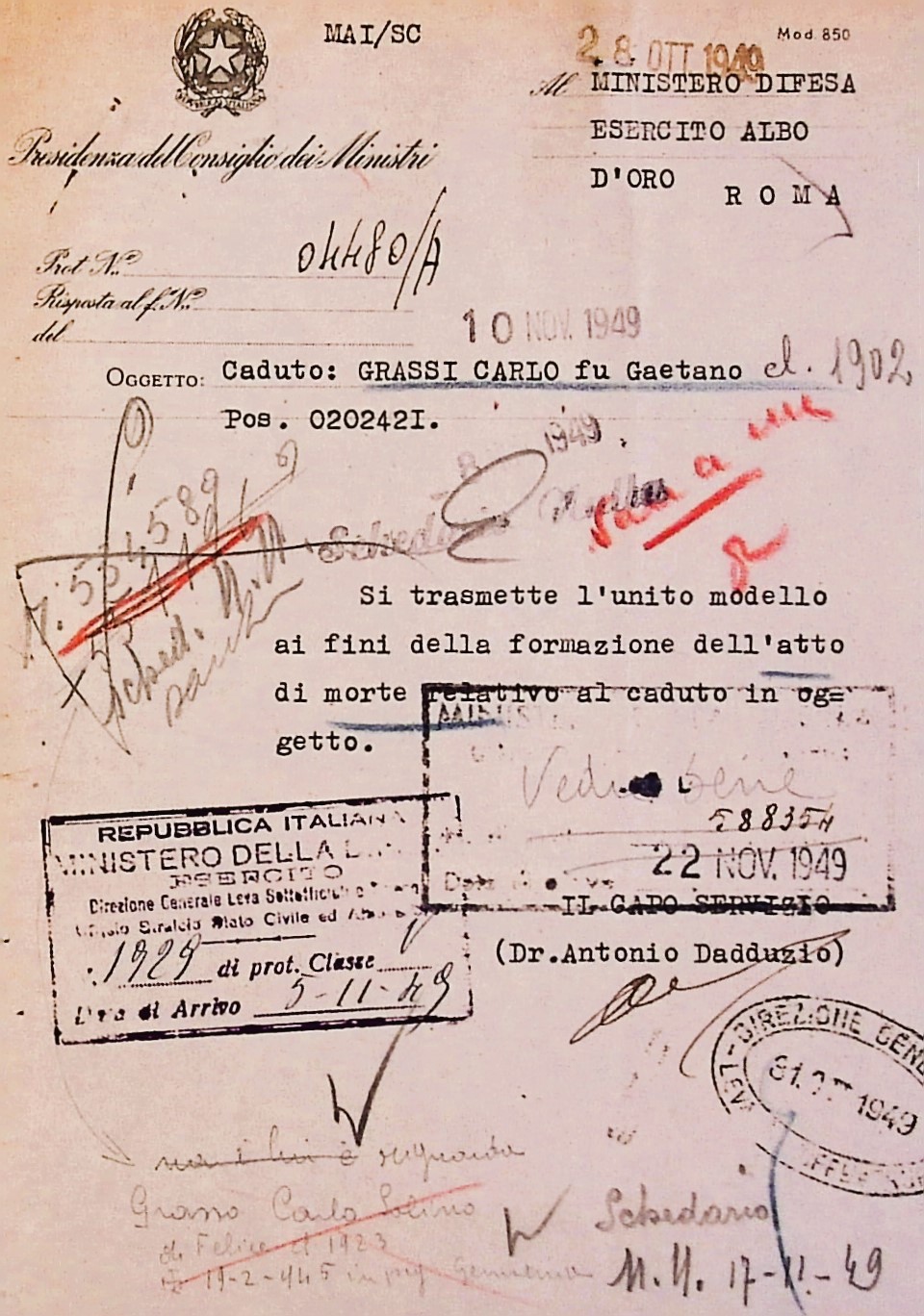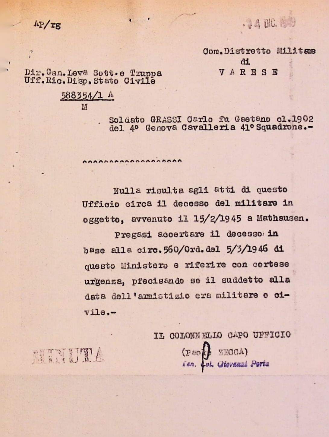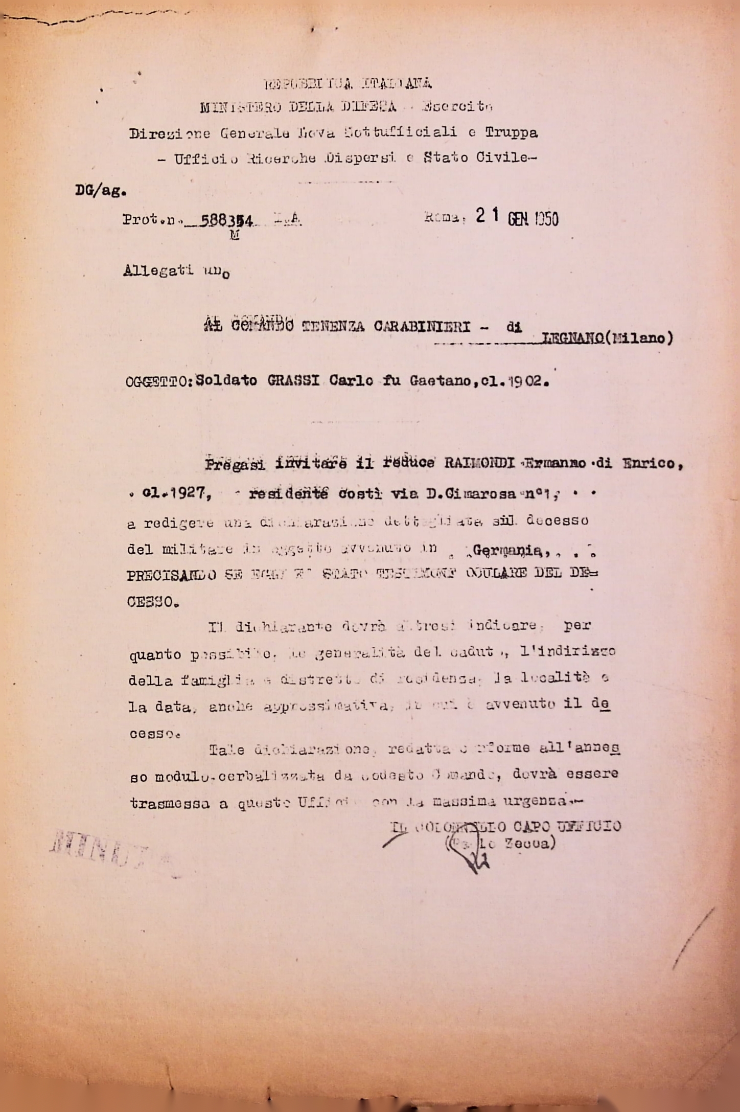 Deportato Carlo Grassi: fascicolo personale