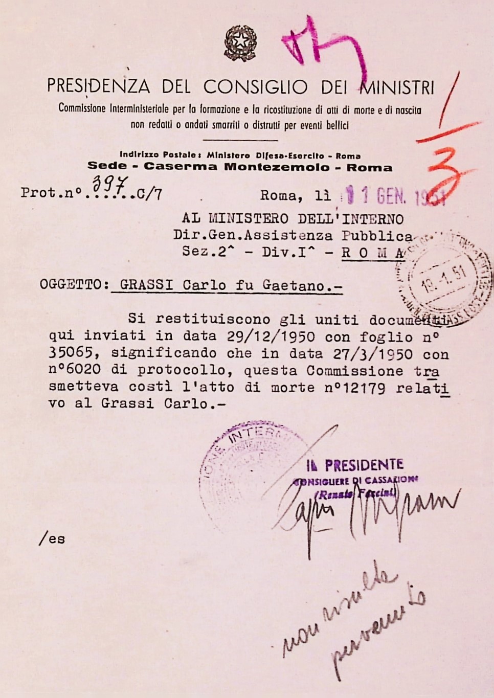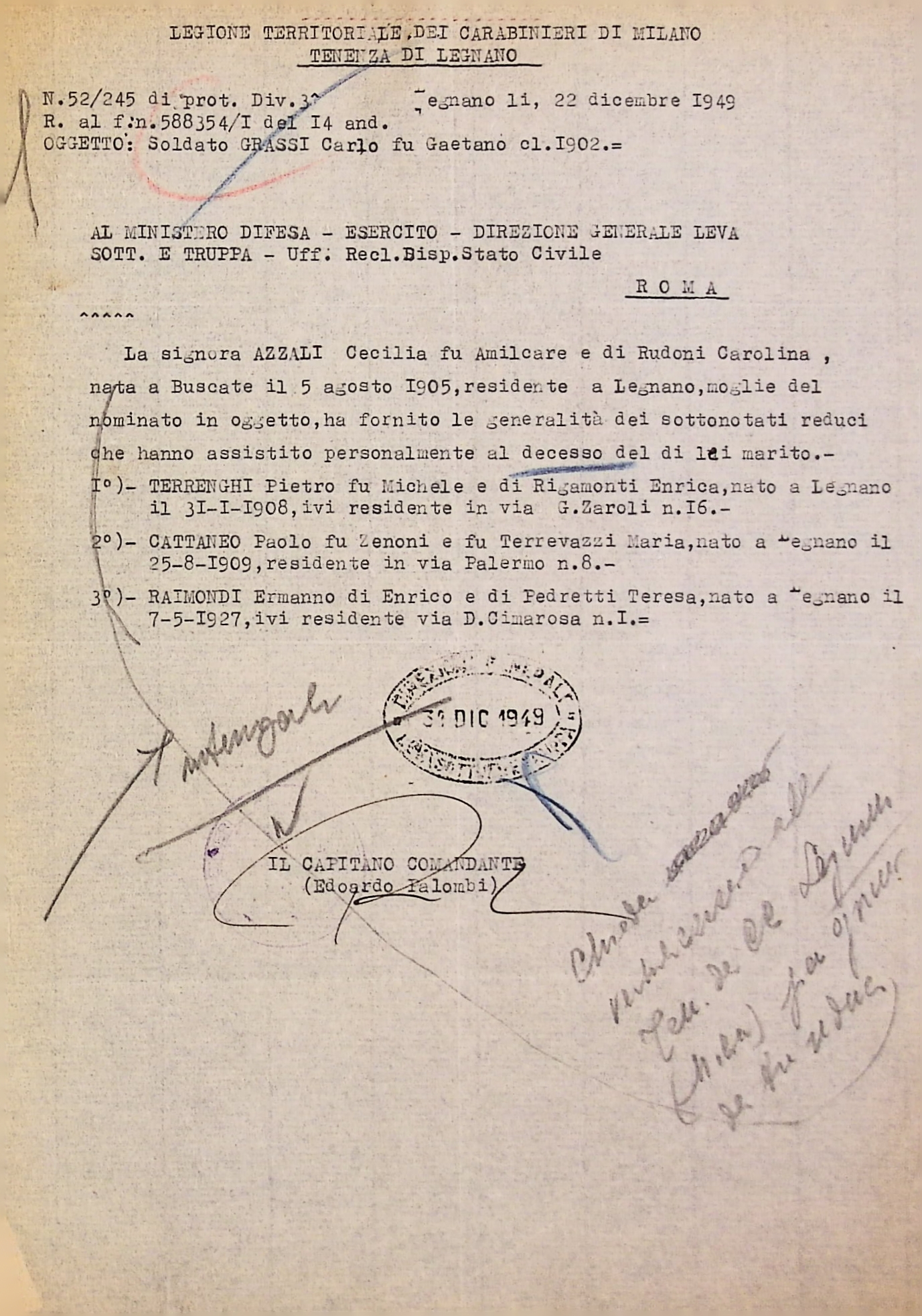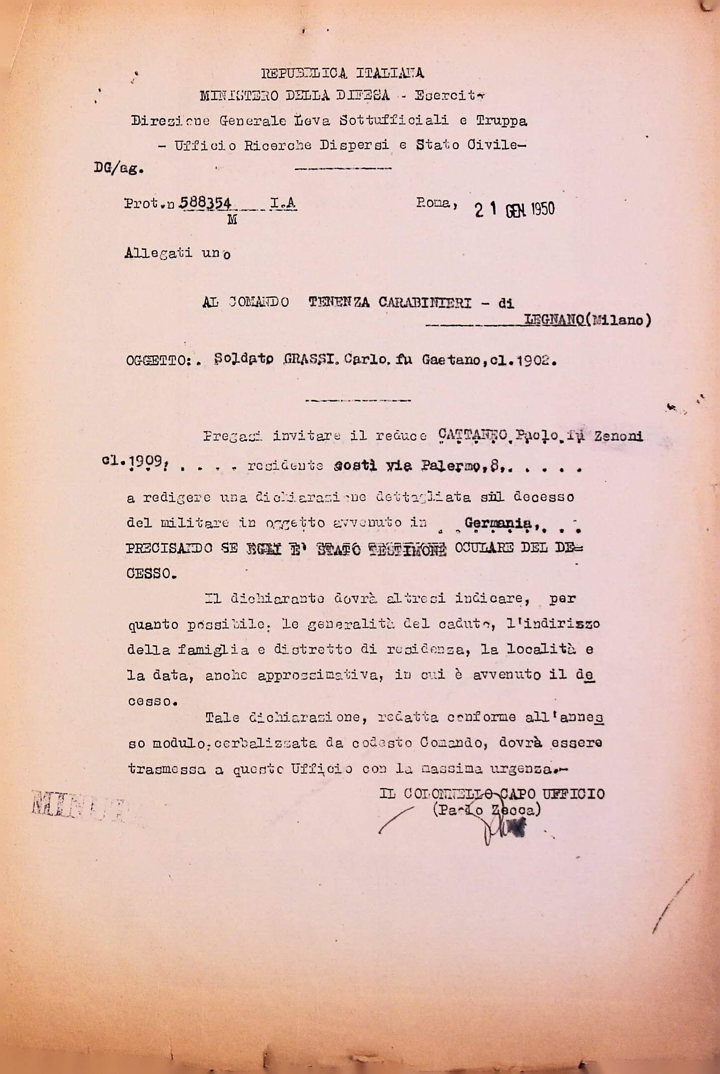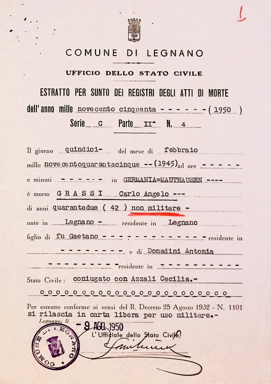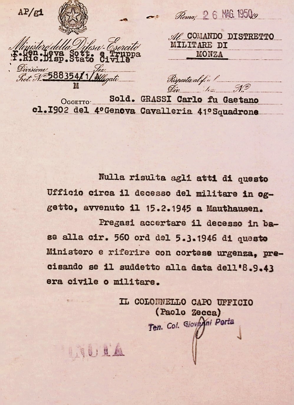 Deportato Carlo Grassi: fascicolo personale