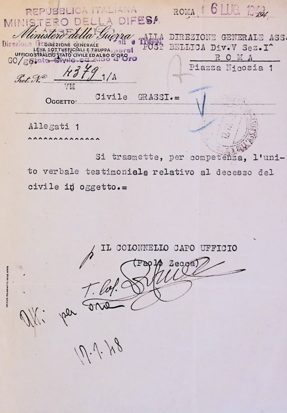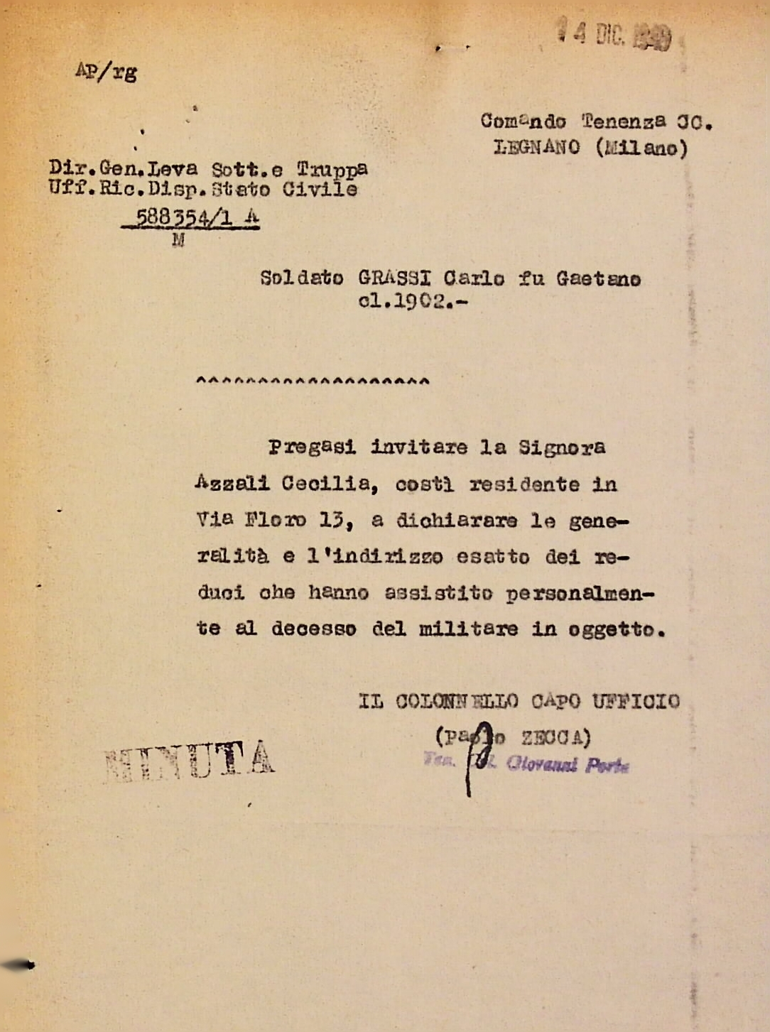 | Classificazione | VIII.2 - Servizi militari e assistenza, associazioni, Senza categoria |