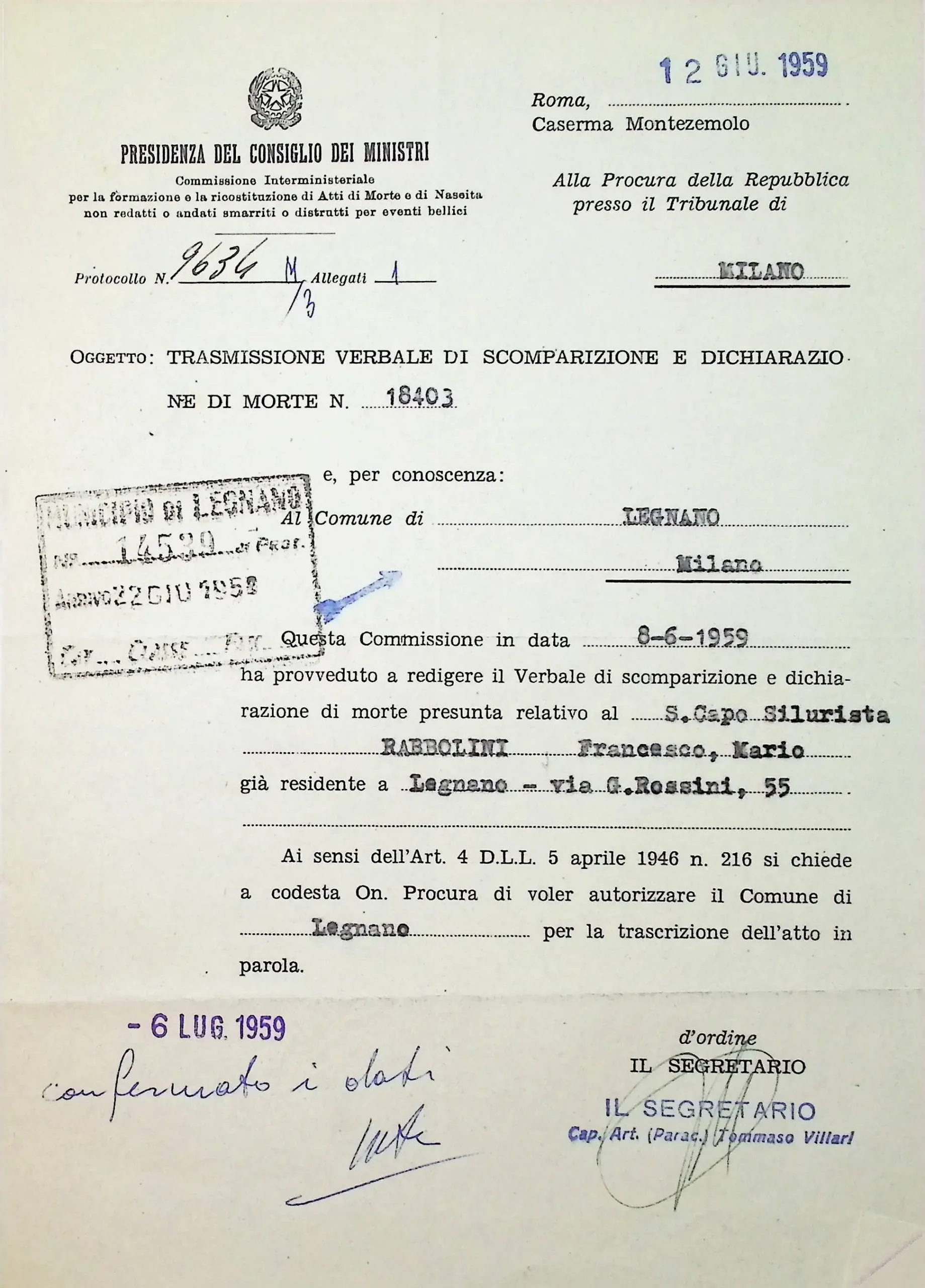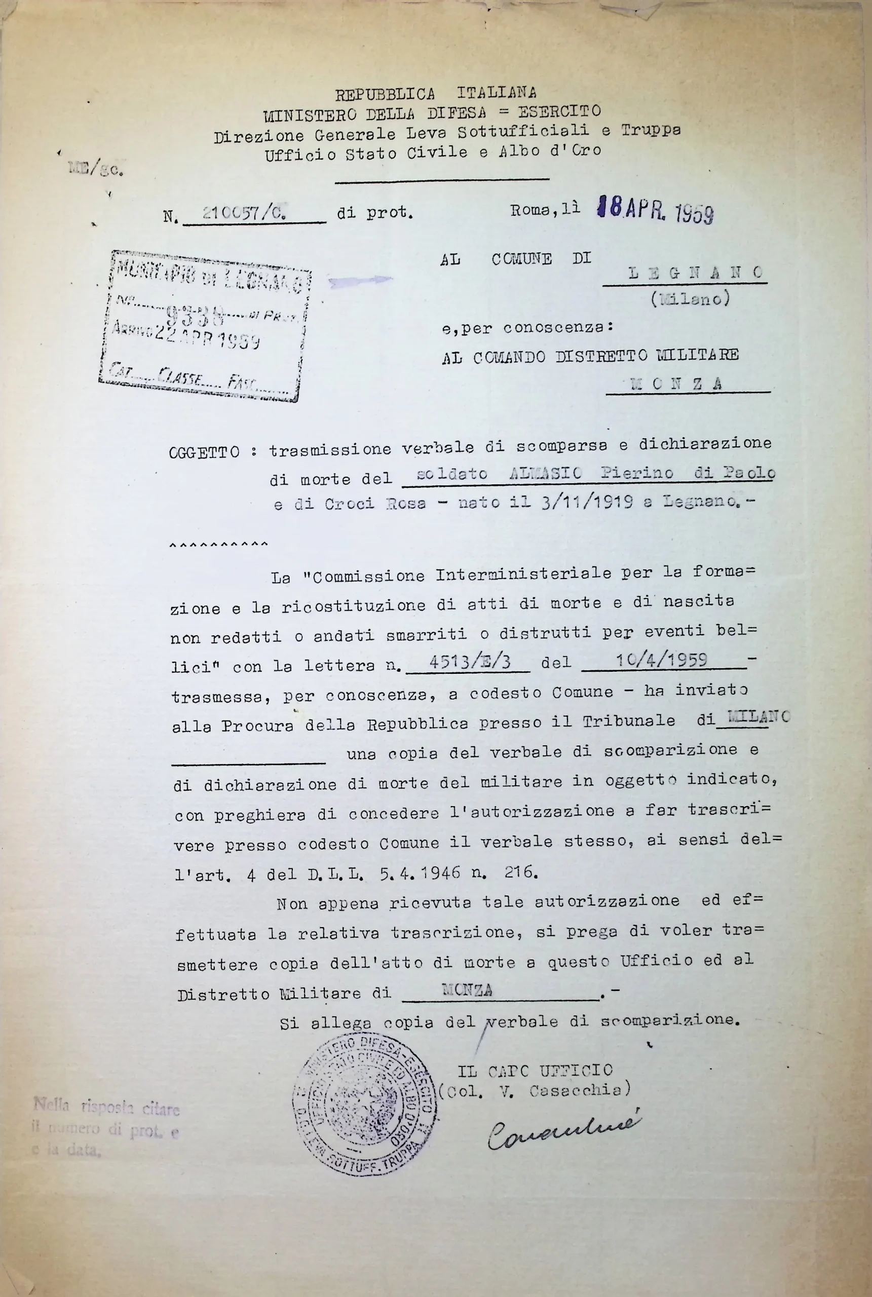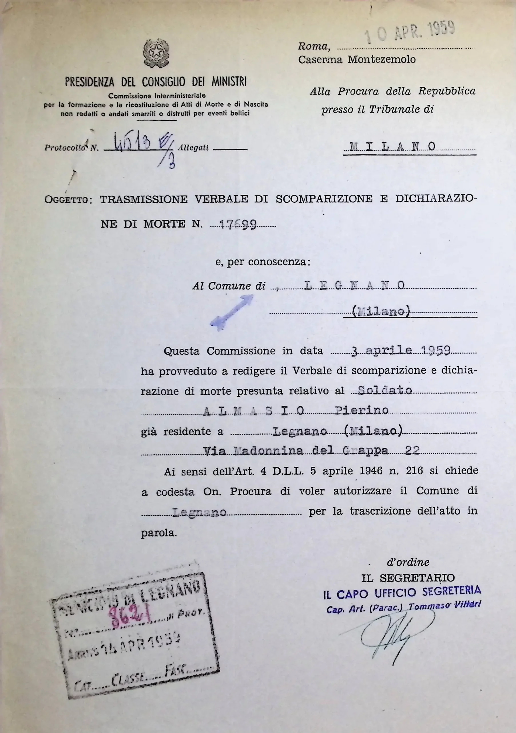 | Classificazione | VIII.2 - Servizi militari e assistenza, associazioni |