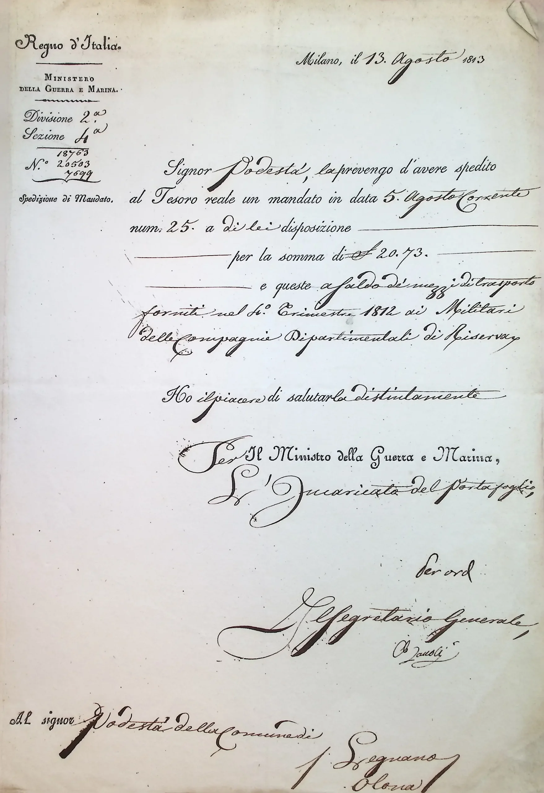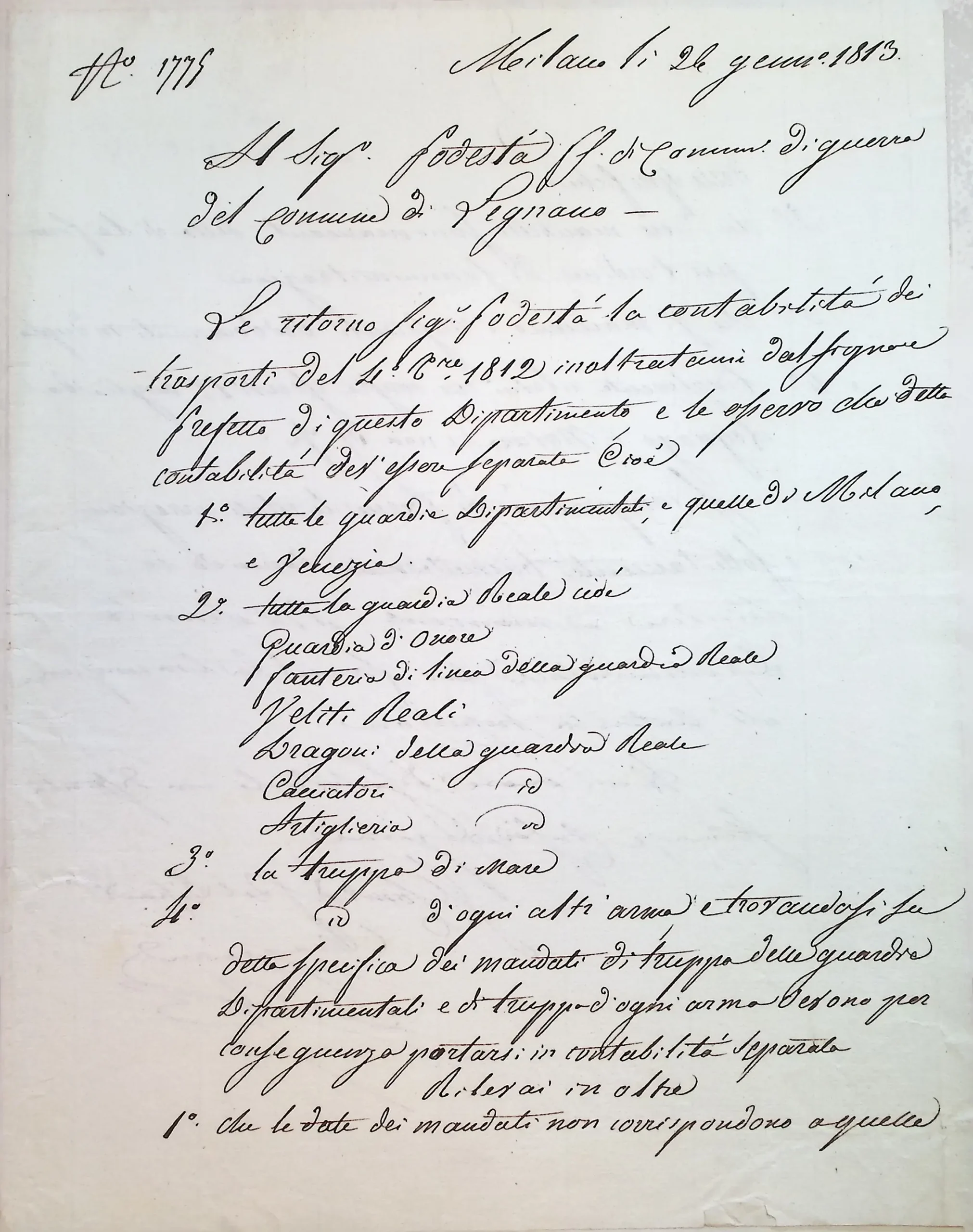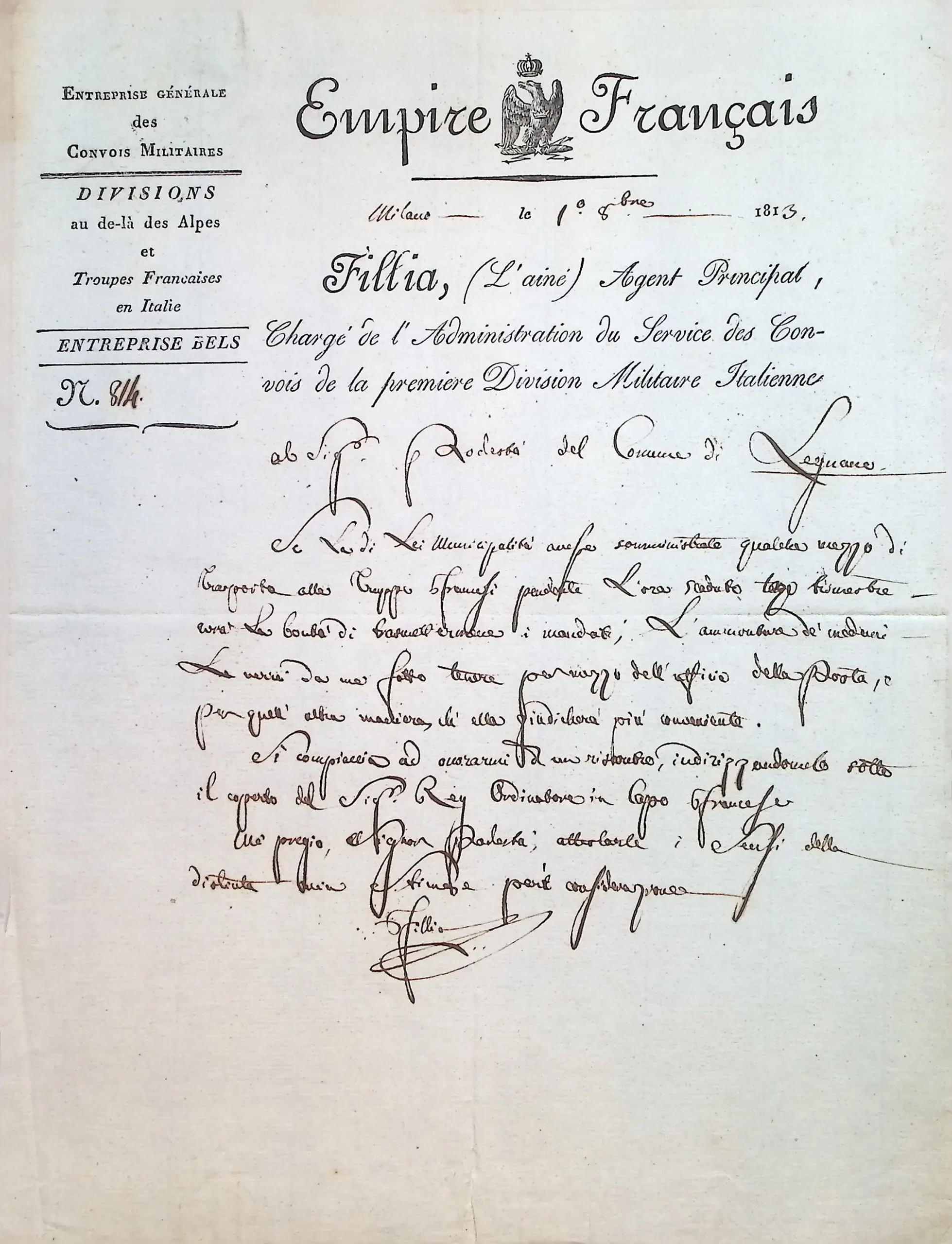 | Note dell'archivista | Esclusi dalla riproduzione il prospetto contenente l'elenco dei militari in marcia nel quarto trimestre del 1813. |