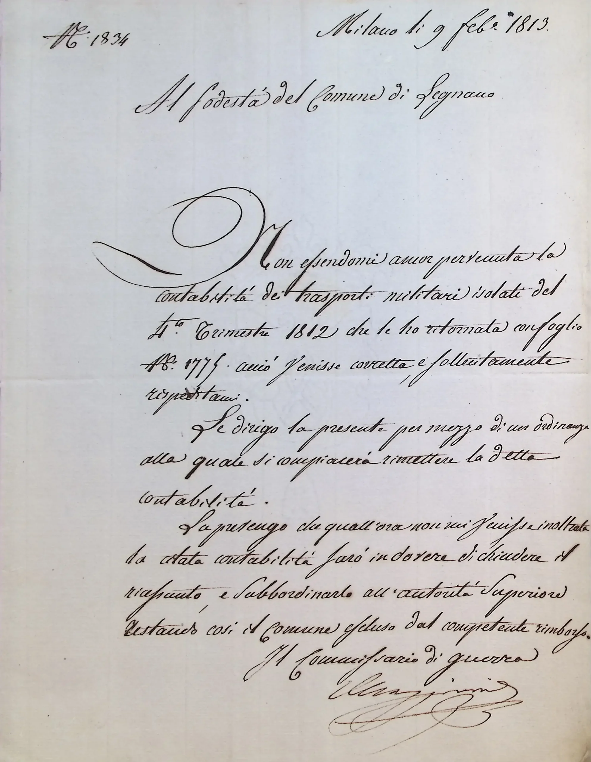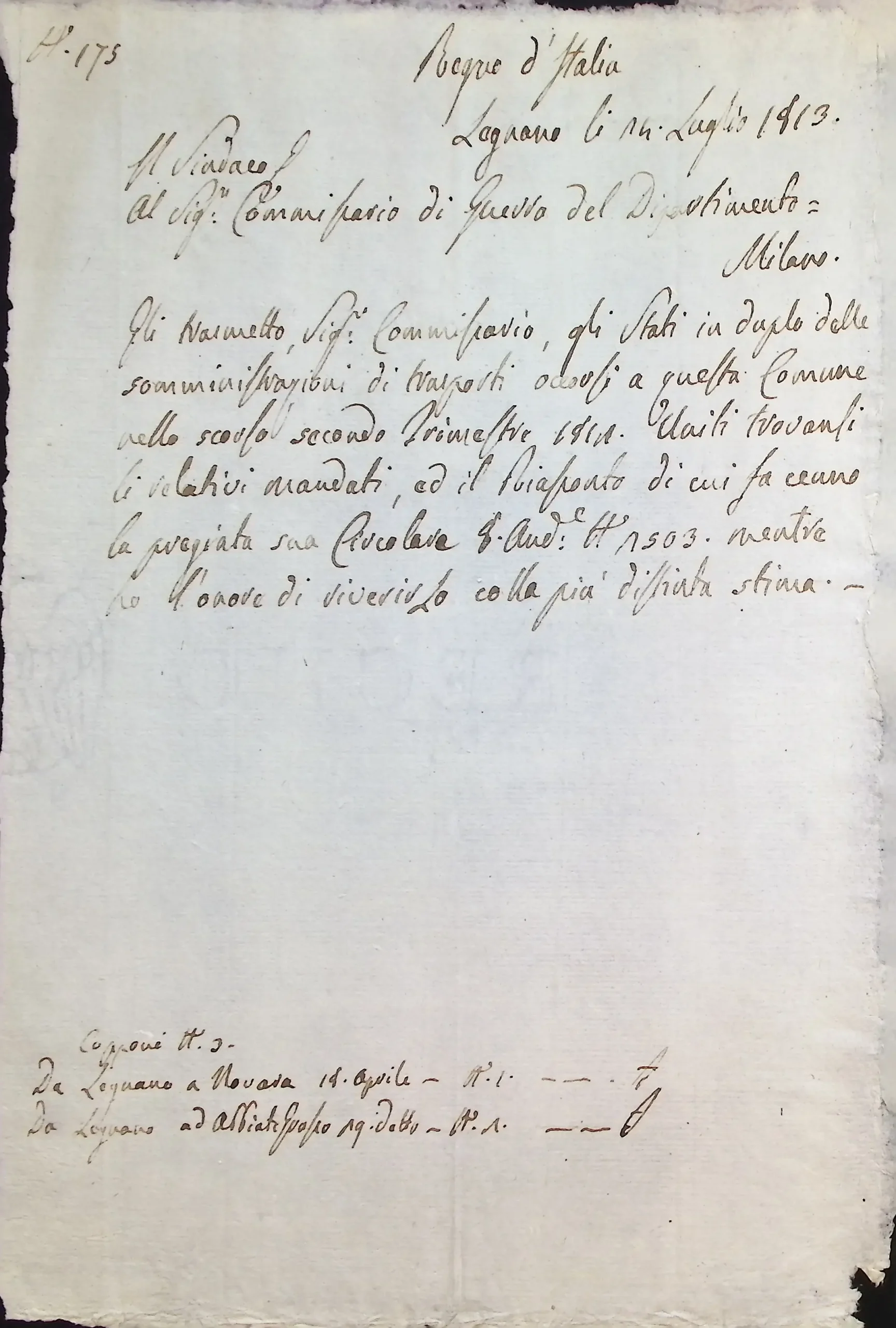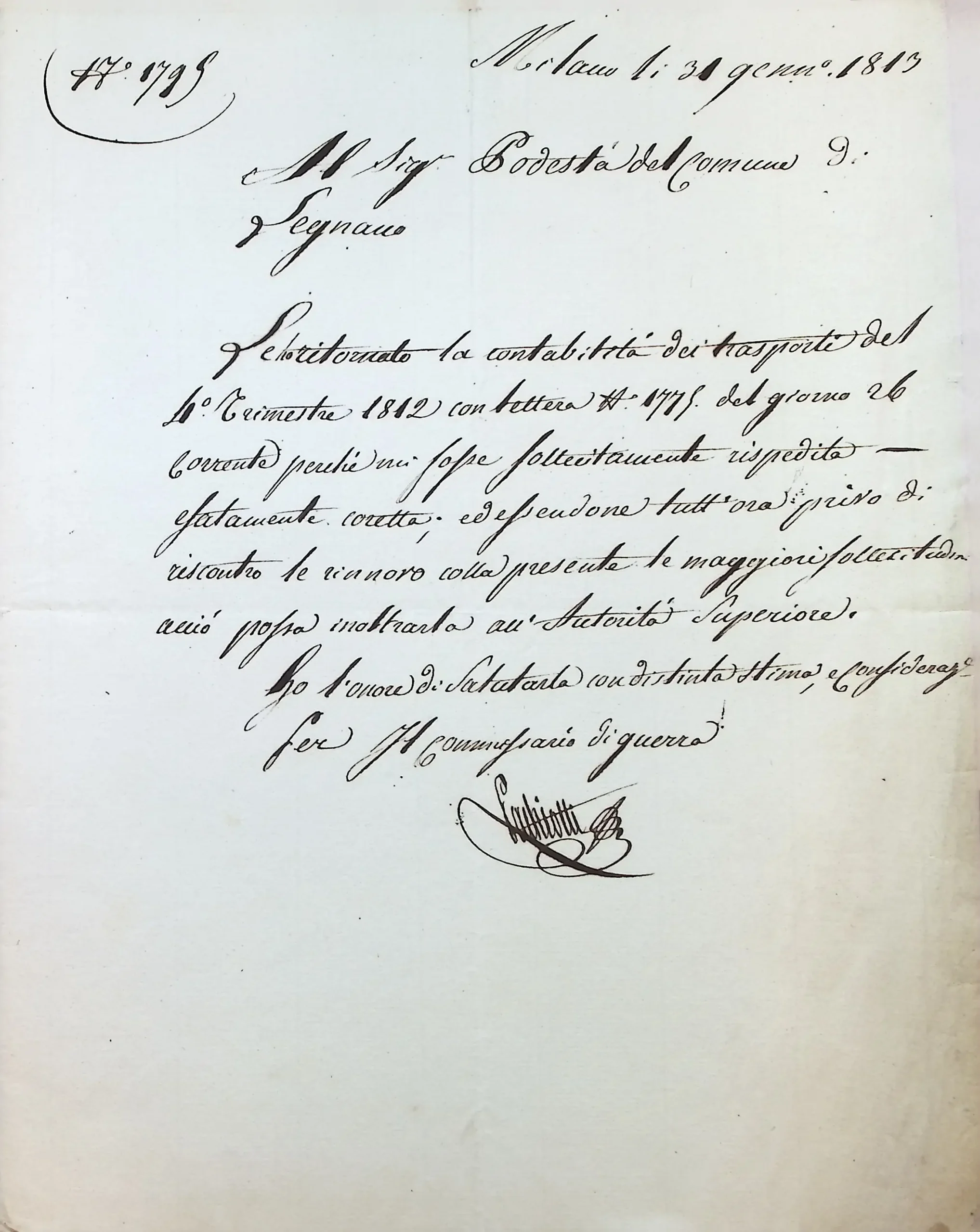 | Note dell'archivista | Esclusi dalla riproduzione il prospetto contenente l'elenco dei militari in marcia nel quarto trimestre del 1813. |