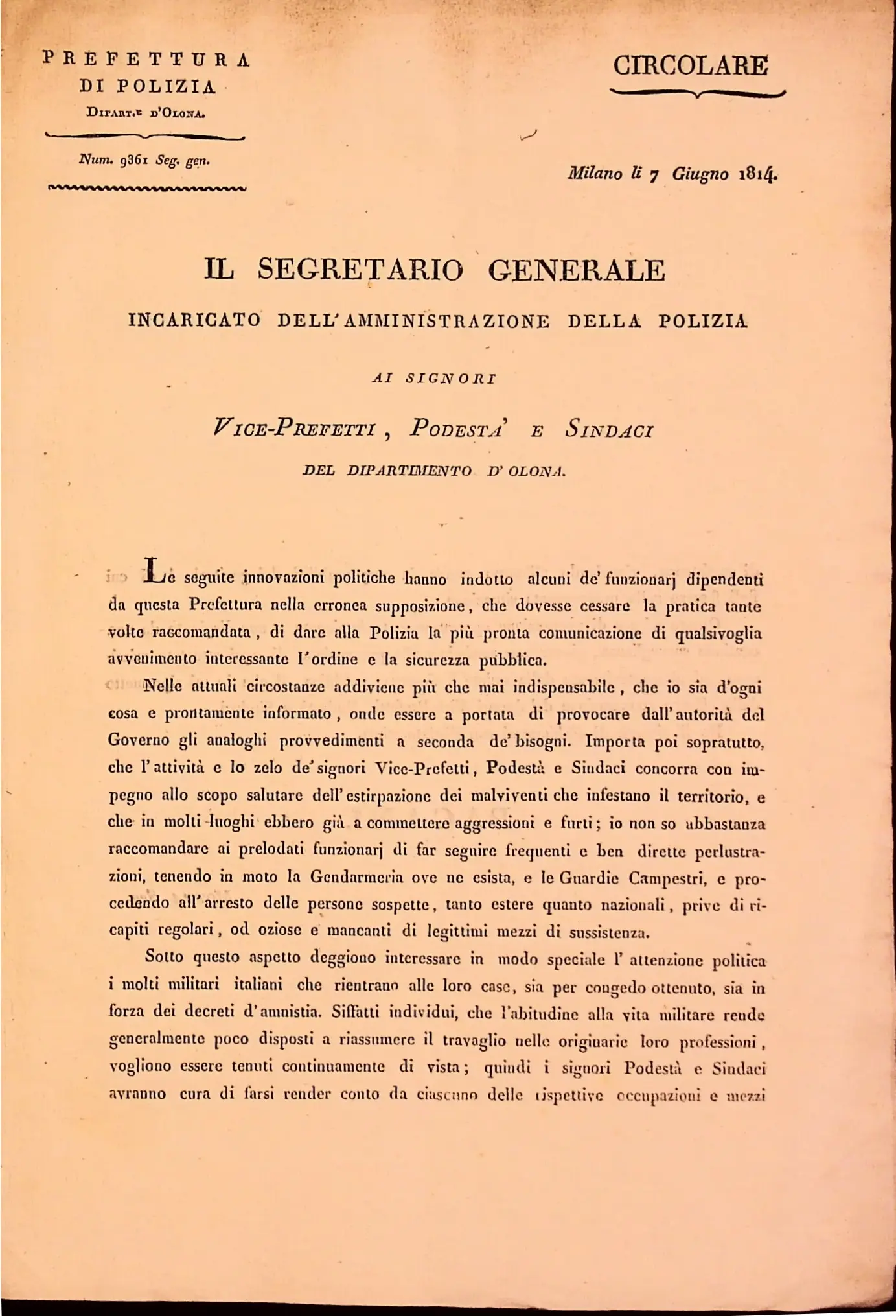 Disposizioni e pratiche varie riguardanti pregiudicati, mendicanti ed altri soggetti di pubblica sicurezza