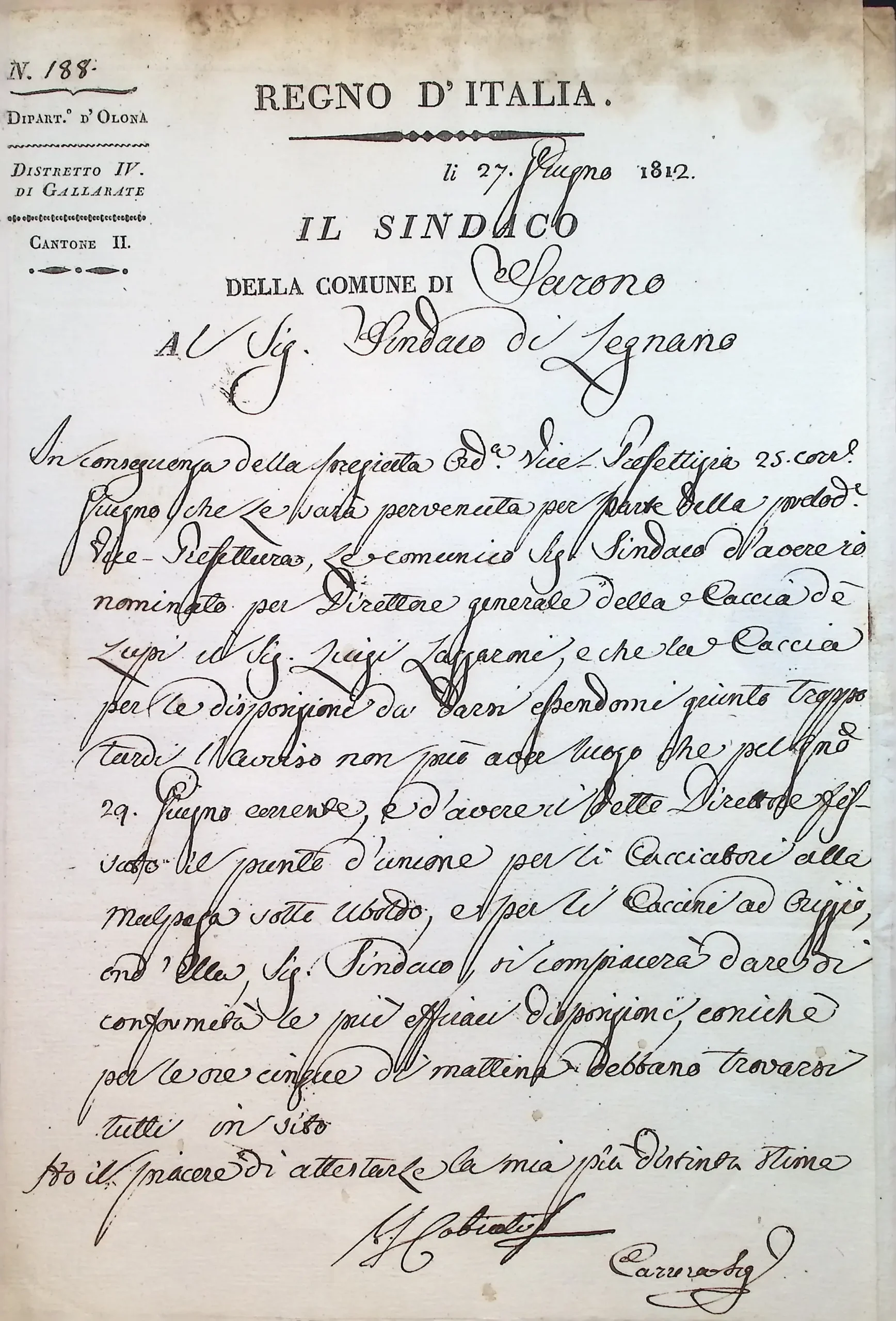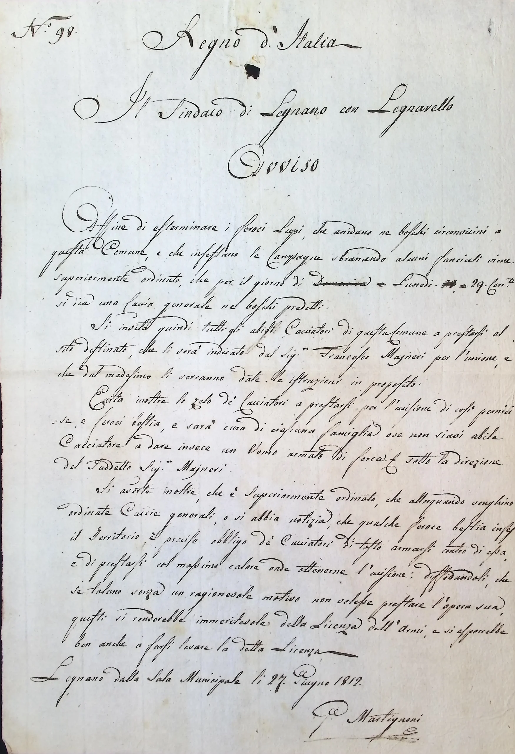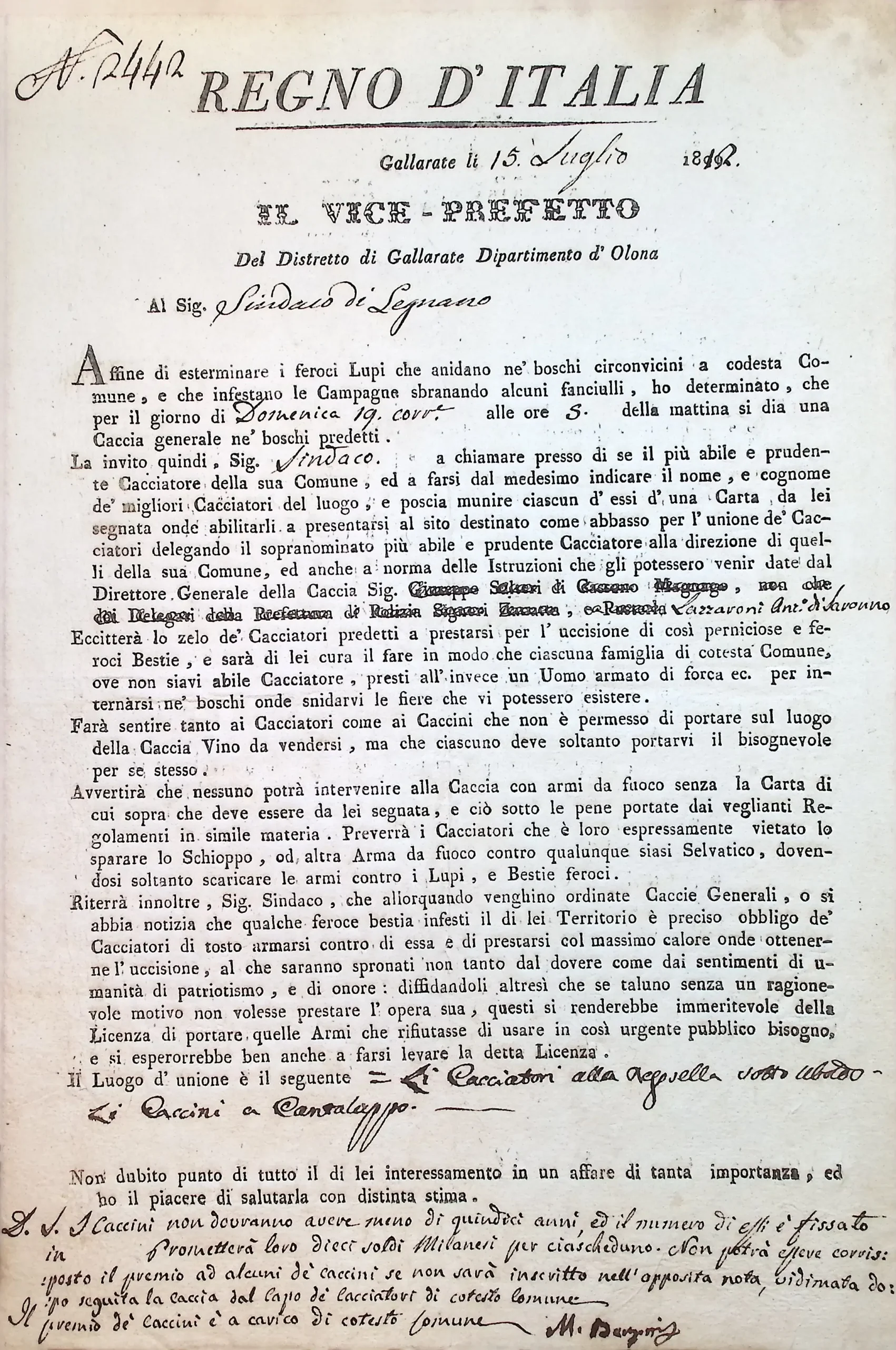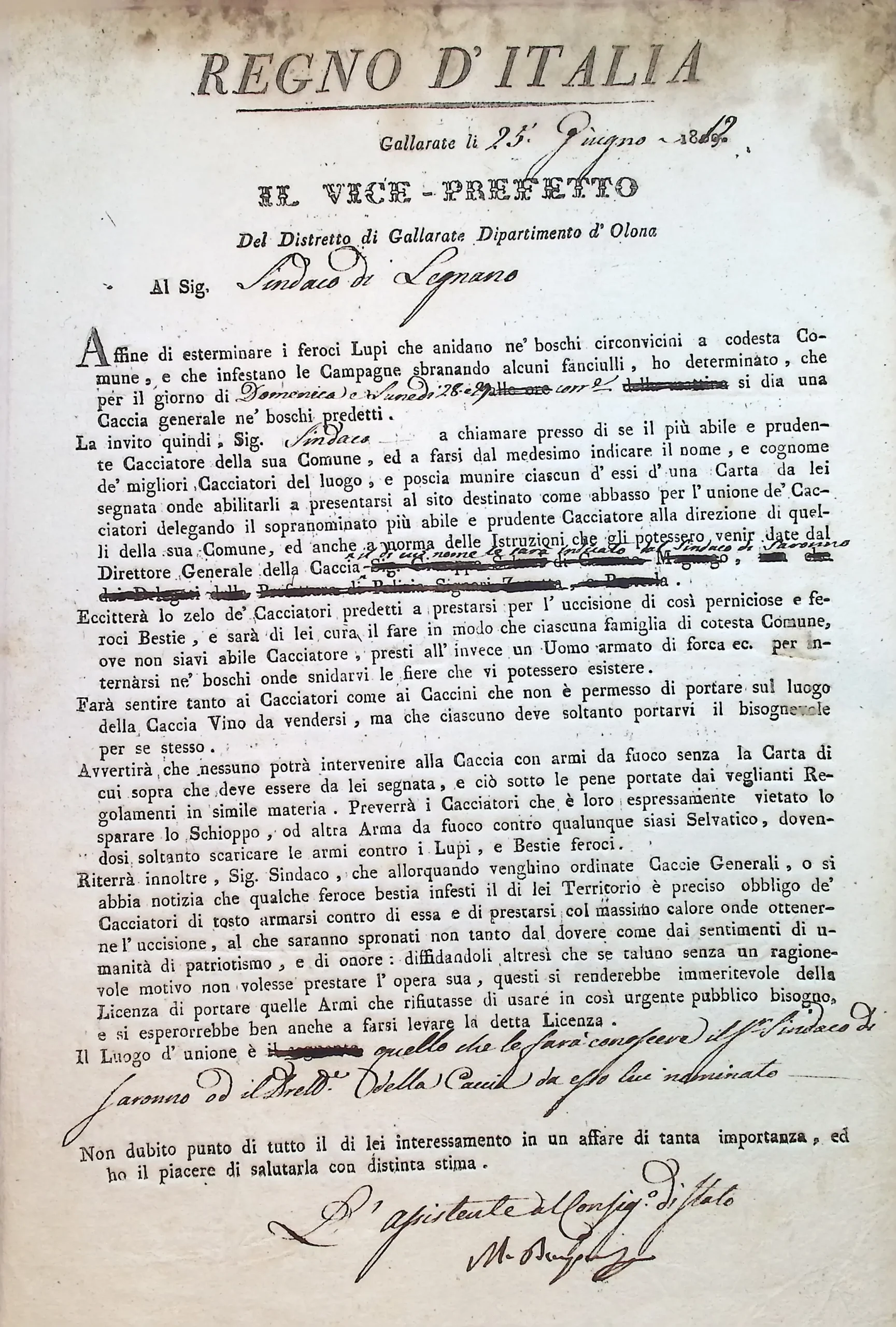 Disposizioni per la caccia ai lupi infestanti i boschi circonvicini a Legnano