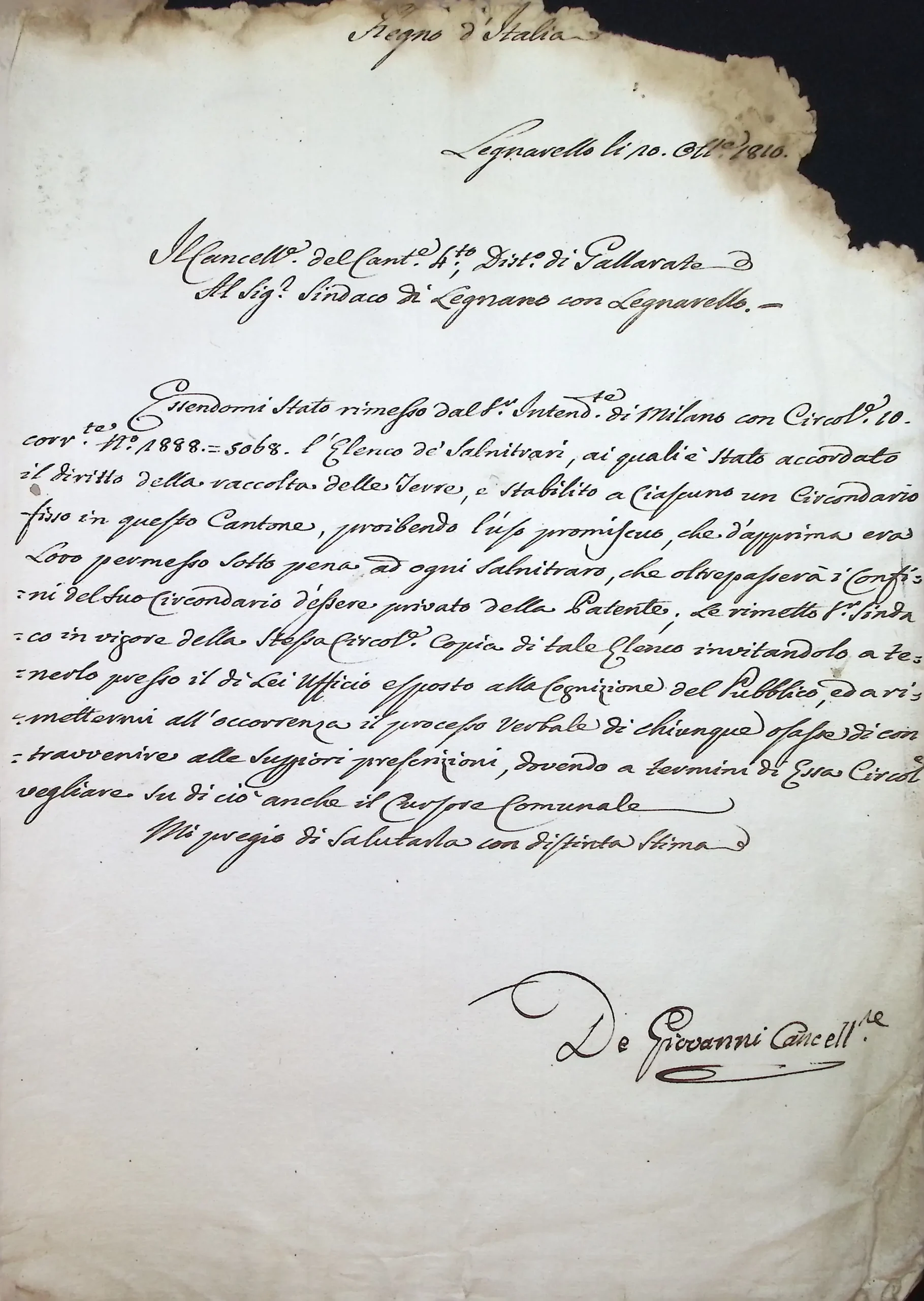 Disposizioni per l’esercizio del diritto dei salnitrai di raccolta terre