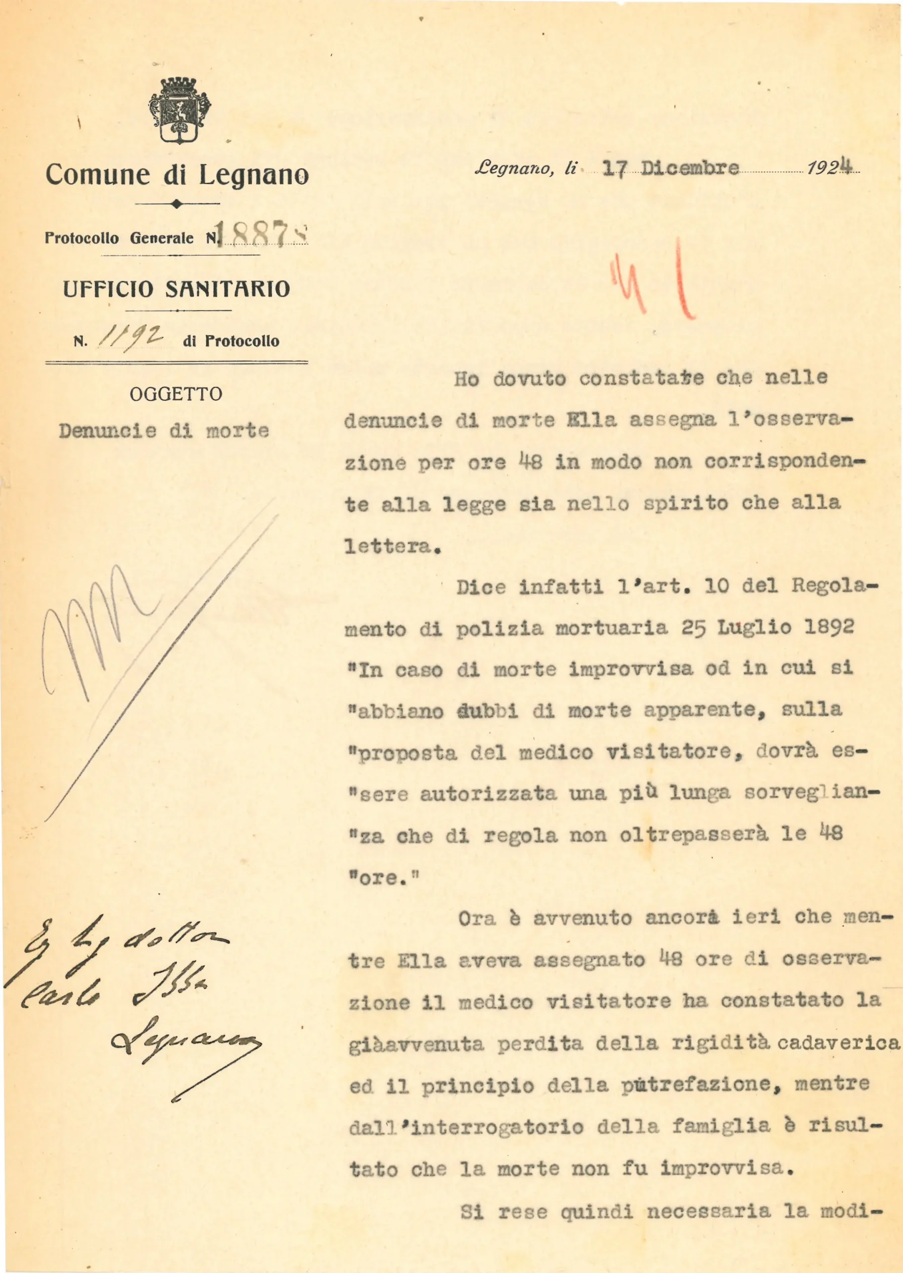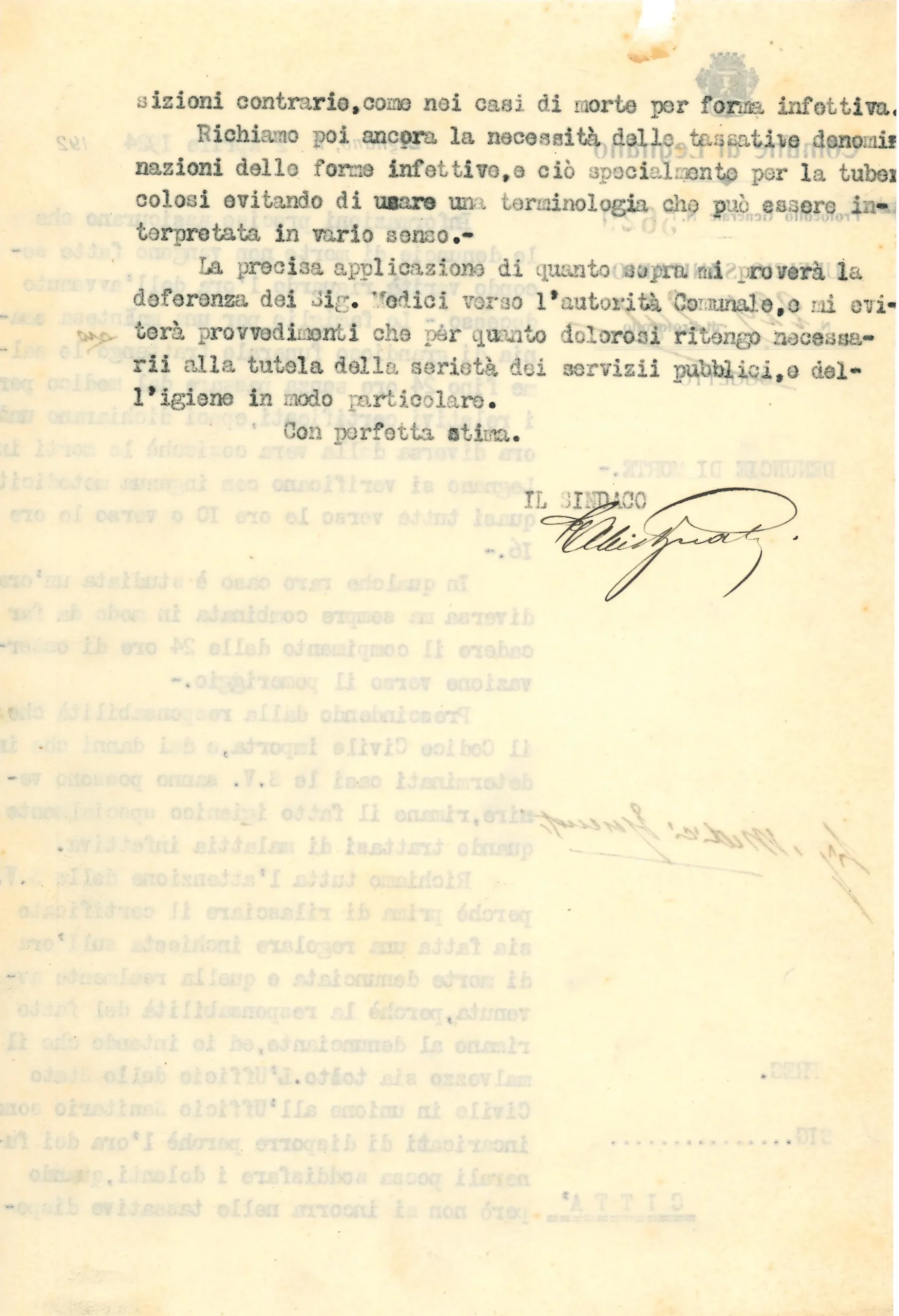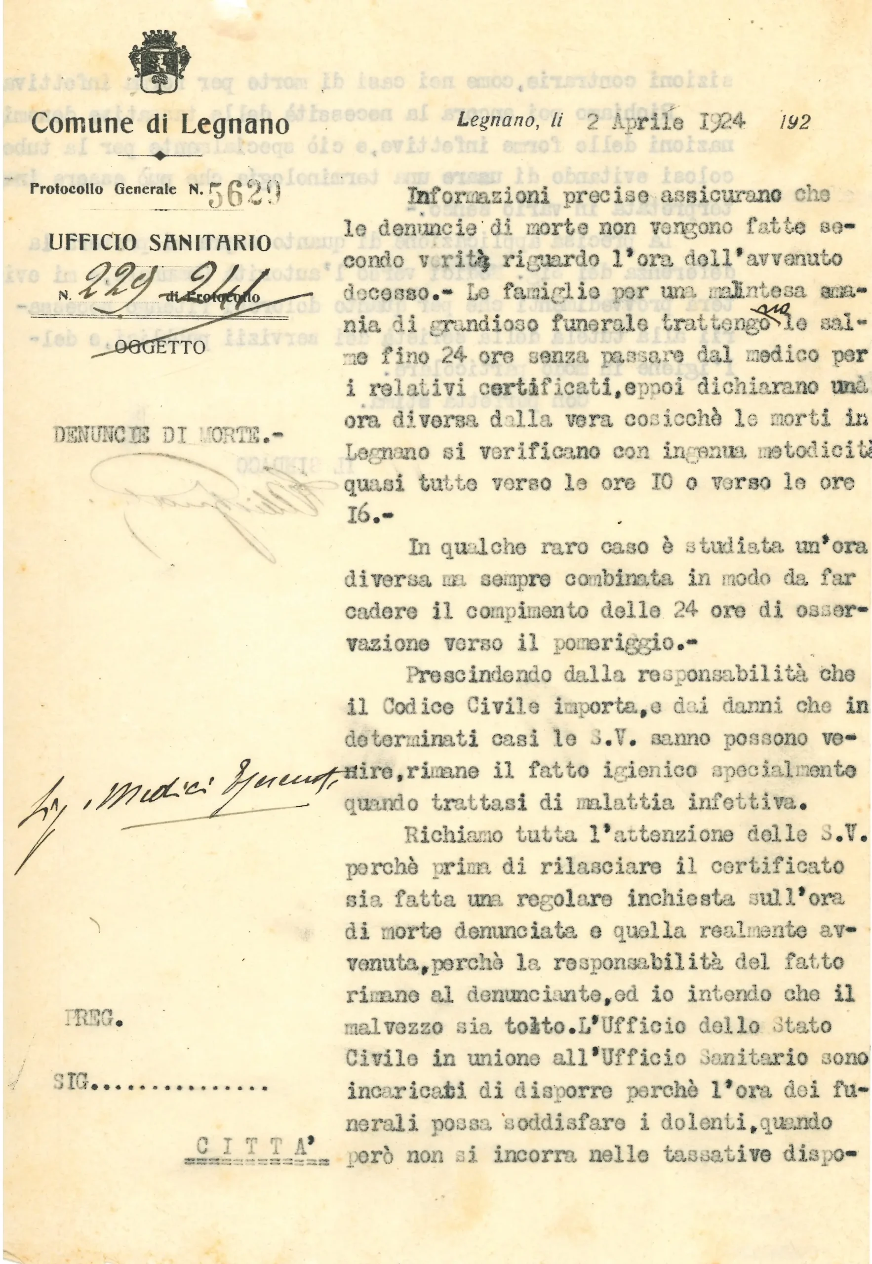 Disposizioni per l’ufficio sanitario circa le denunce di morte
