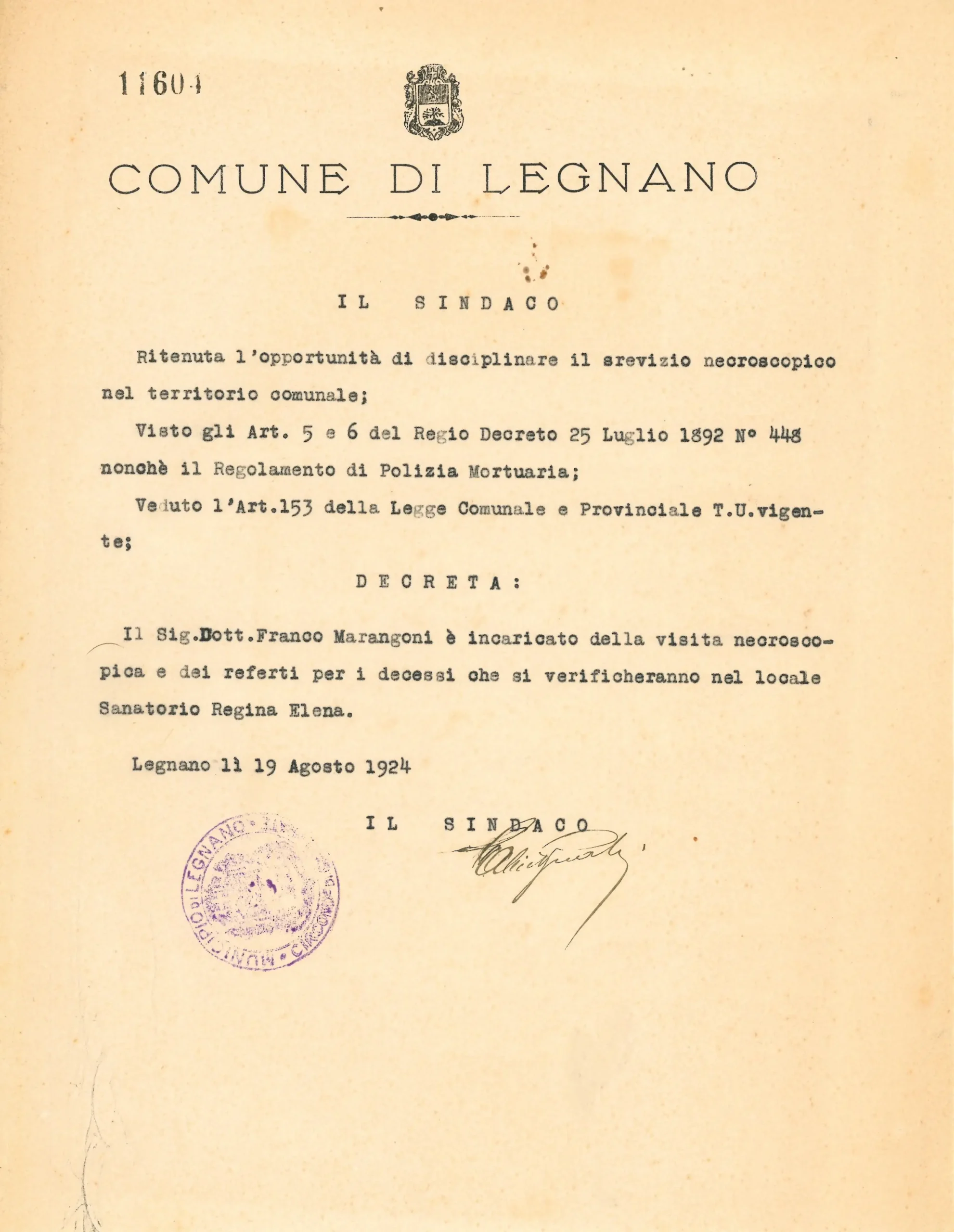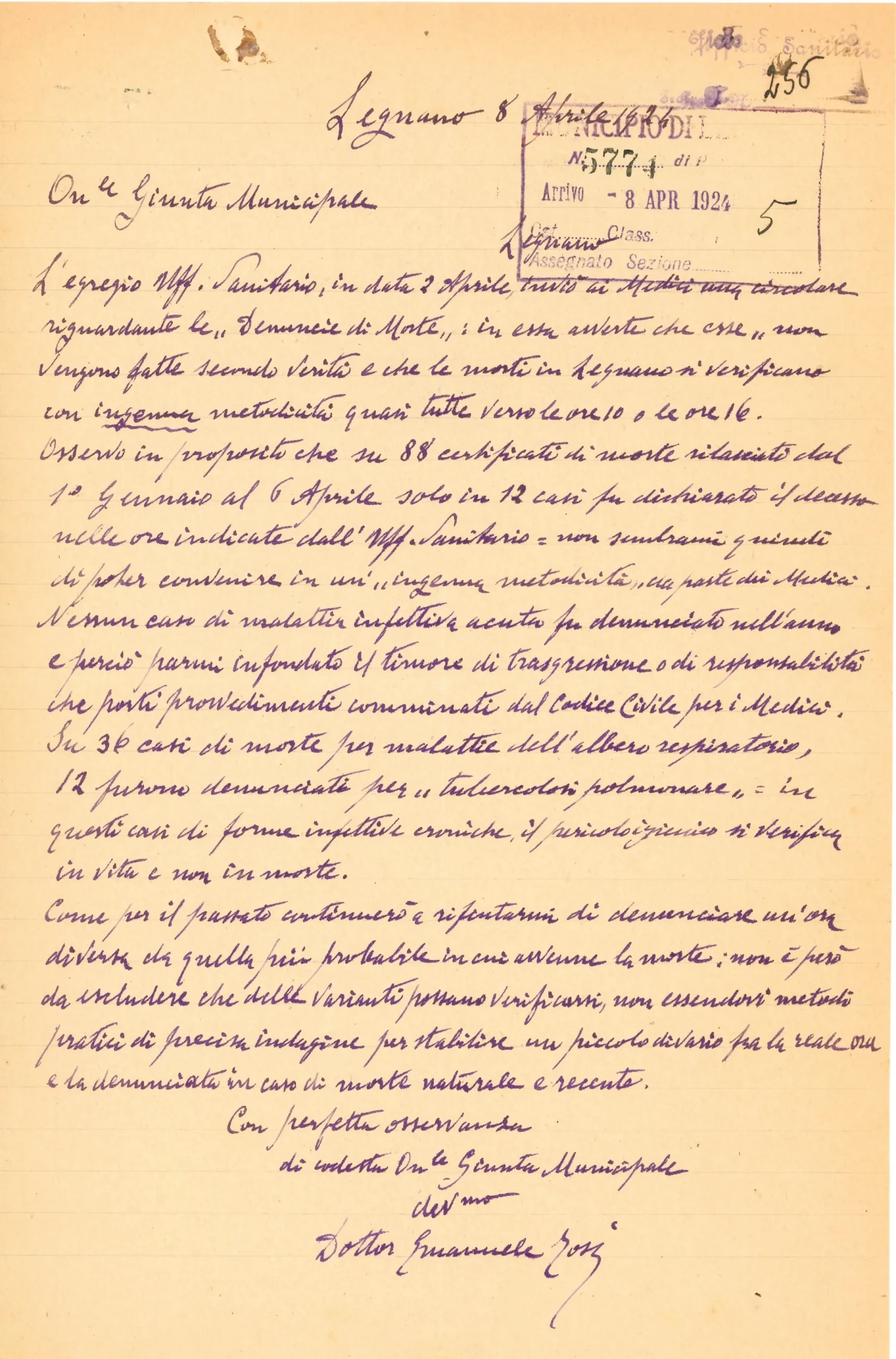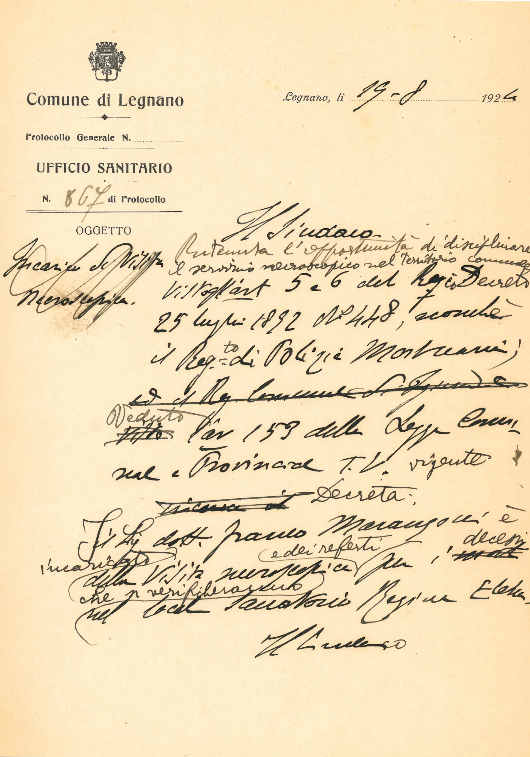 Disposizioni per l’ufficio sanitario circa le denunce di morte