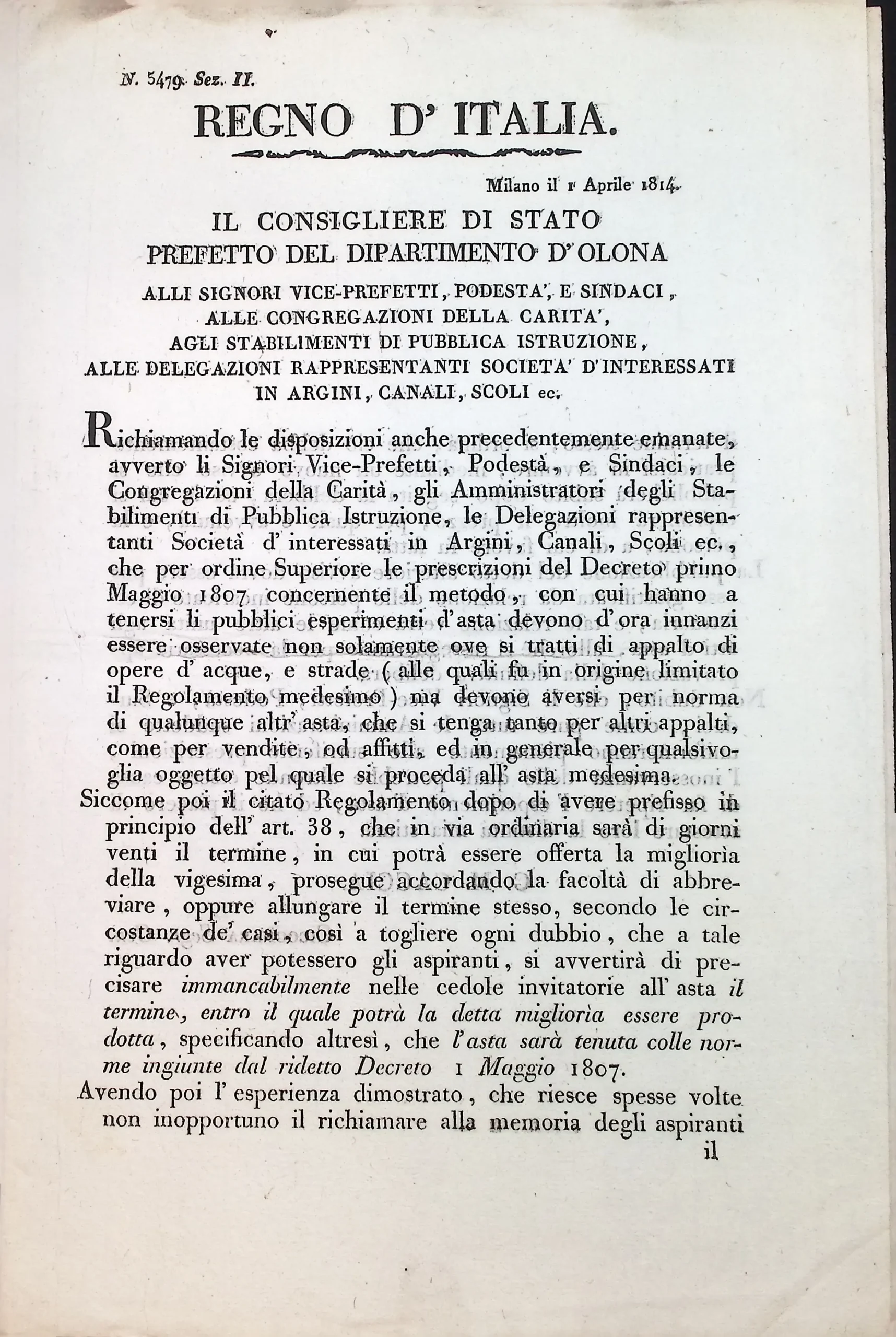 Disposizioni prefettizie sui metodi per la tenuta degli esperimenti di asta pubblica nonché sulla registrazione dei relativi contratti