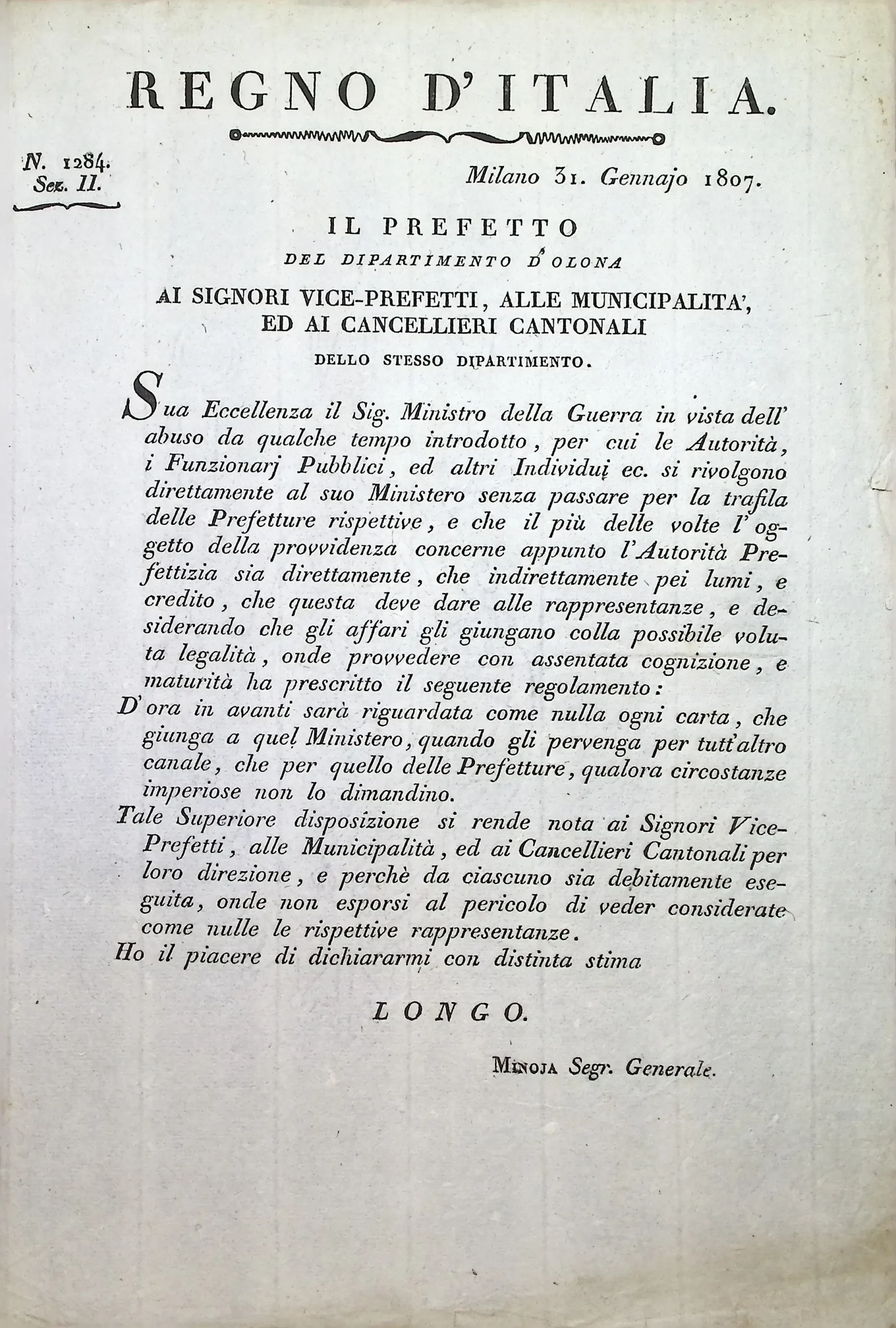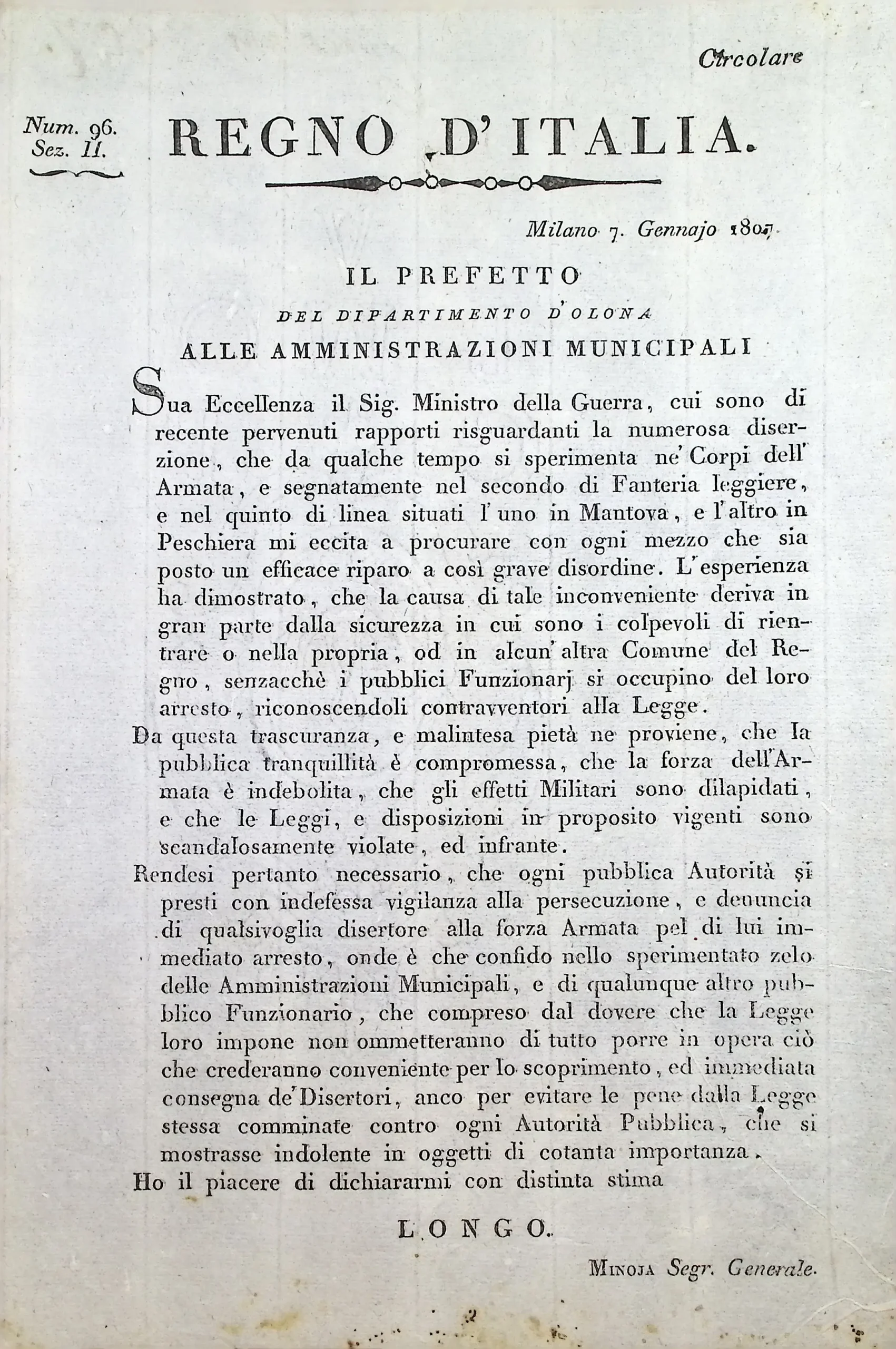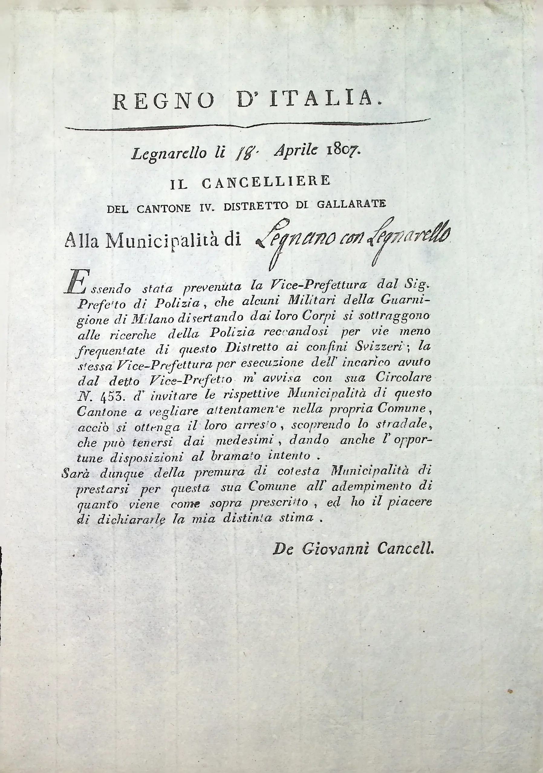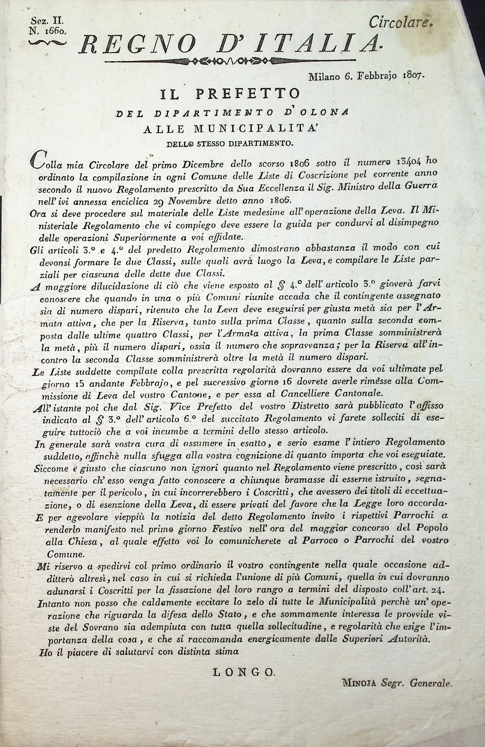 Disposizioni e circolari relative alla formazione delle liste di leva per l’anno 1808