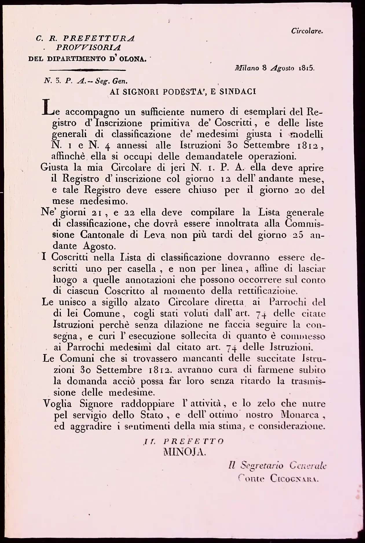 | Estr. Cronologici | 1815 |