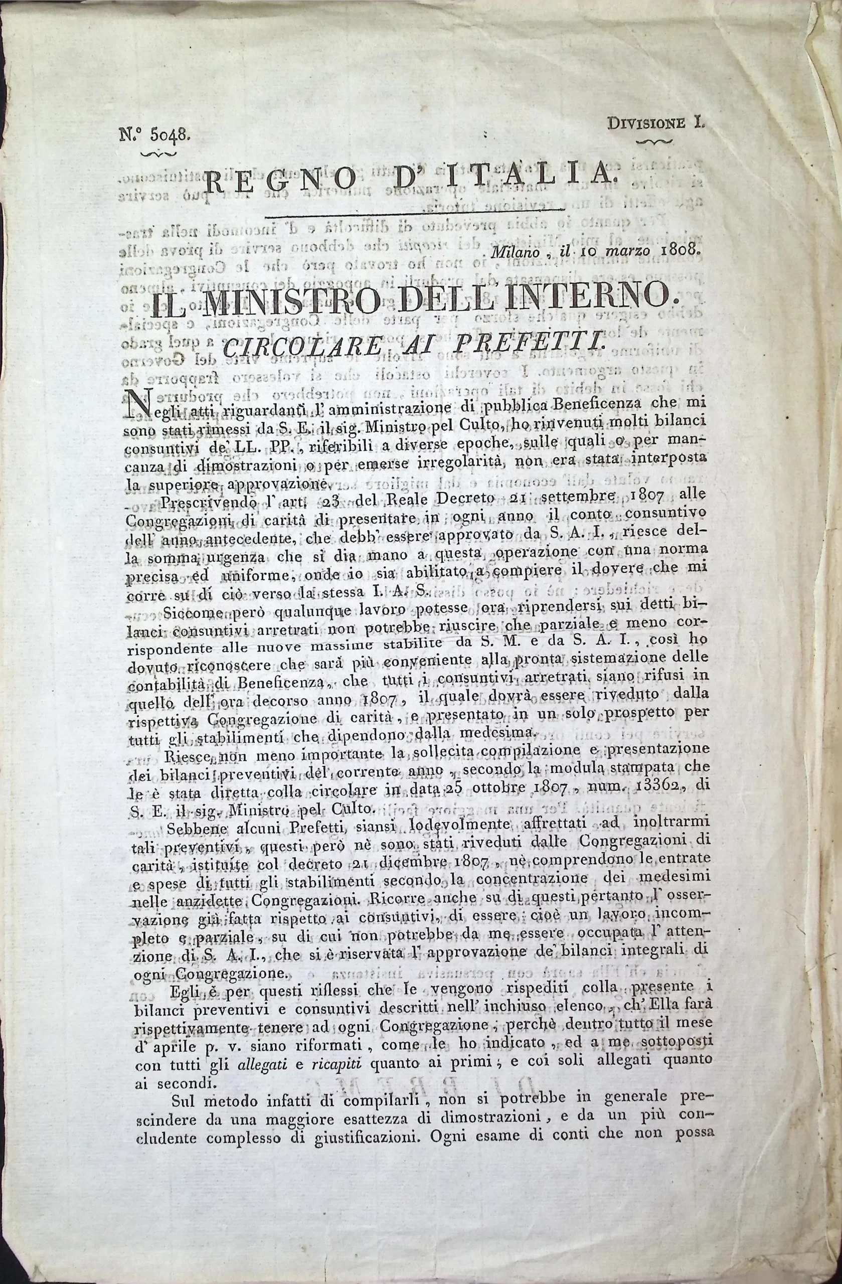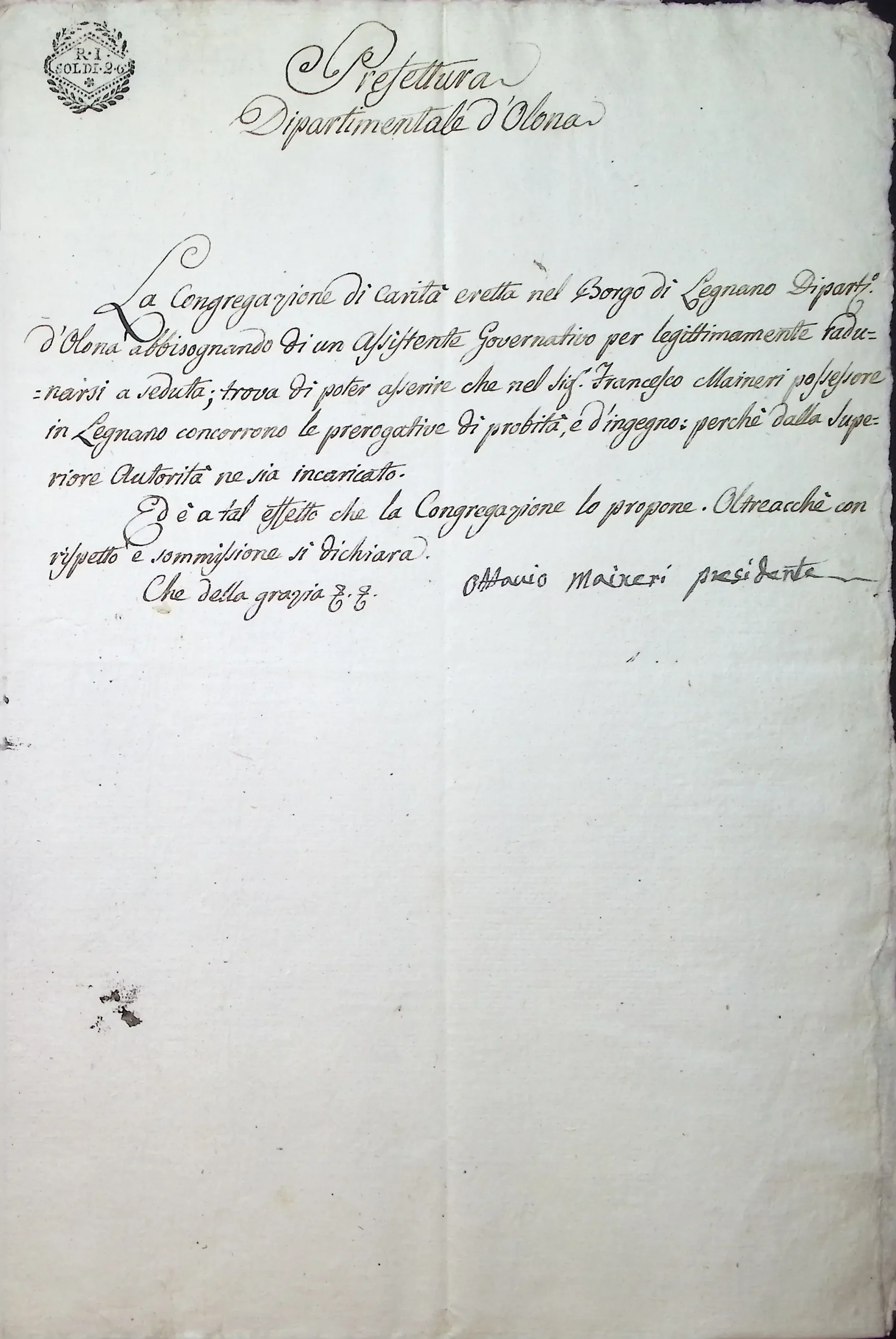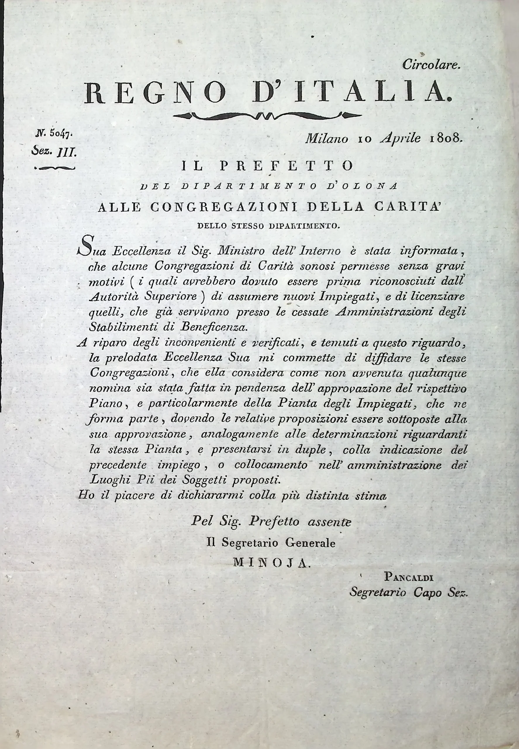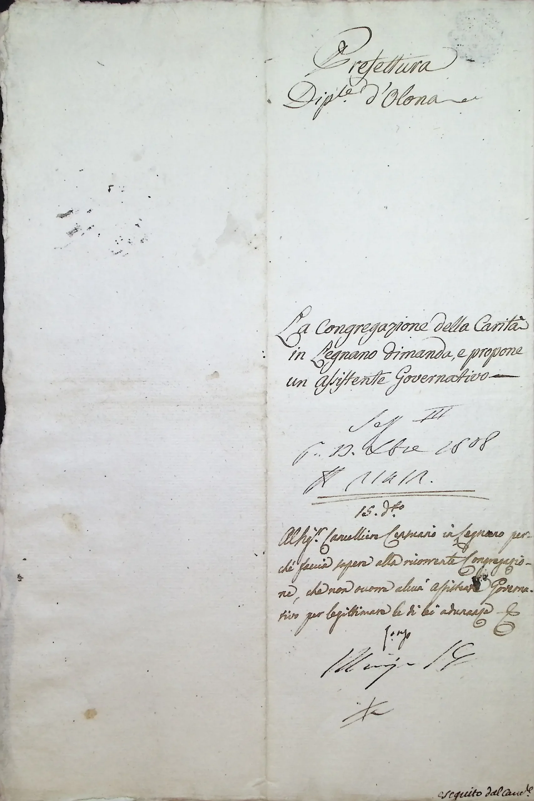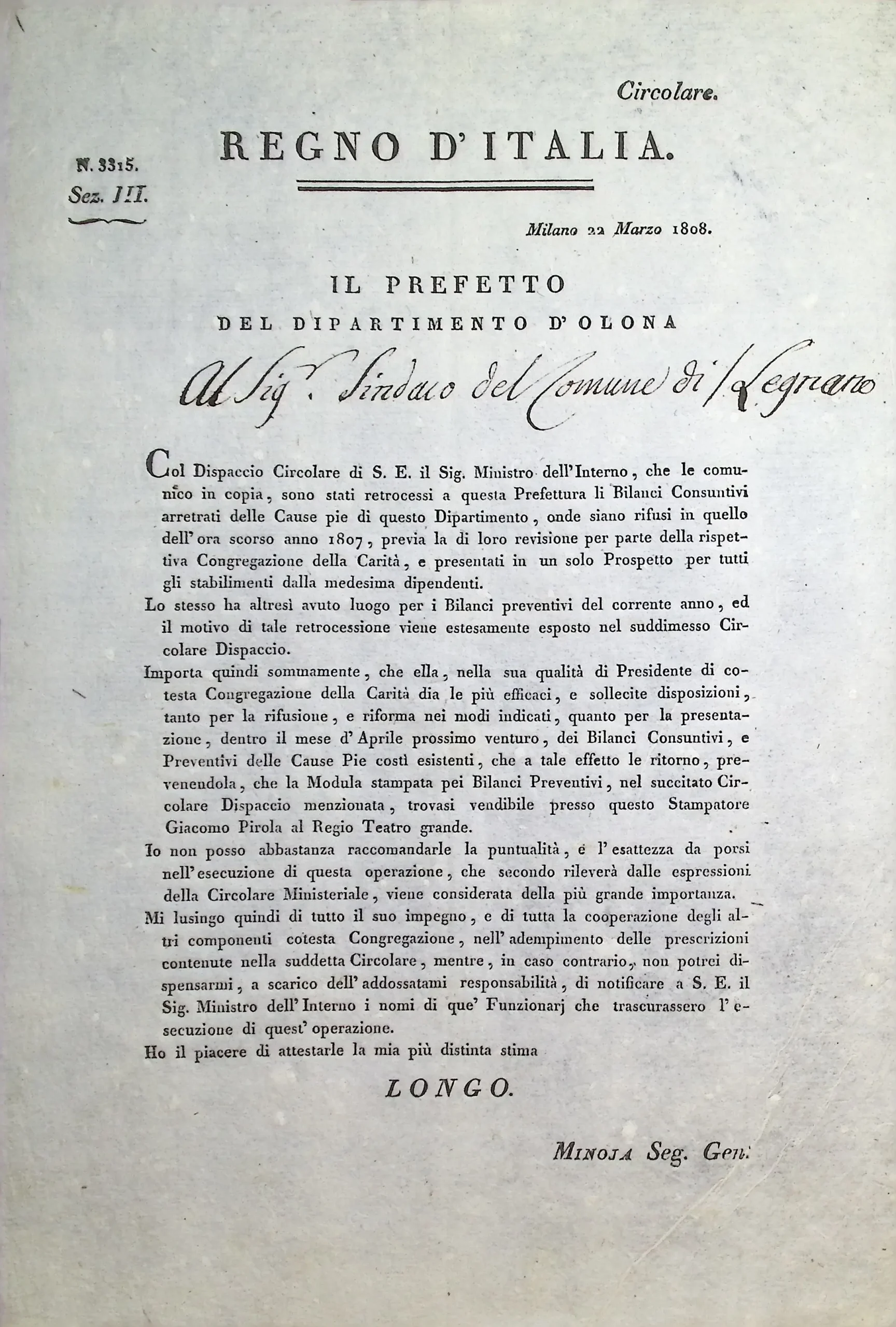 | Note dell'archivista | Descrizione precedente: "Disposizioni sul funzionamento della Congregazione di carità eretta nel 1807 nel Comune di Legnano". |
