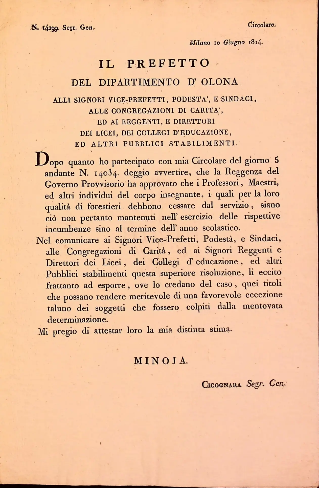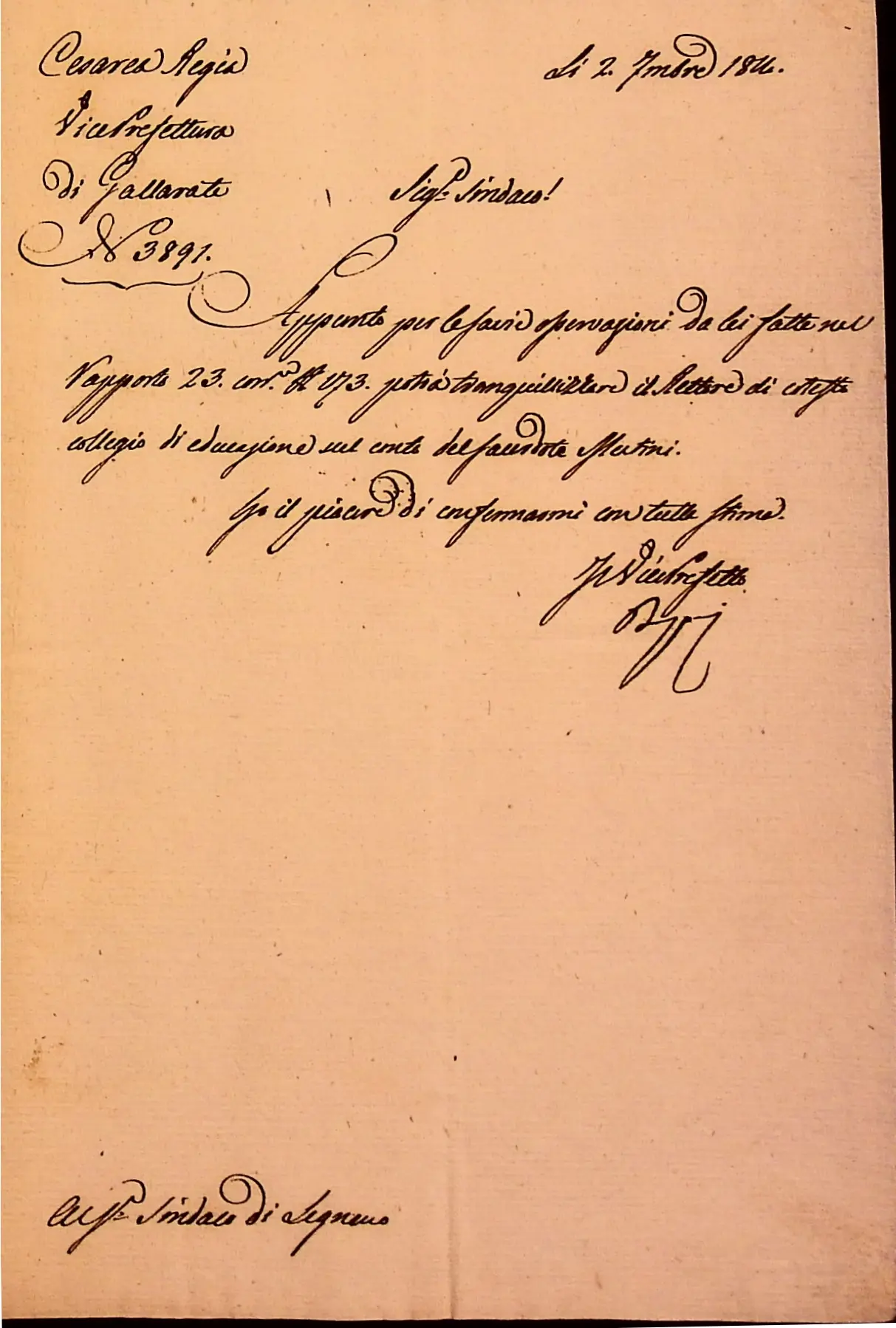 | Note dell'archivista | Il carteggio è incompleto: manca infatti la minuta della lettera del sindaco citata nella risposta del vice prefetto portante la richiesta di mantenimento in servizio il sacerdote Mutini, docente nel collegio di Legnano. |