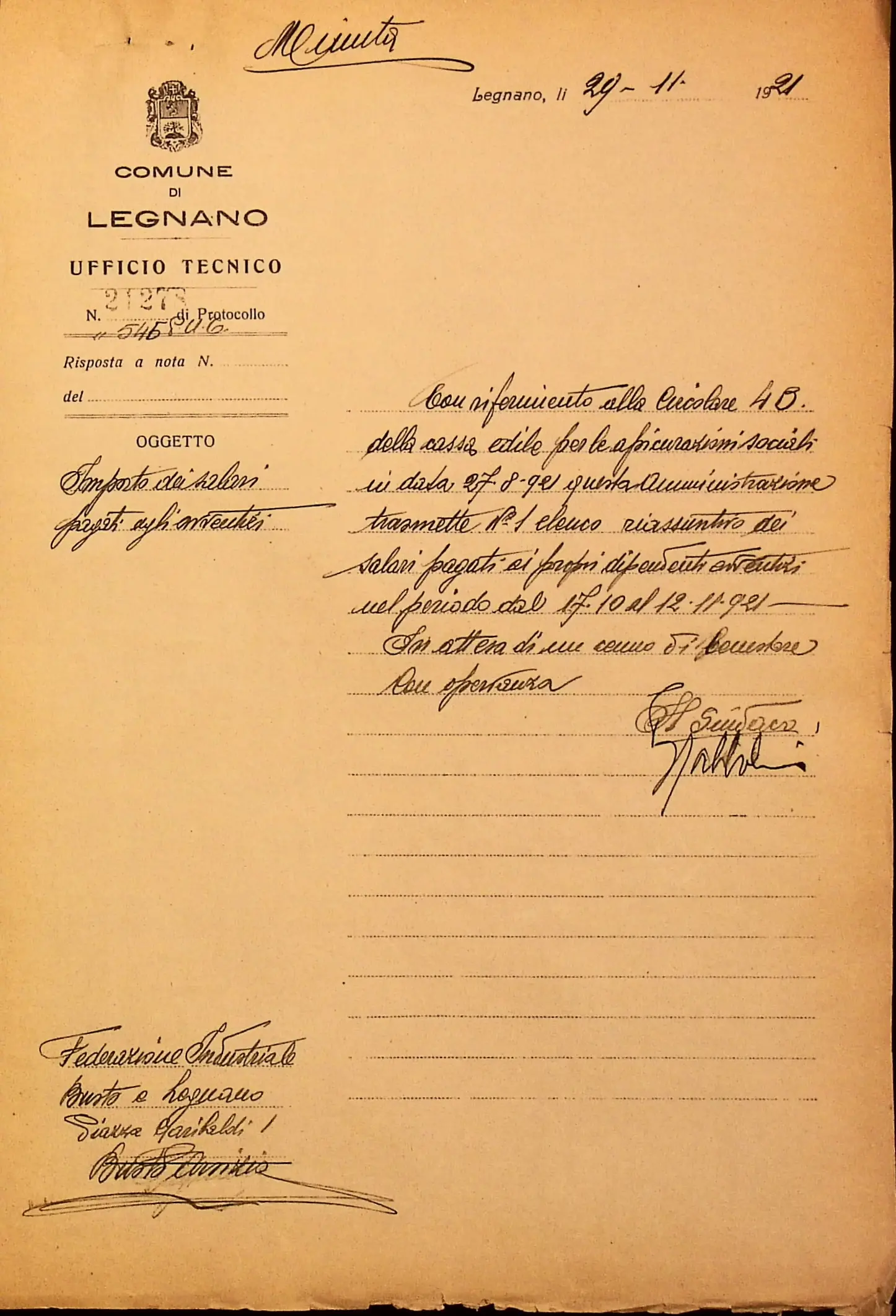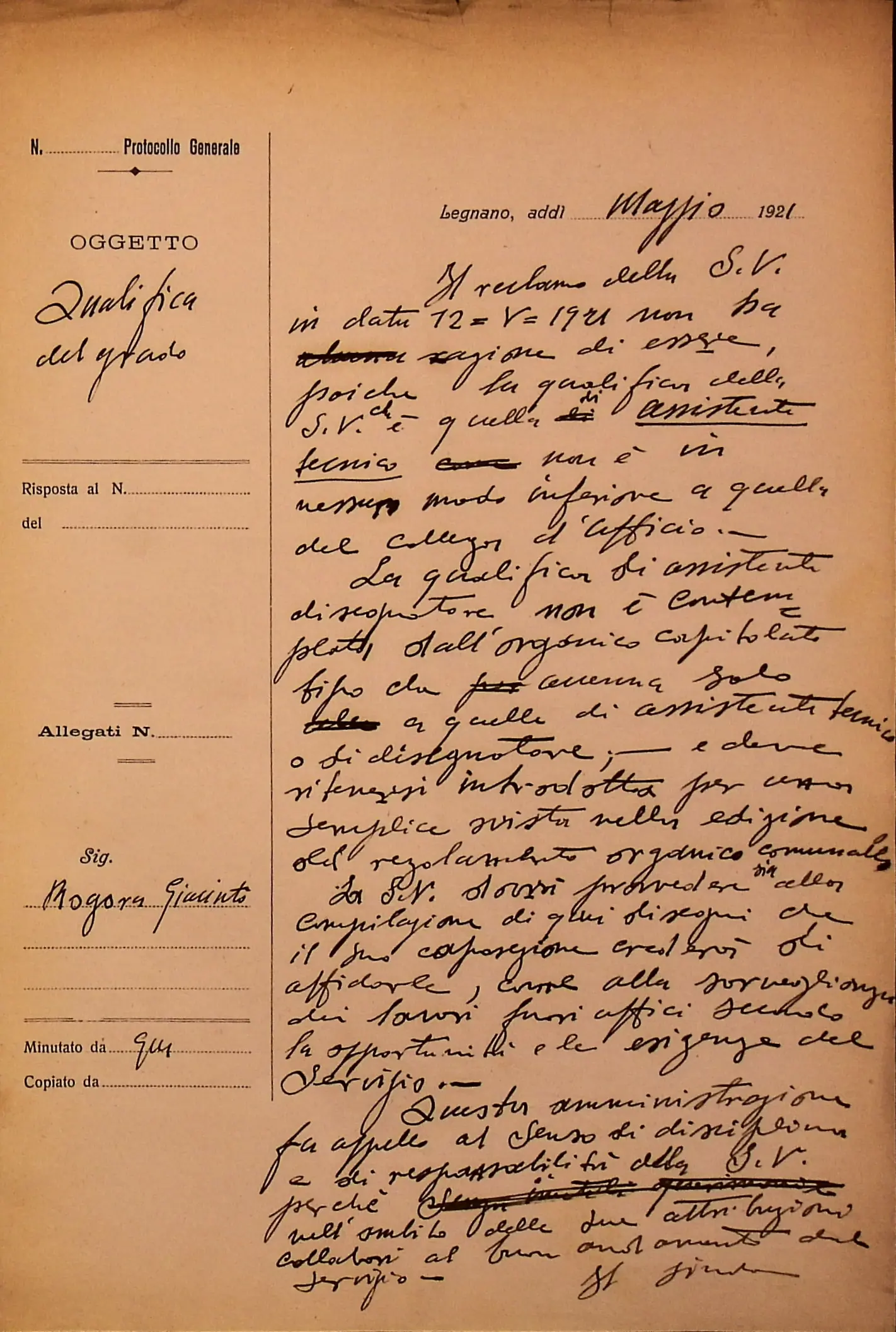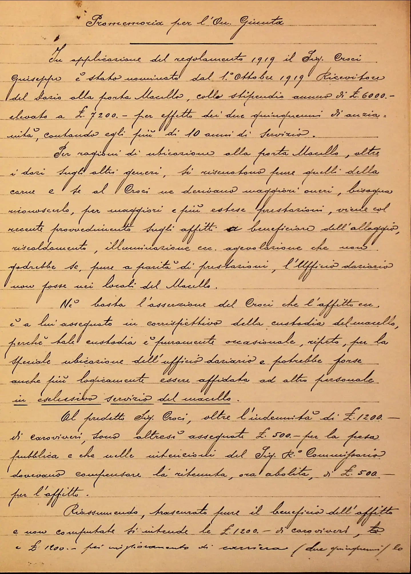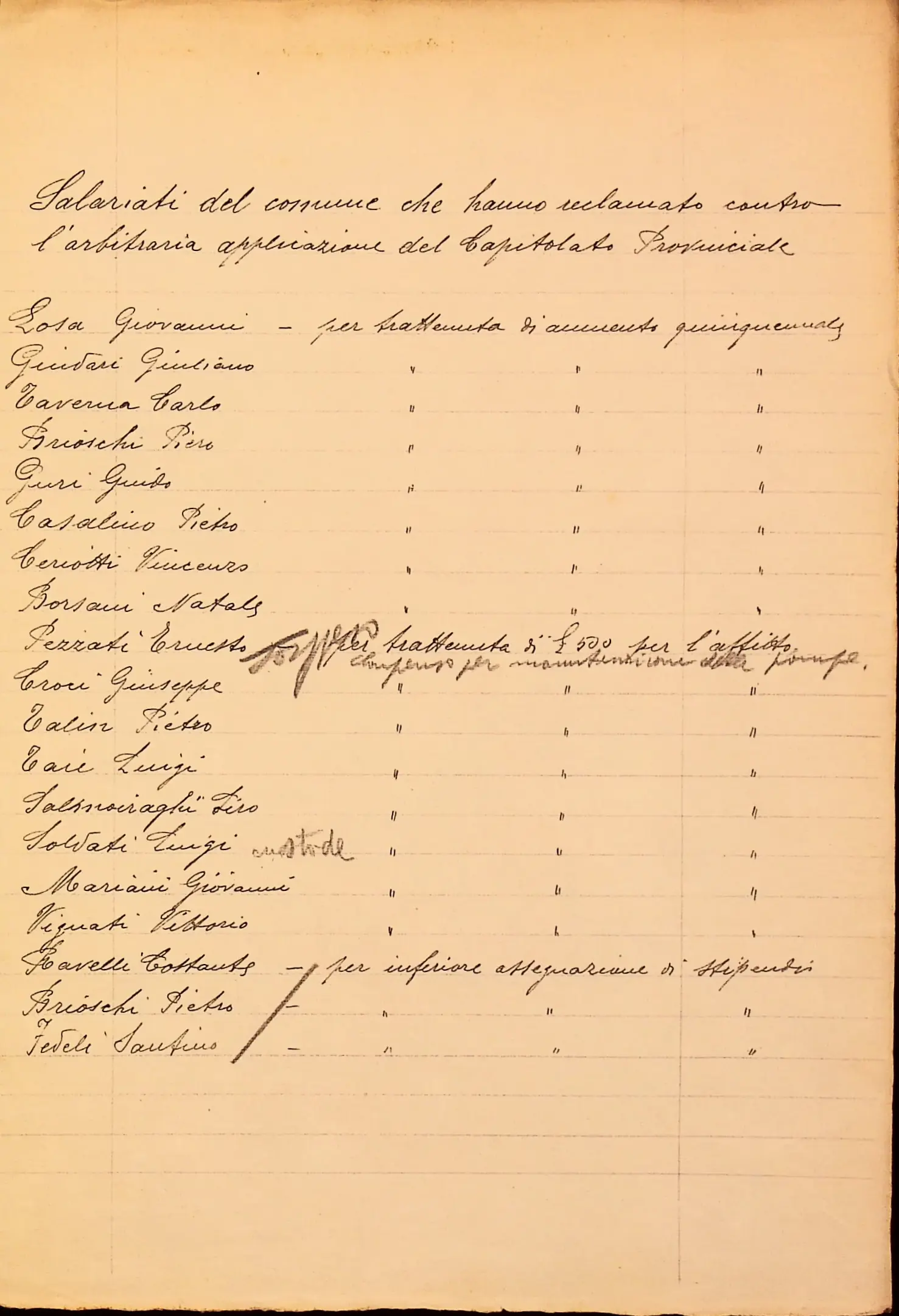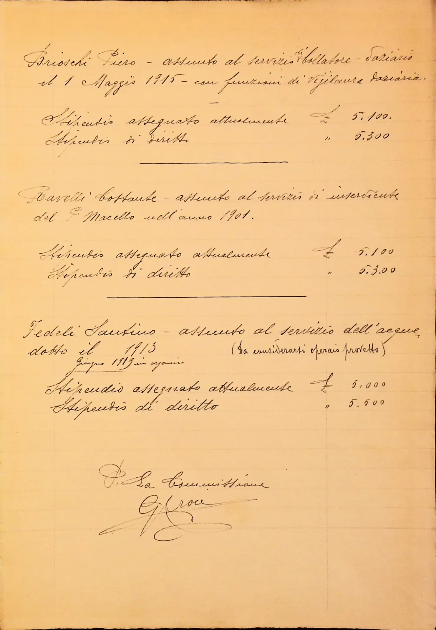 Classificazione I.6 - Impiegati; Inservienti; Personale avventizio, ecc