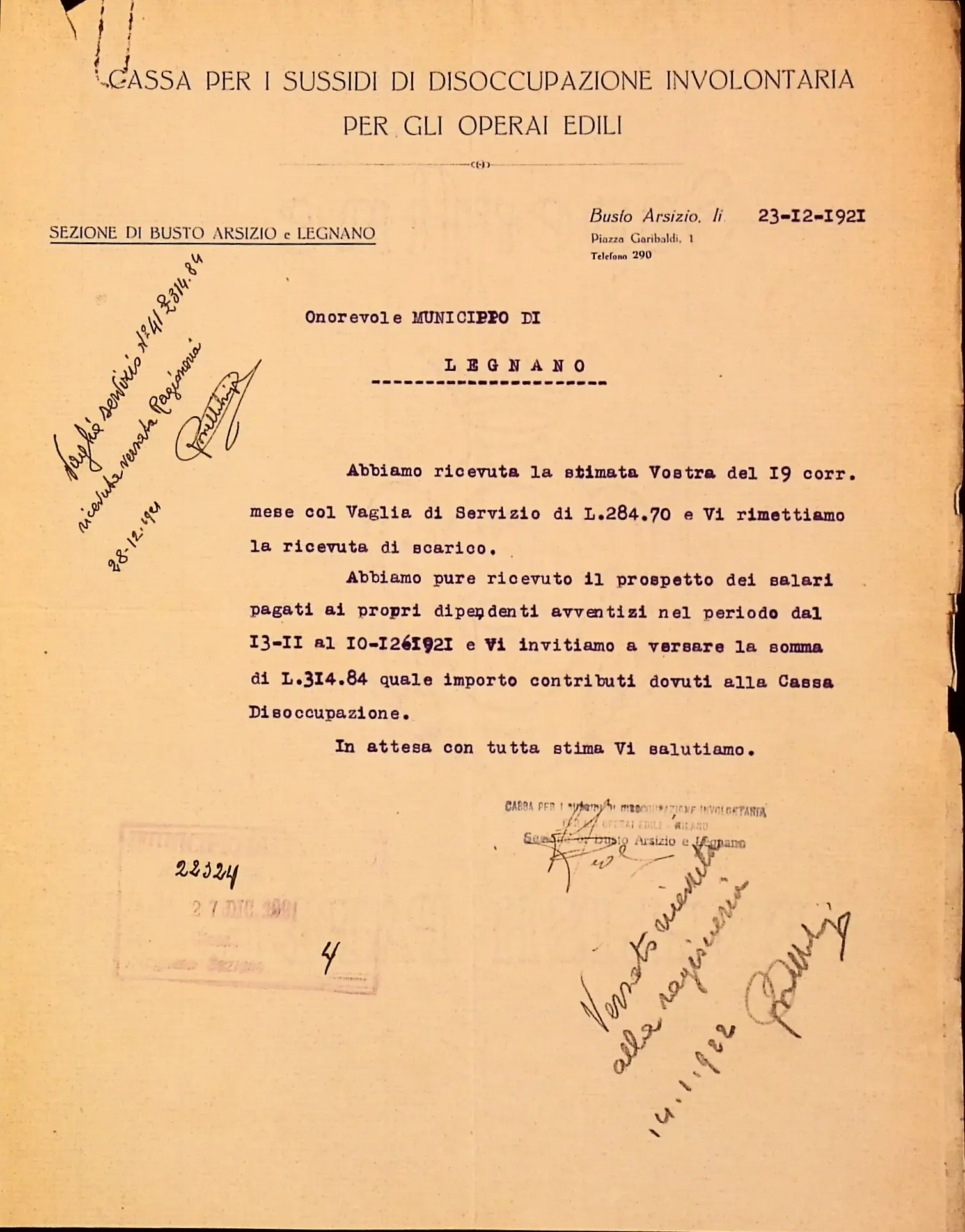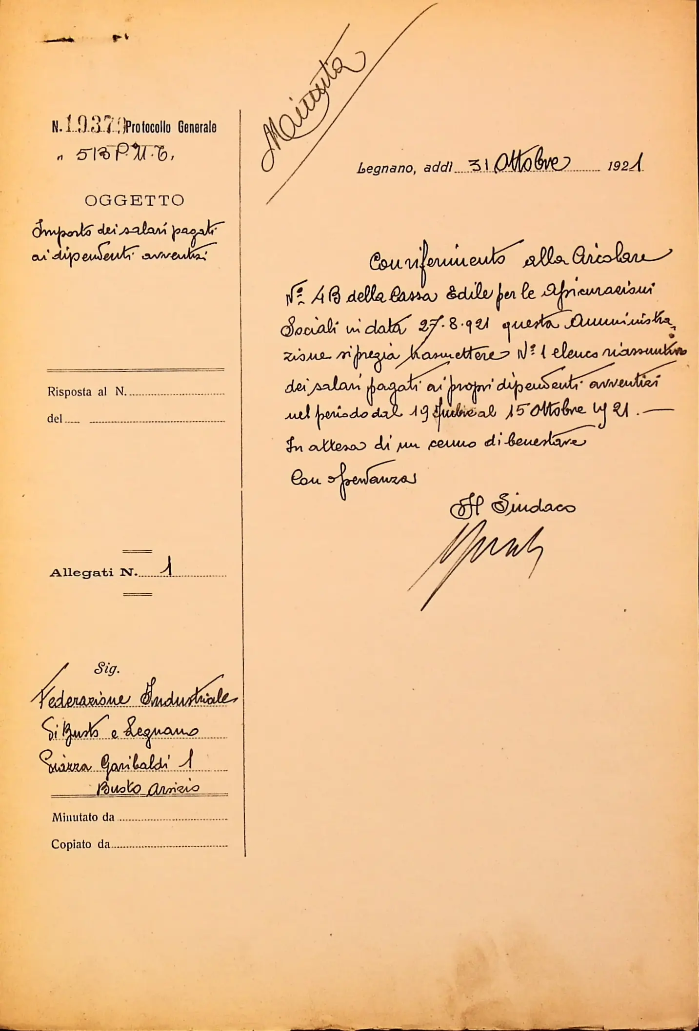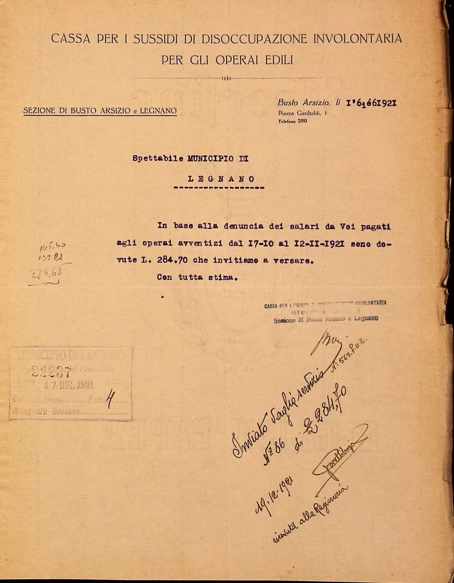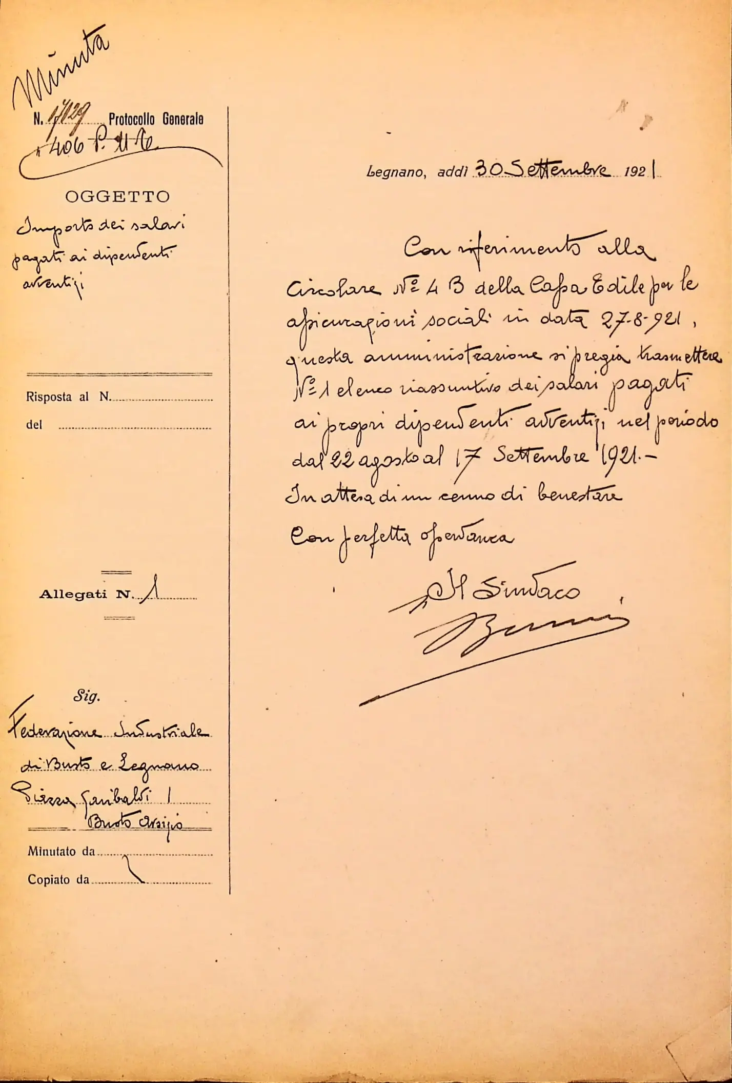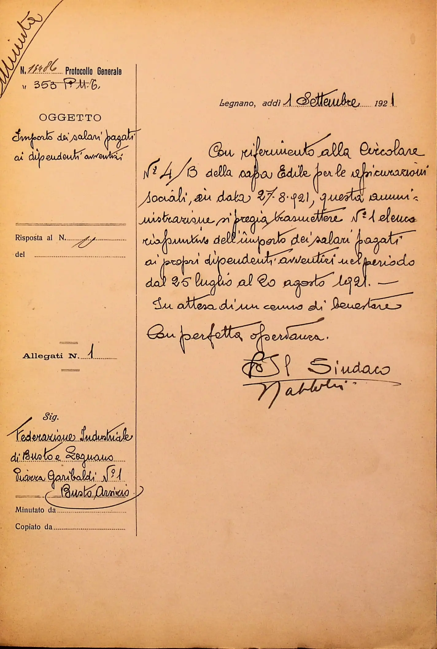 Classificazione I.6 - Impiegati; Inservienti; Personale avventizio, ecc