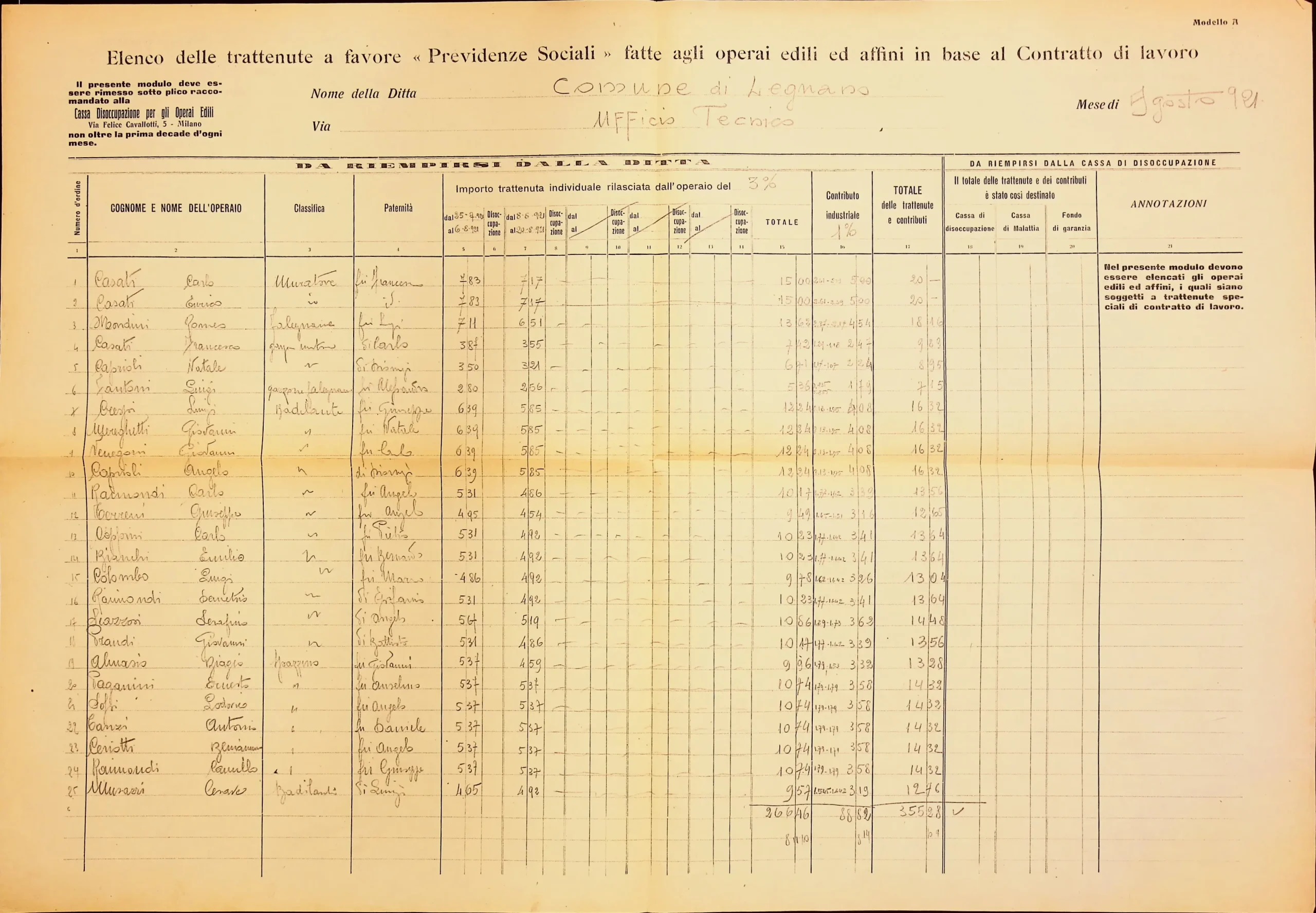Elenchi del personale comunale ai quali spetta l’indennità mensile di carovita