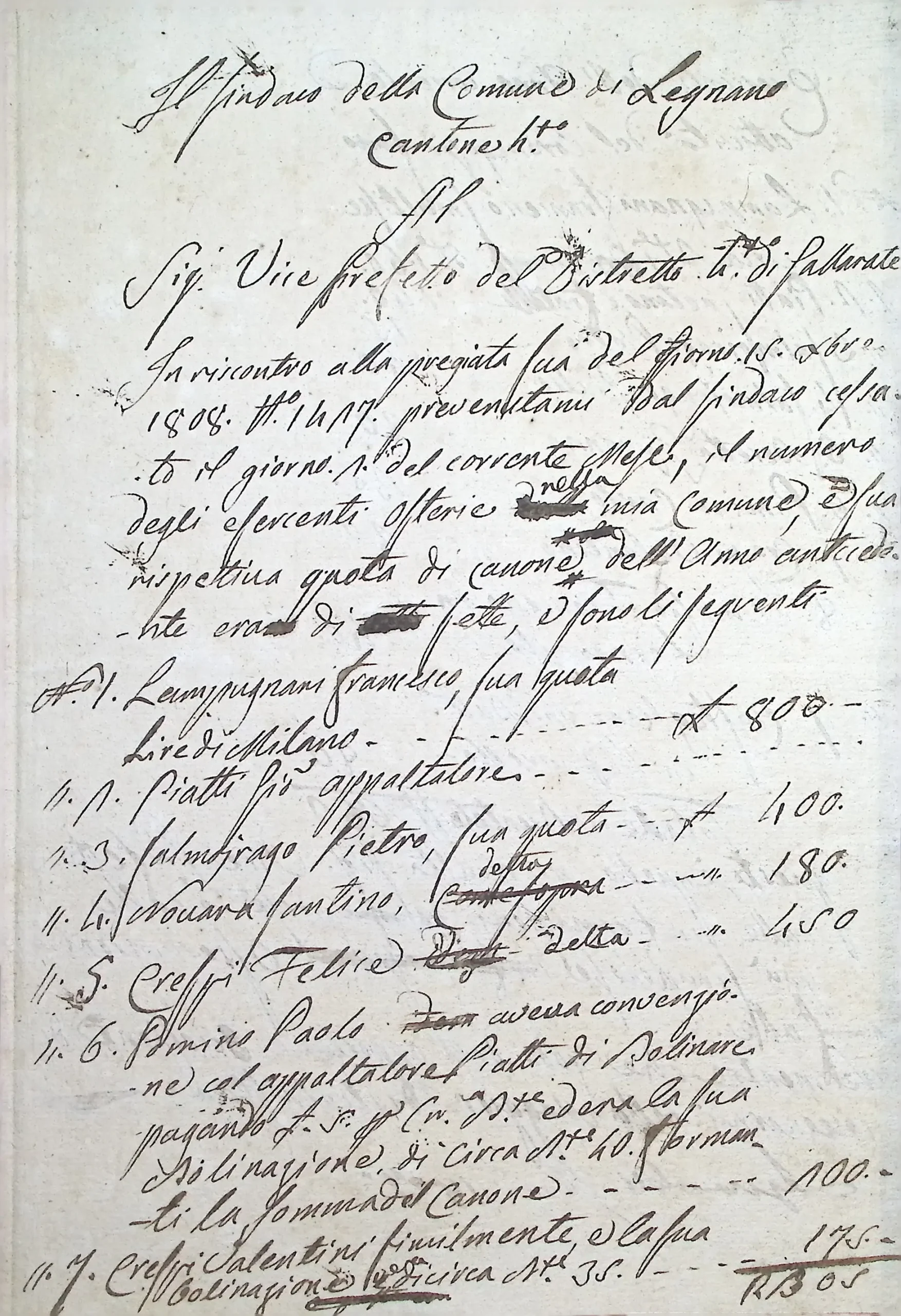 Elenco degli esercenti di osterie nel territorio di Legnano