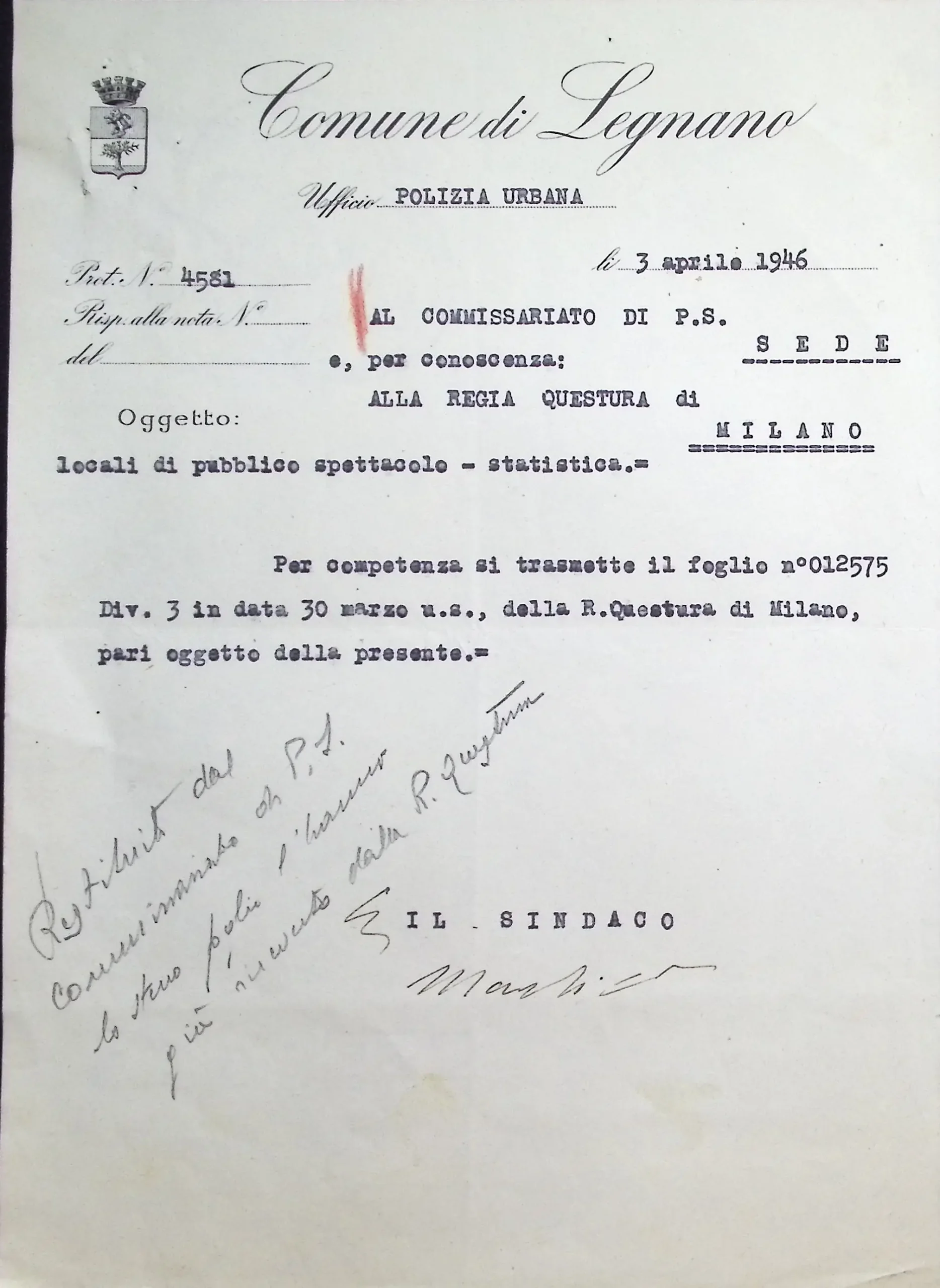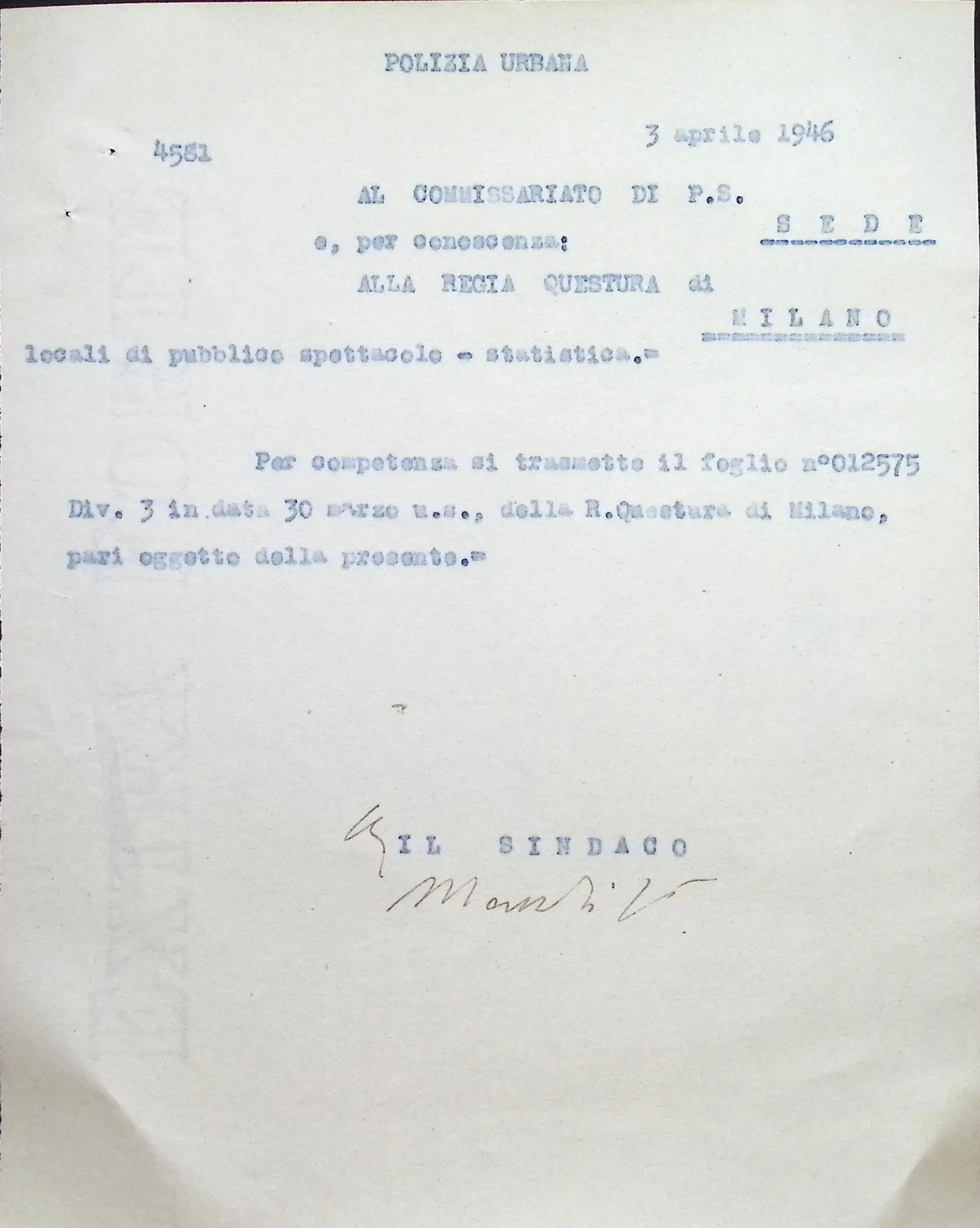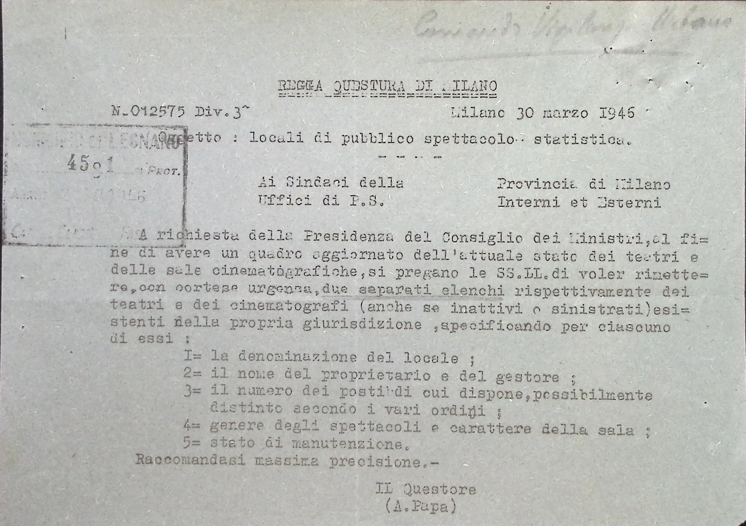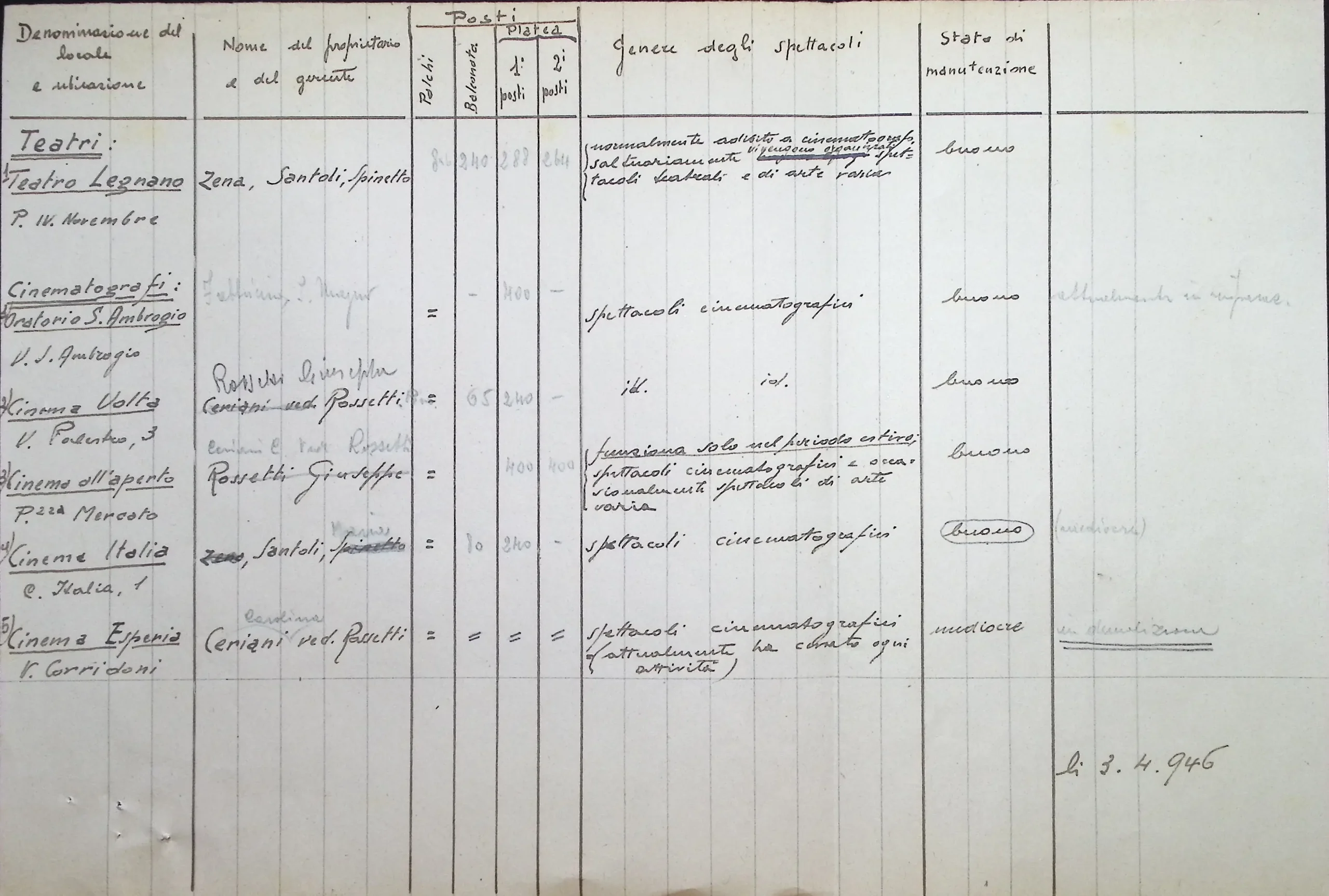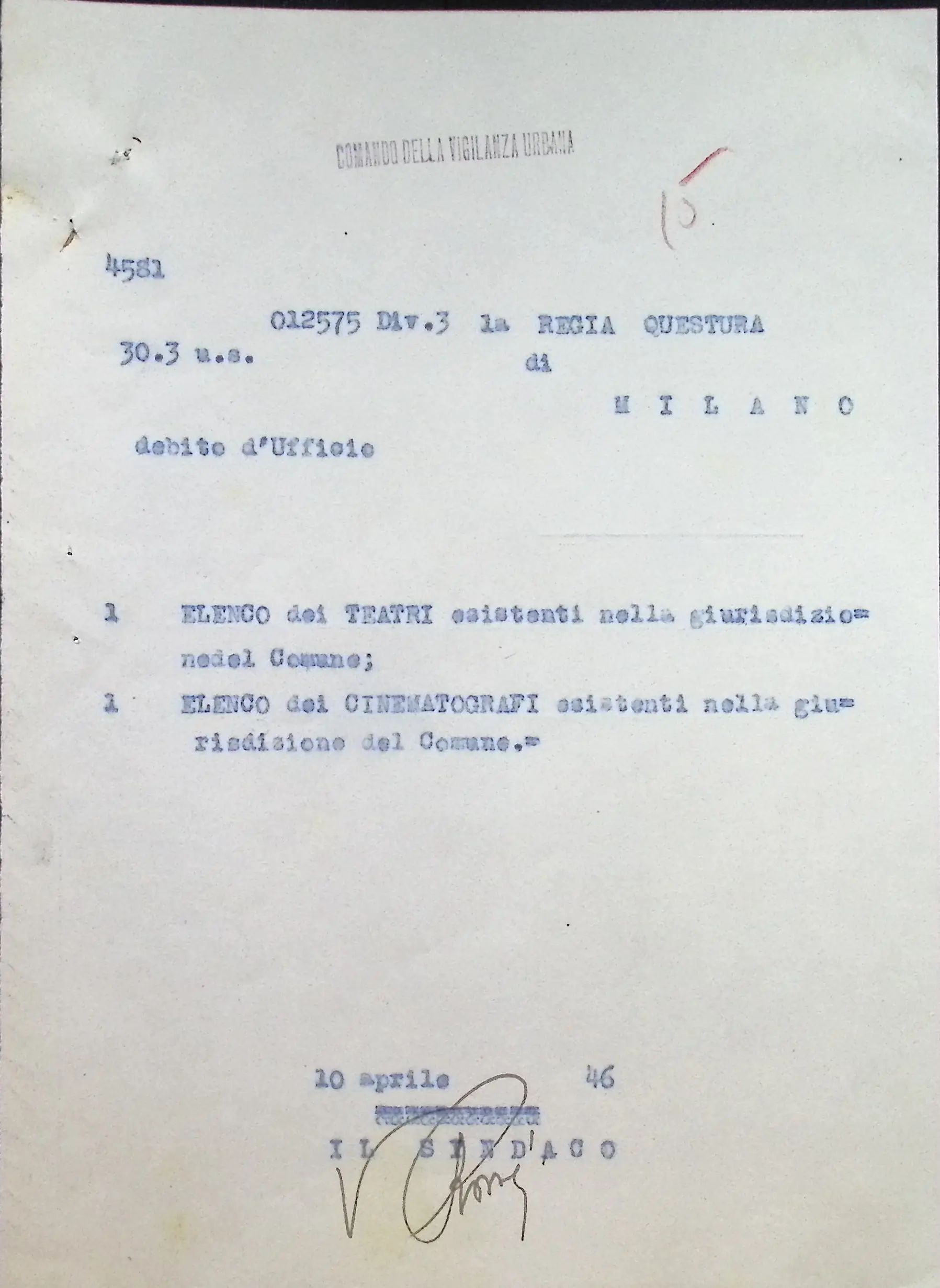 Elenco dei teatri e dei cinematografi esistenti nella giurisdizione del Comune