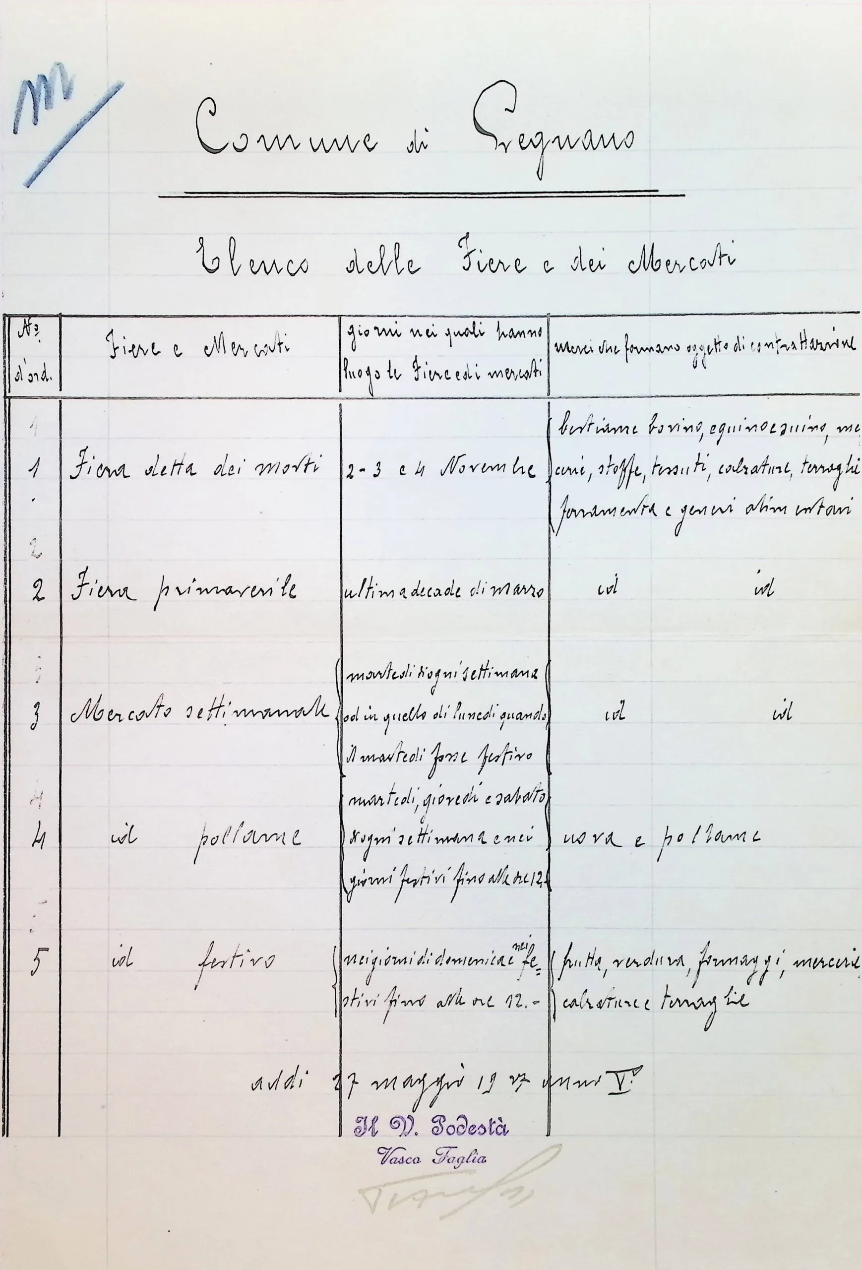 Elenco delle fiere e dei mercati che si svolgono regolarmente nel Comune