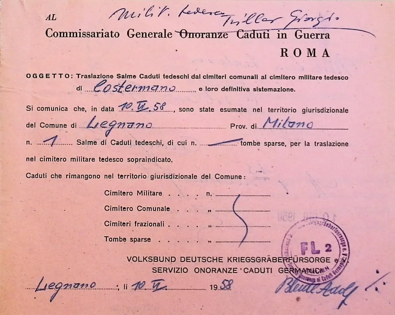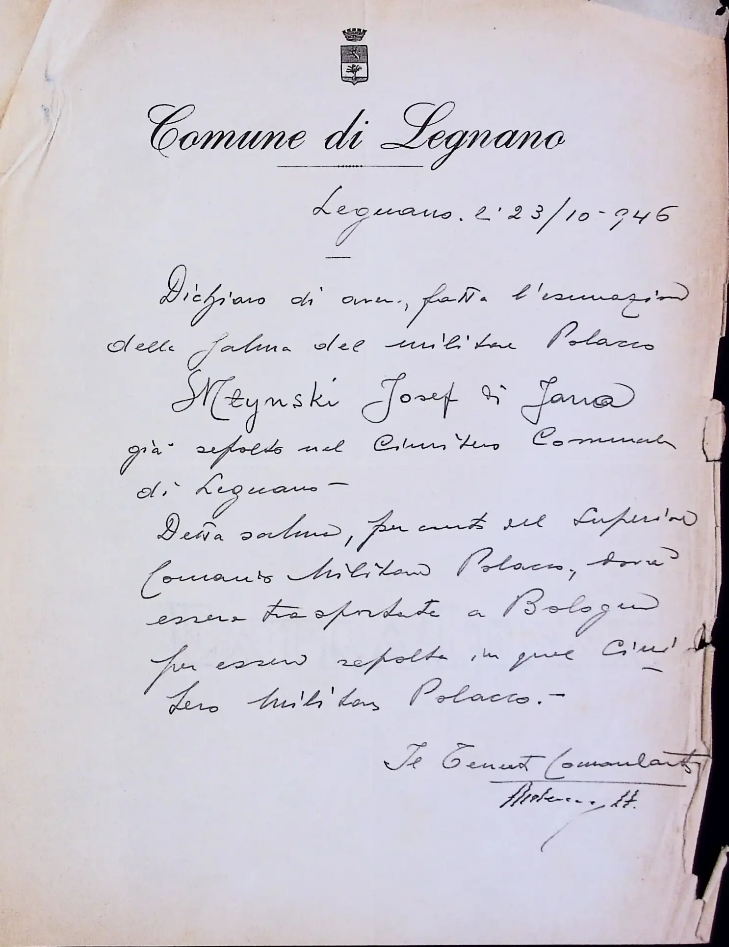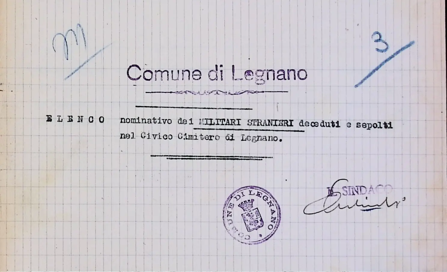 Elenco nominativo dei militari stranieri deceduti e sepolti nel civico cimitero di Legnano
