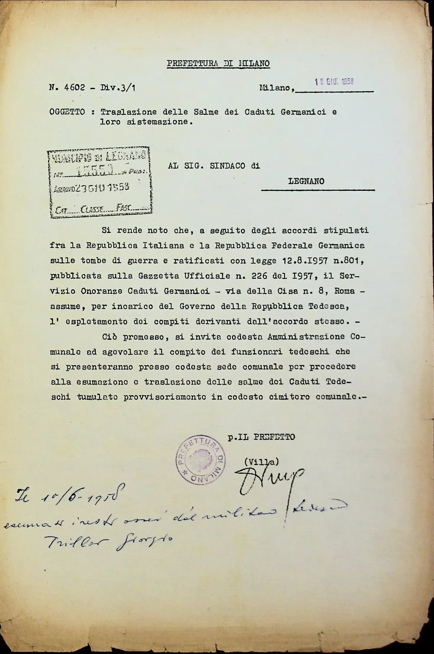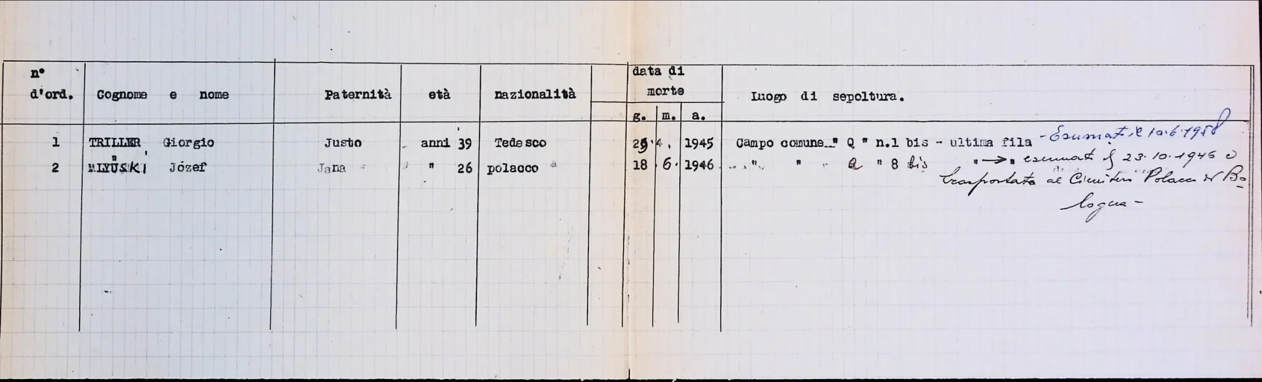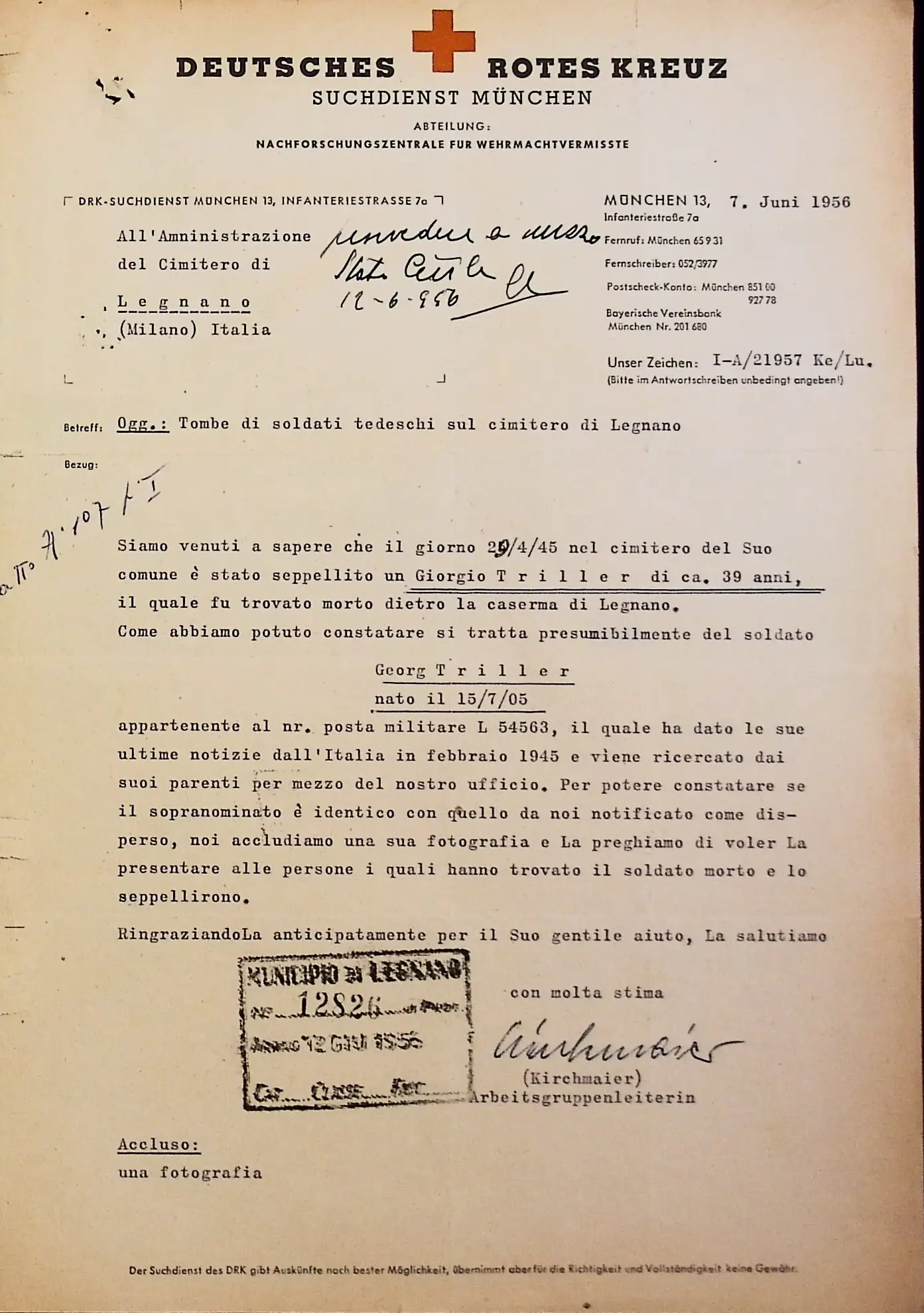 Elenco nominativo dei militari stranieri deceduti e sepolti nel civico cimitero di Legnano