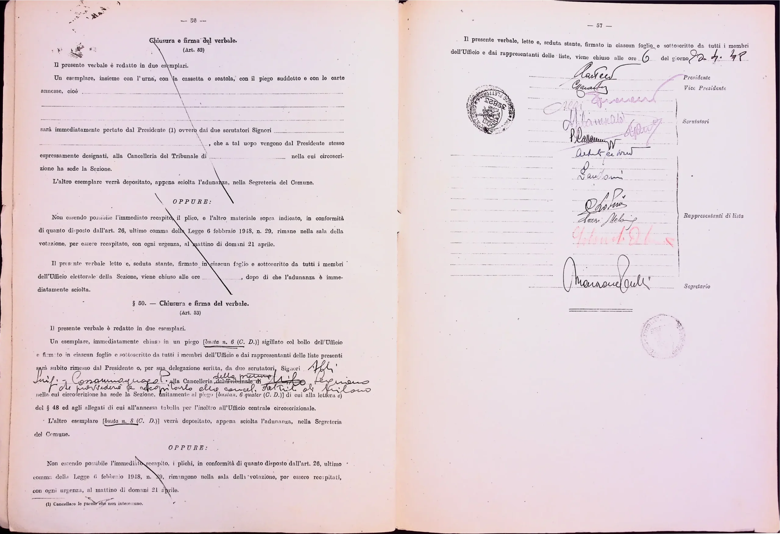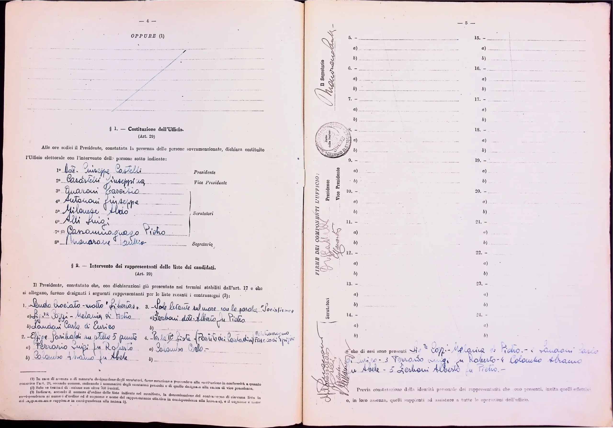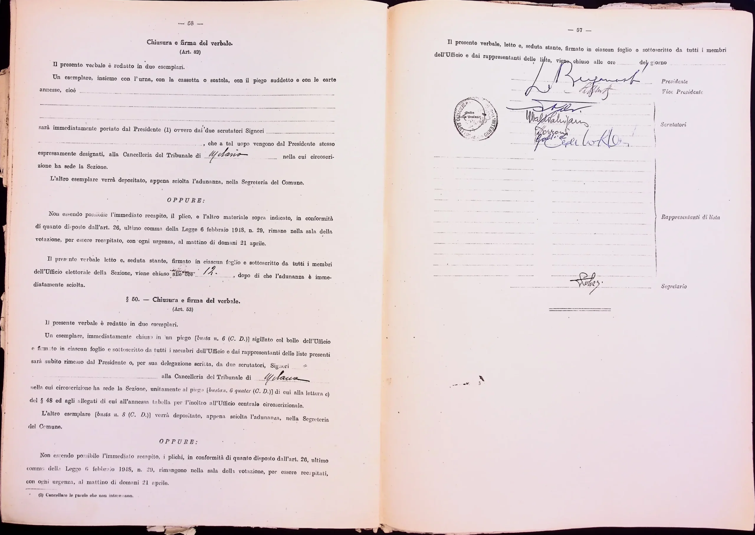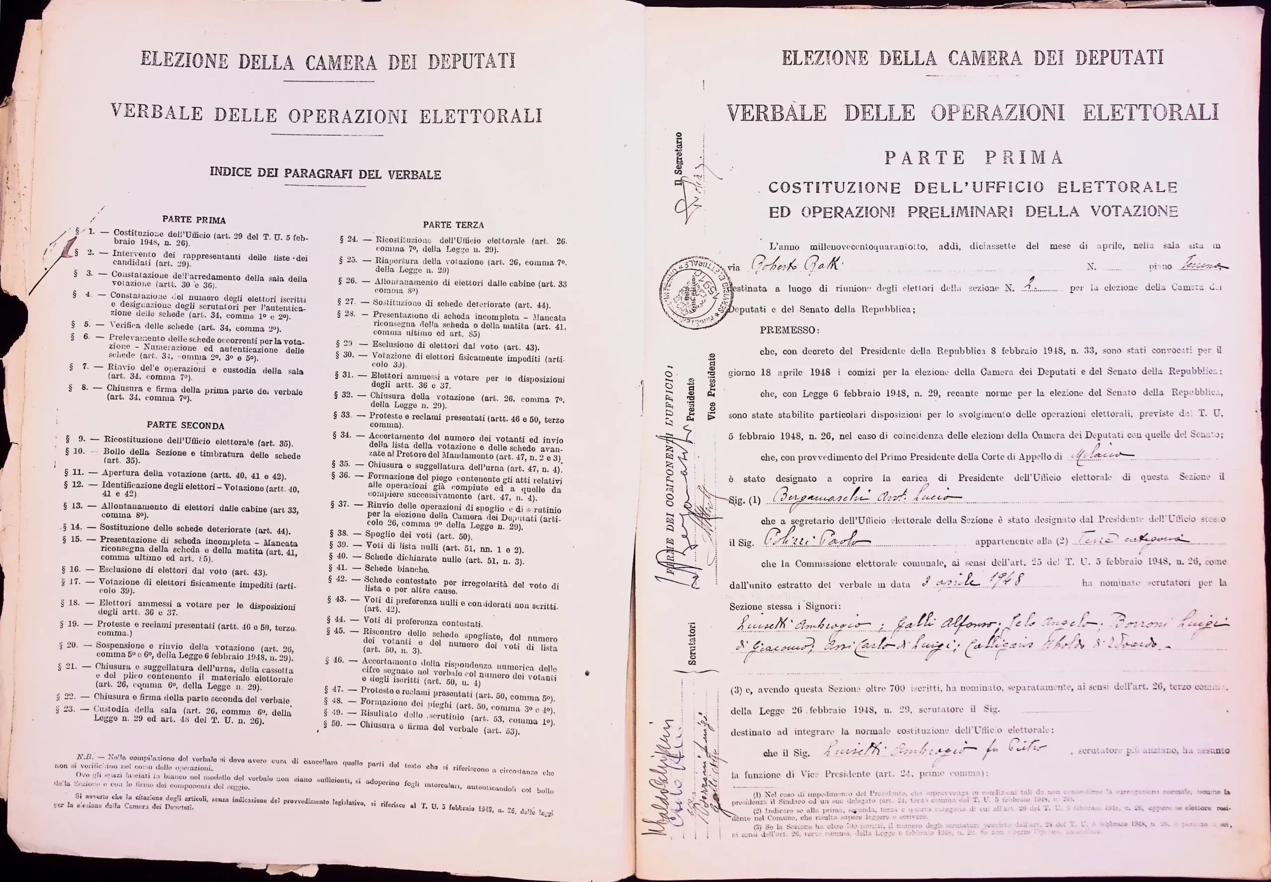 | Note dell'archivista | Esclusi dalla digitalizzazione i manifesti elettorali per eccedenza di formato. Le pagine non compilate dei verbali 1 e 2 (dalla n. 46 alla n. 53 per entrambi) non sono state digitalizzate. |