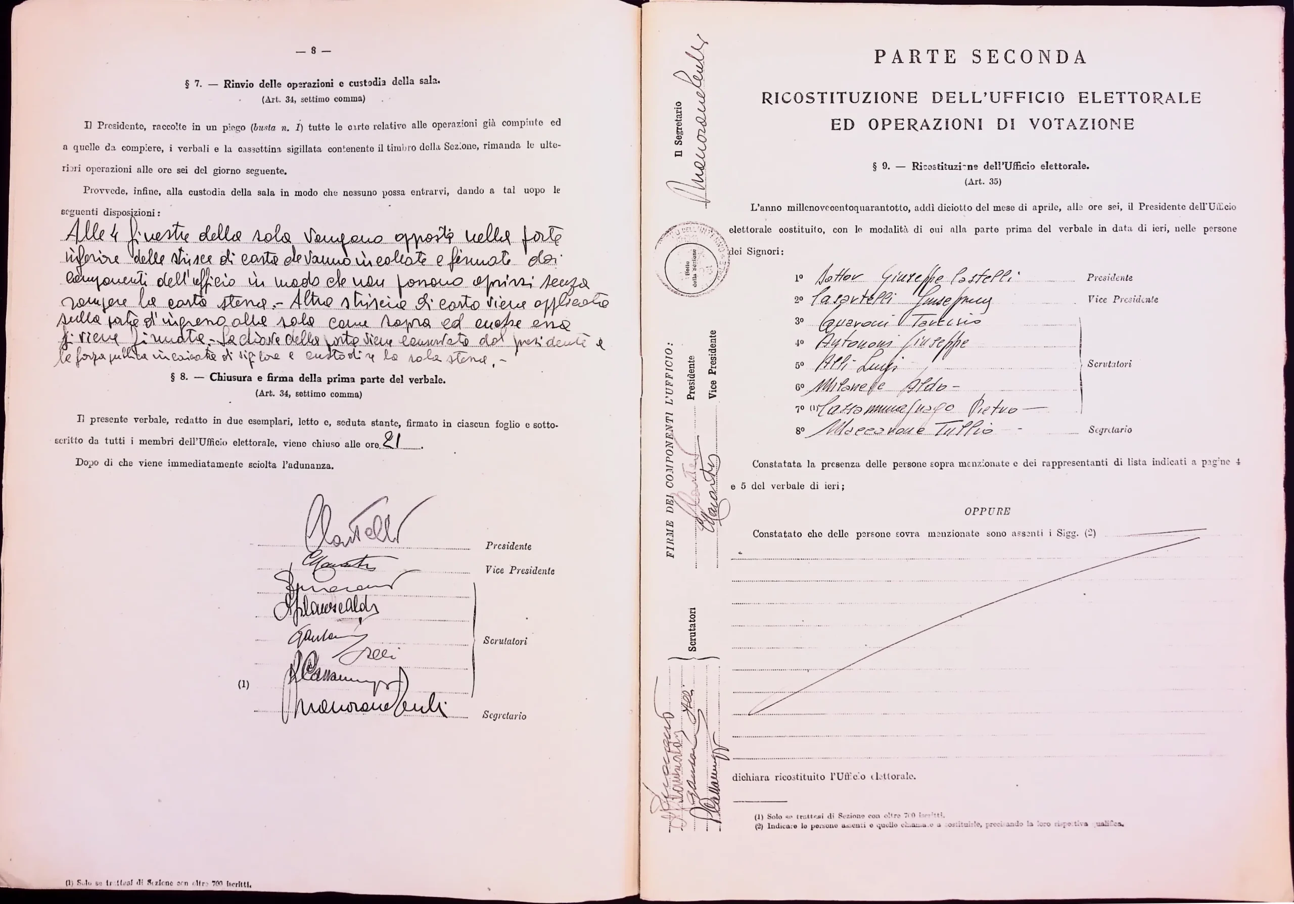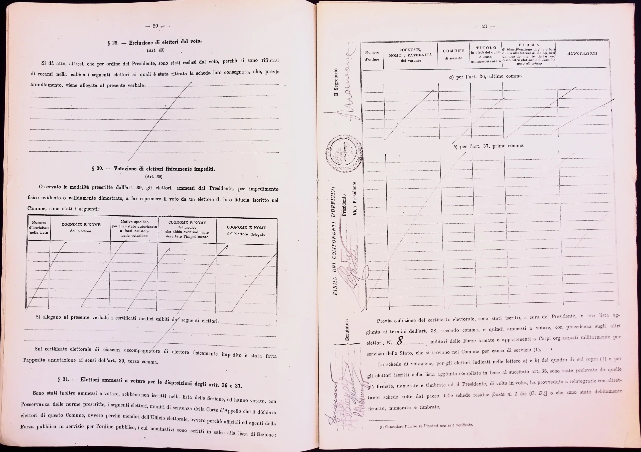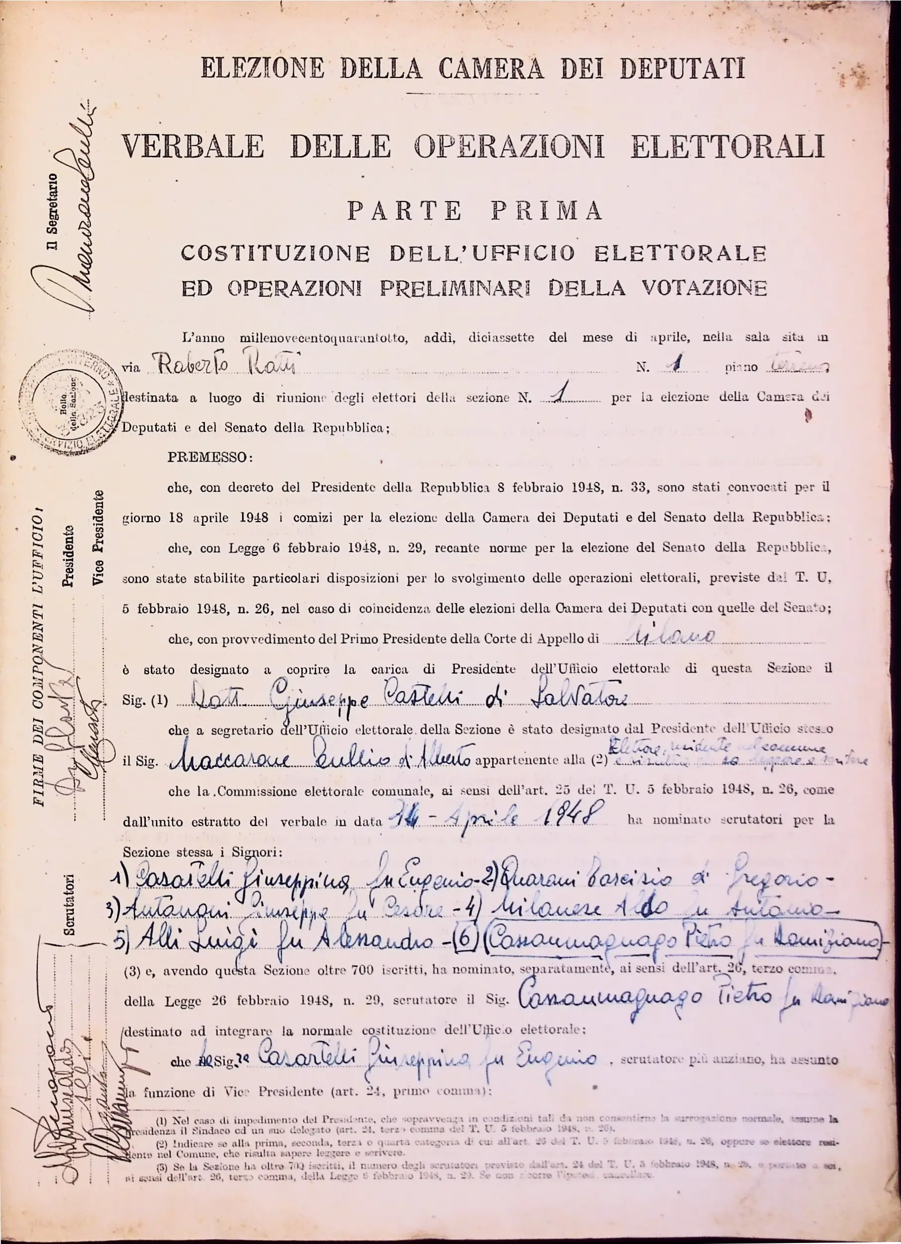 | Note dell'archivista | Esclusi dalla digitalizzazione i manifesti elettorali per eccedenza di formato. Le pagine non compilate dei verbali 1 e 2 (dalla n. 46 alla n. 53 per entrambi) non sono state digitalizzate. |