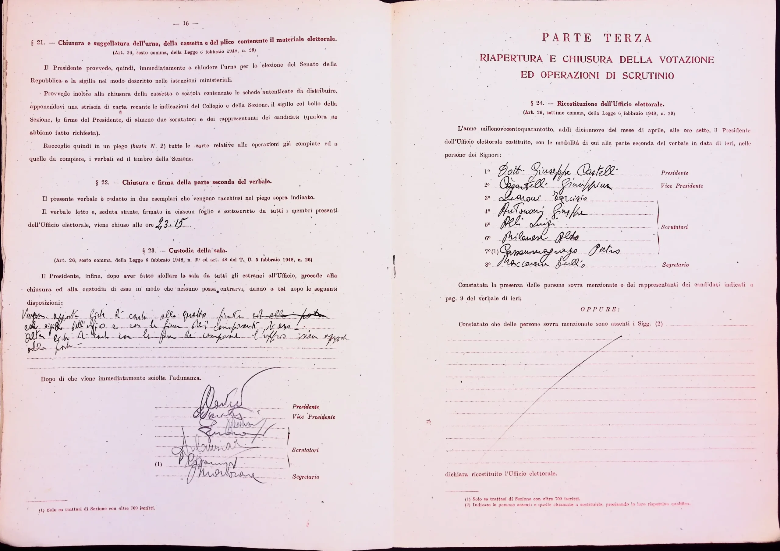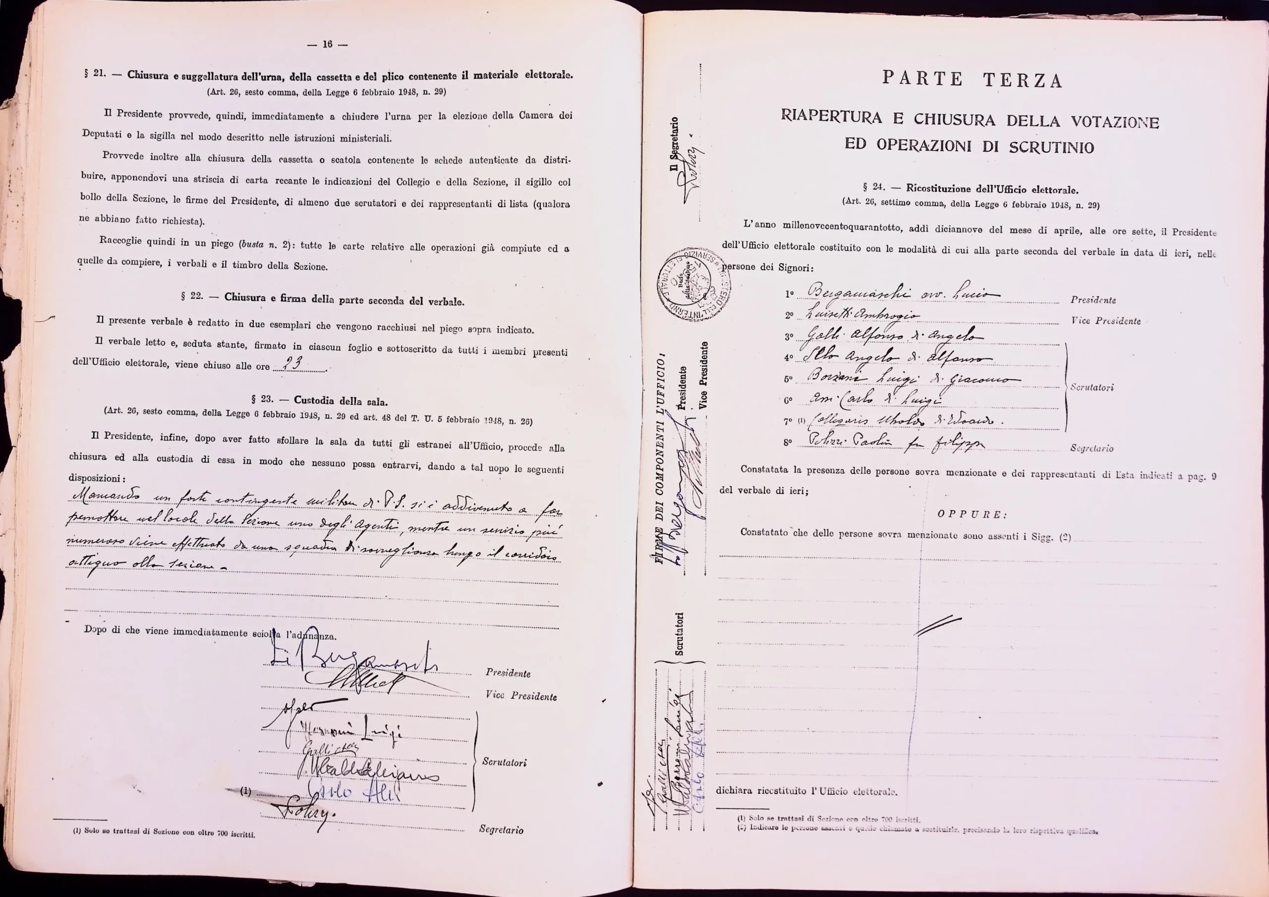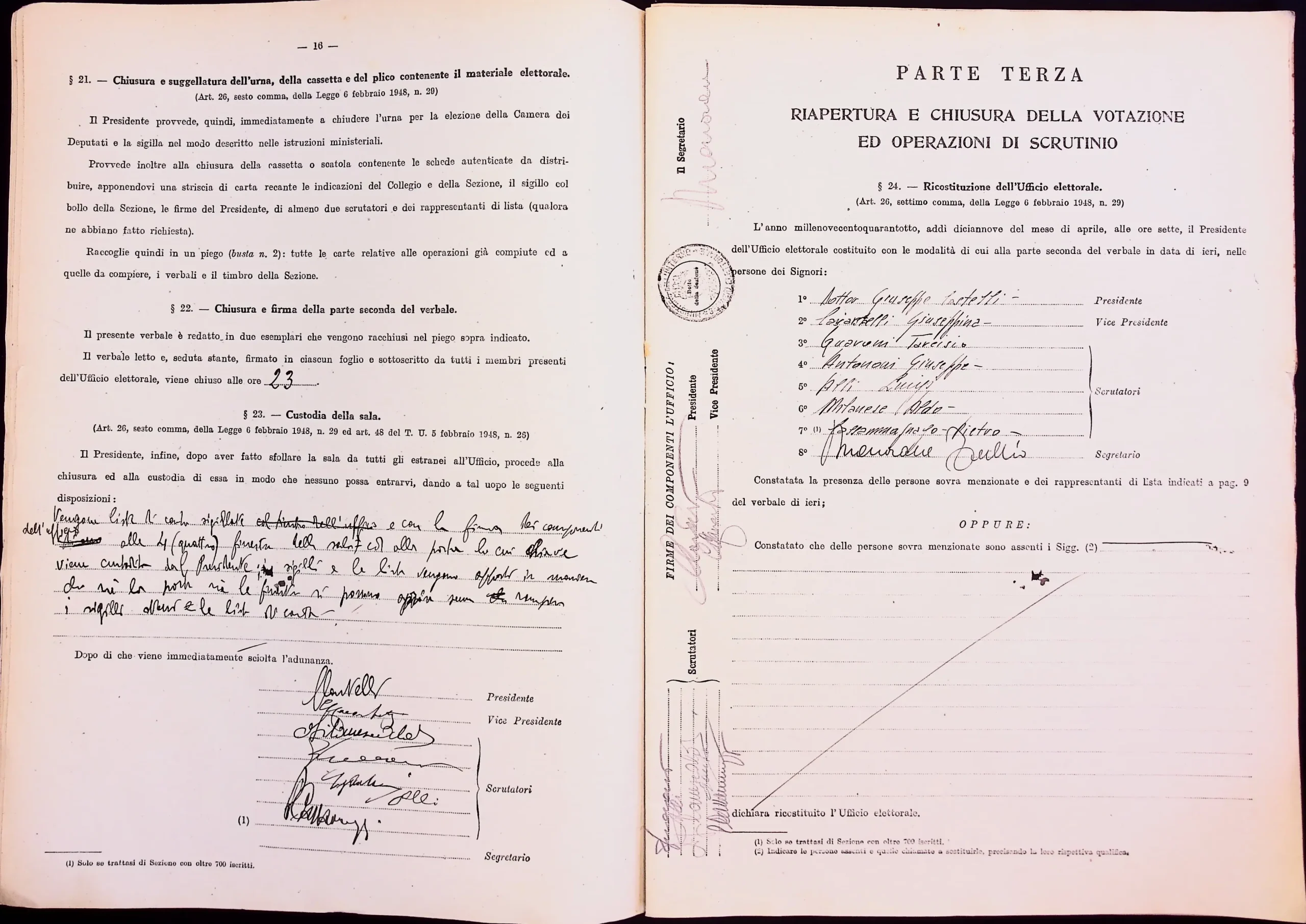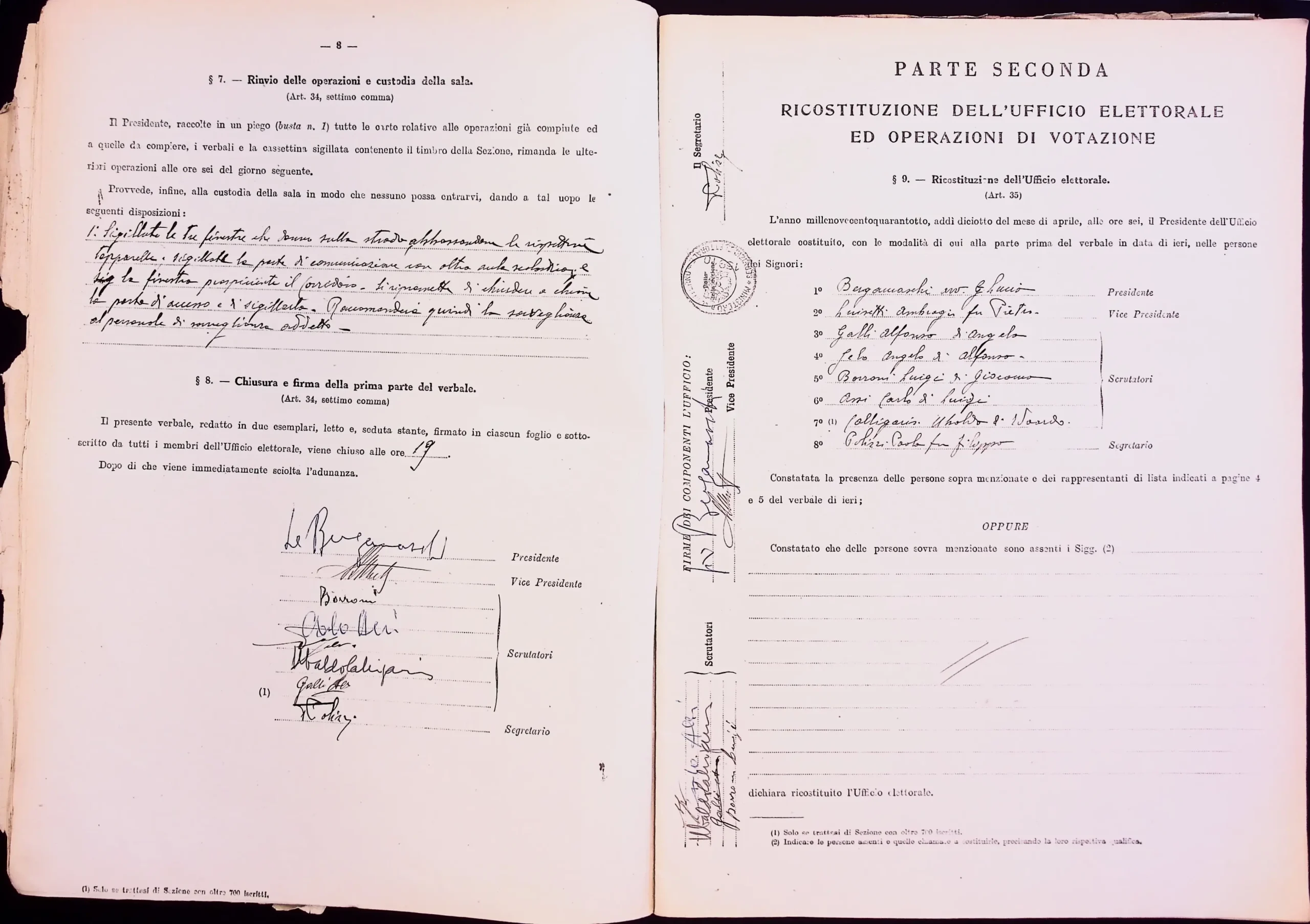 | Note dell'archivista | Esclusi dalla digitalizzazione i manifesti elettorali per eccedenza di formato. Le pagine non compilate dei verbali 1 e 2 (dalla n. 46 alla n. 53 per entrambi) non sono state digitalizzate. |