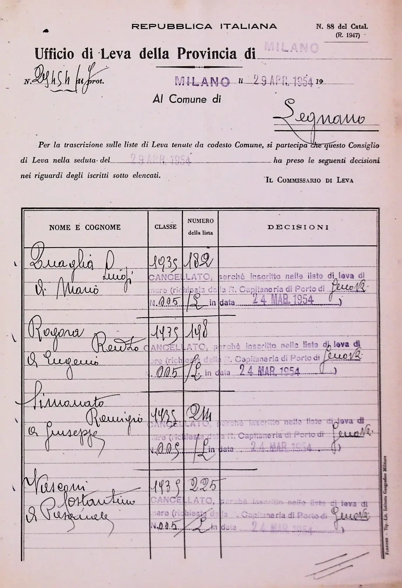 | Classificazione | VIII.1 - Liste di terra e di mare |