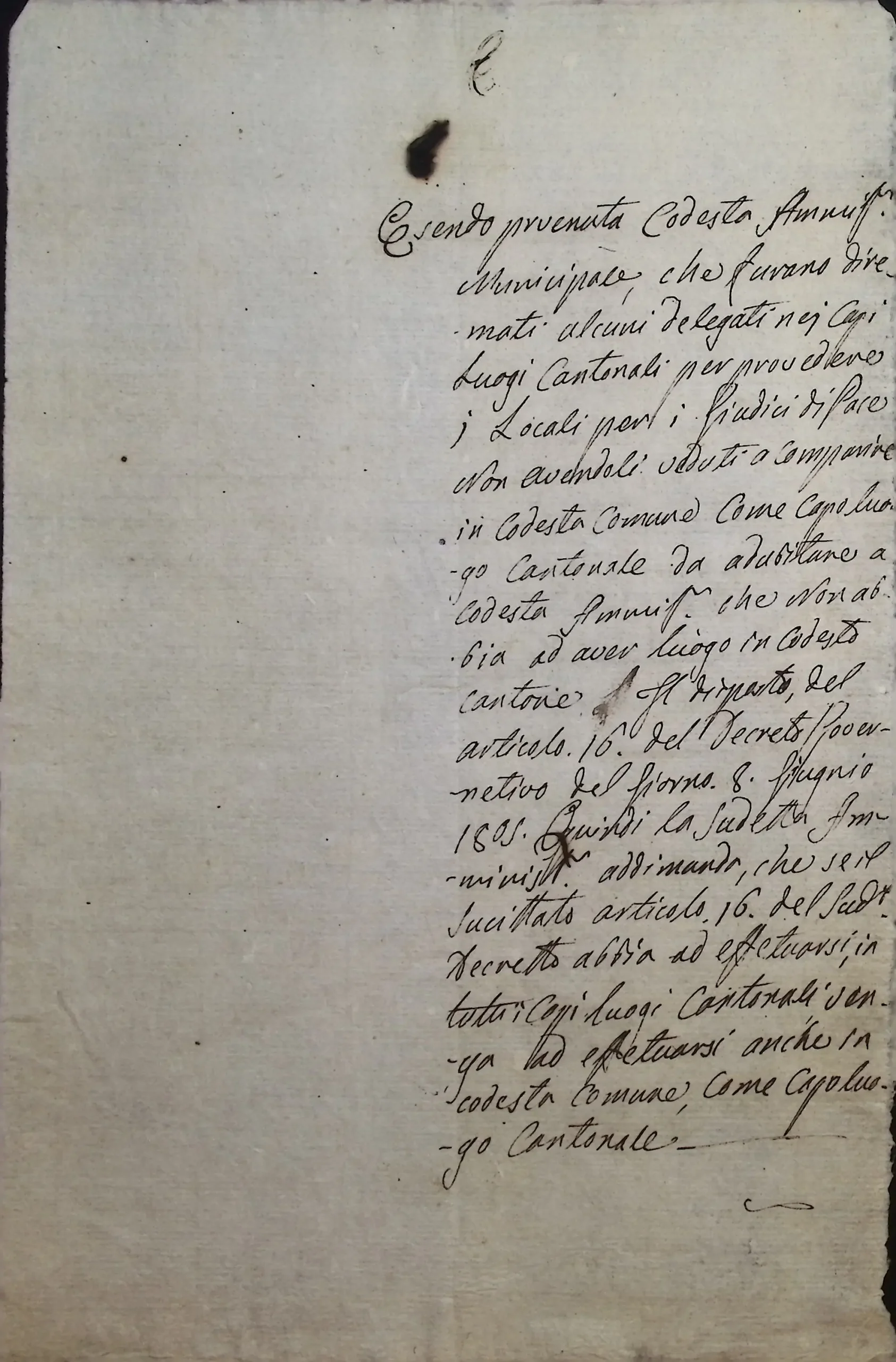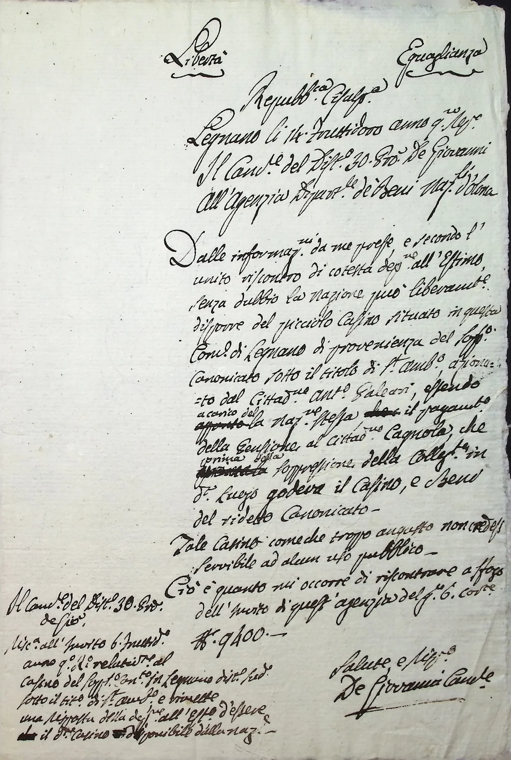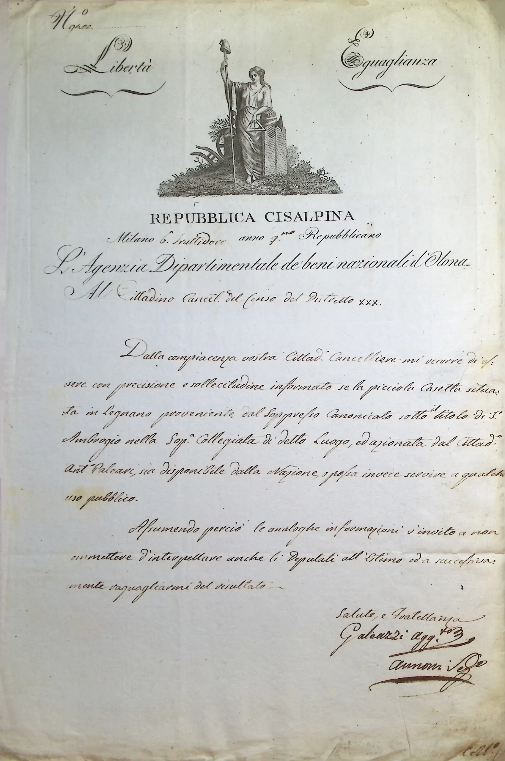 Informazioni riservate sulla possibilità di adibire ad usi pubblici il soppresso oratorio di S. Ambrogio di Legnano