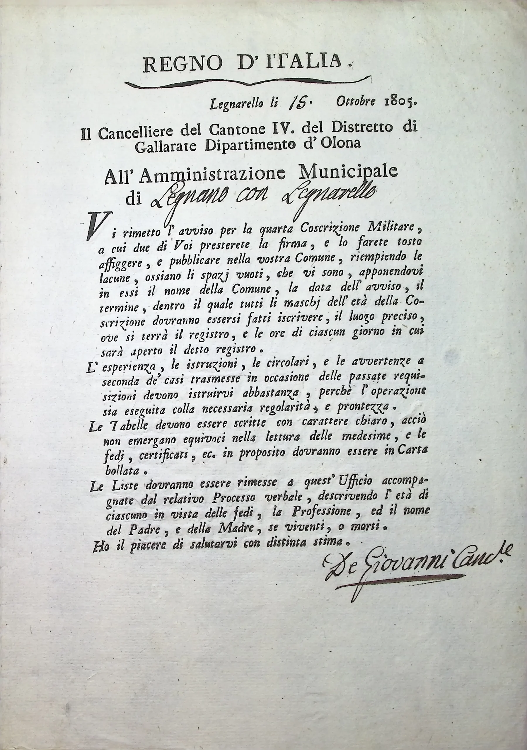 | Estr. Cronologici | 1805 |
