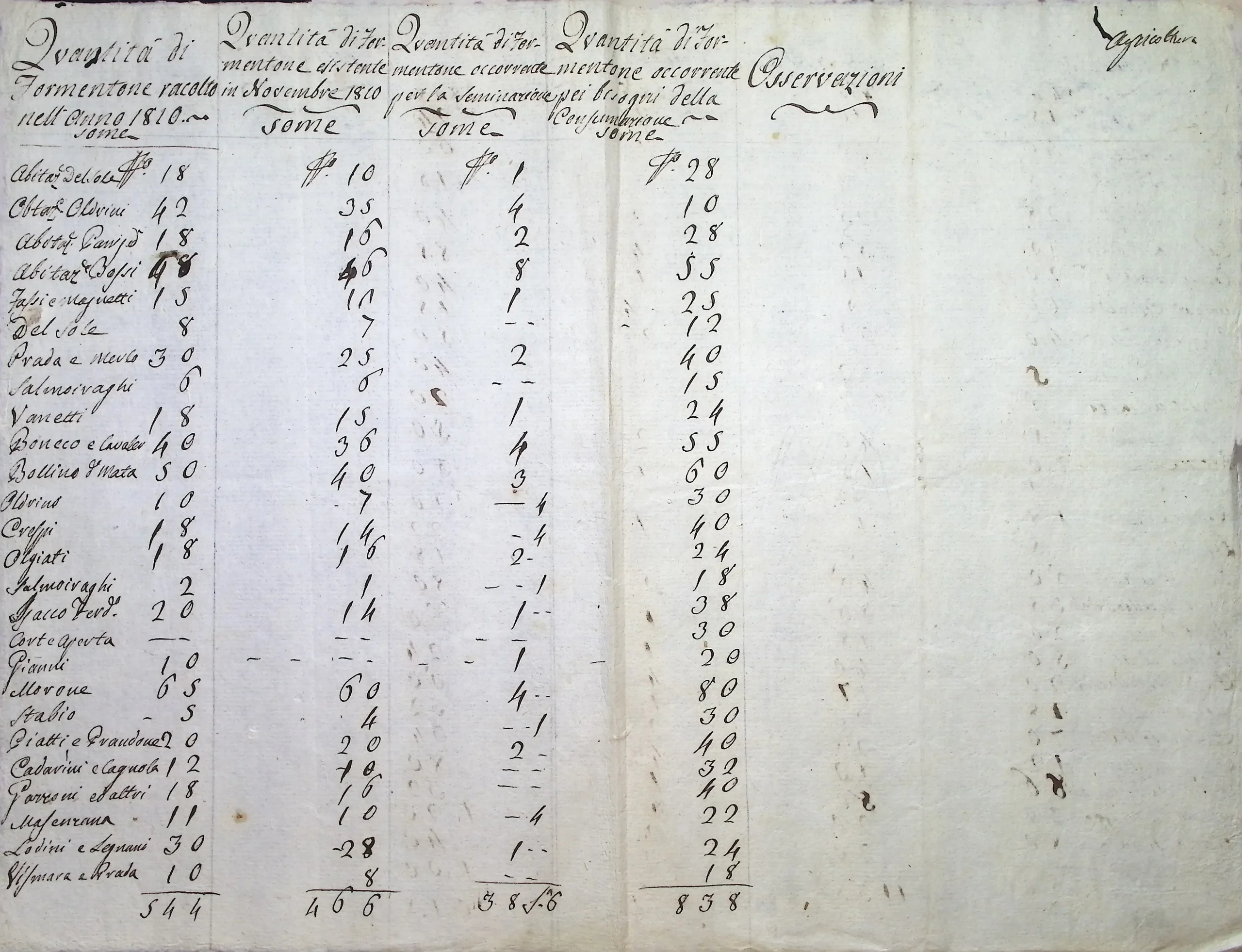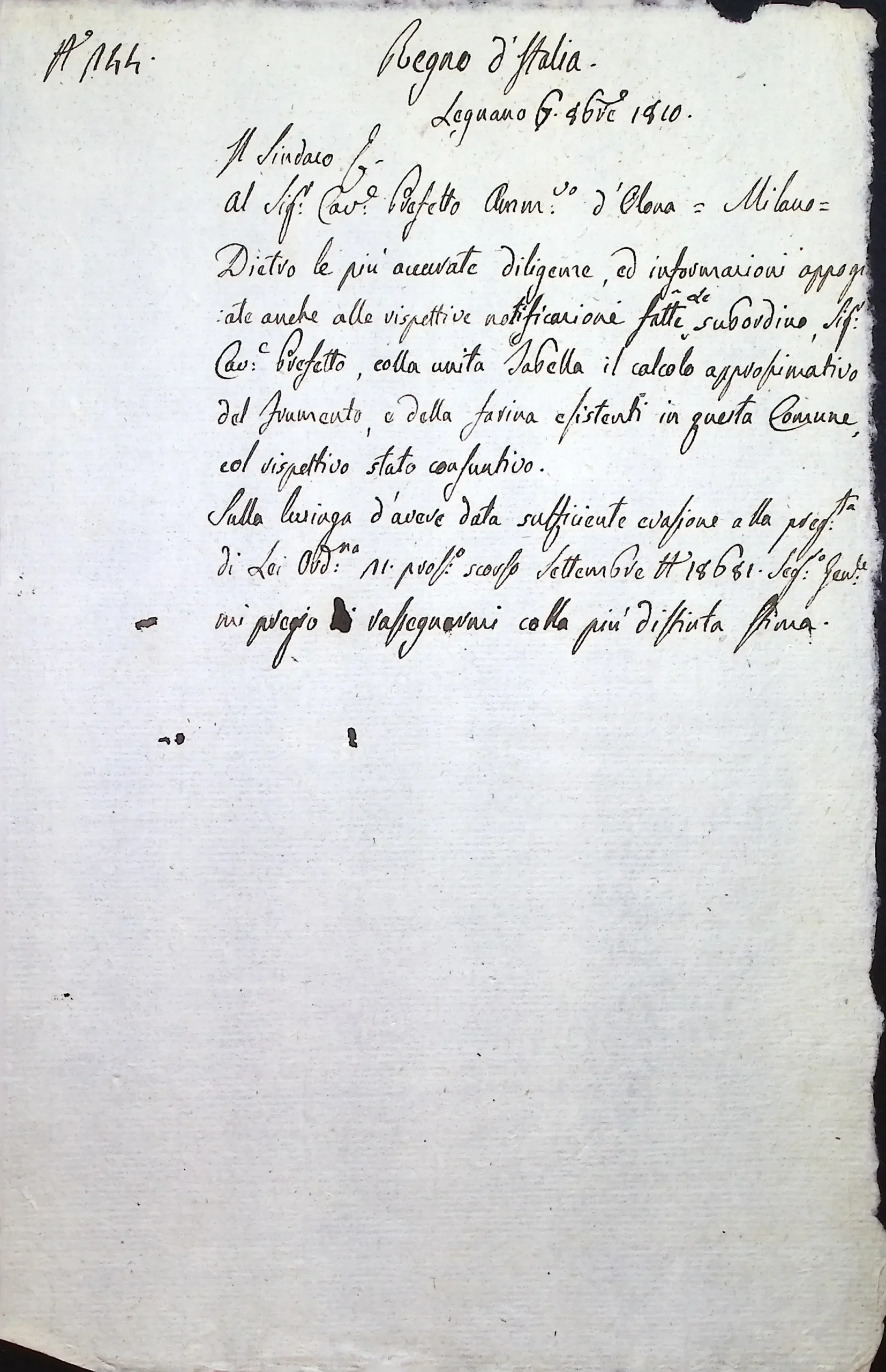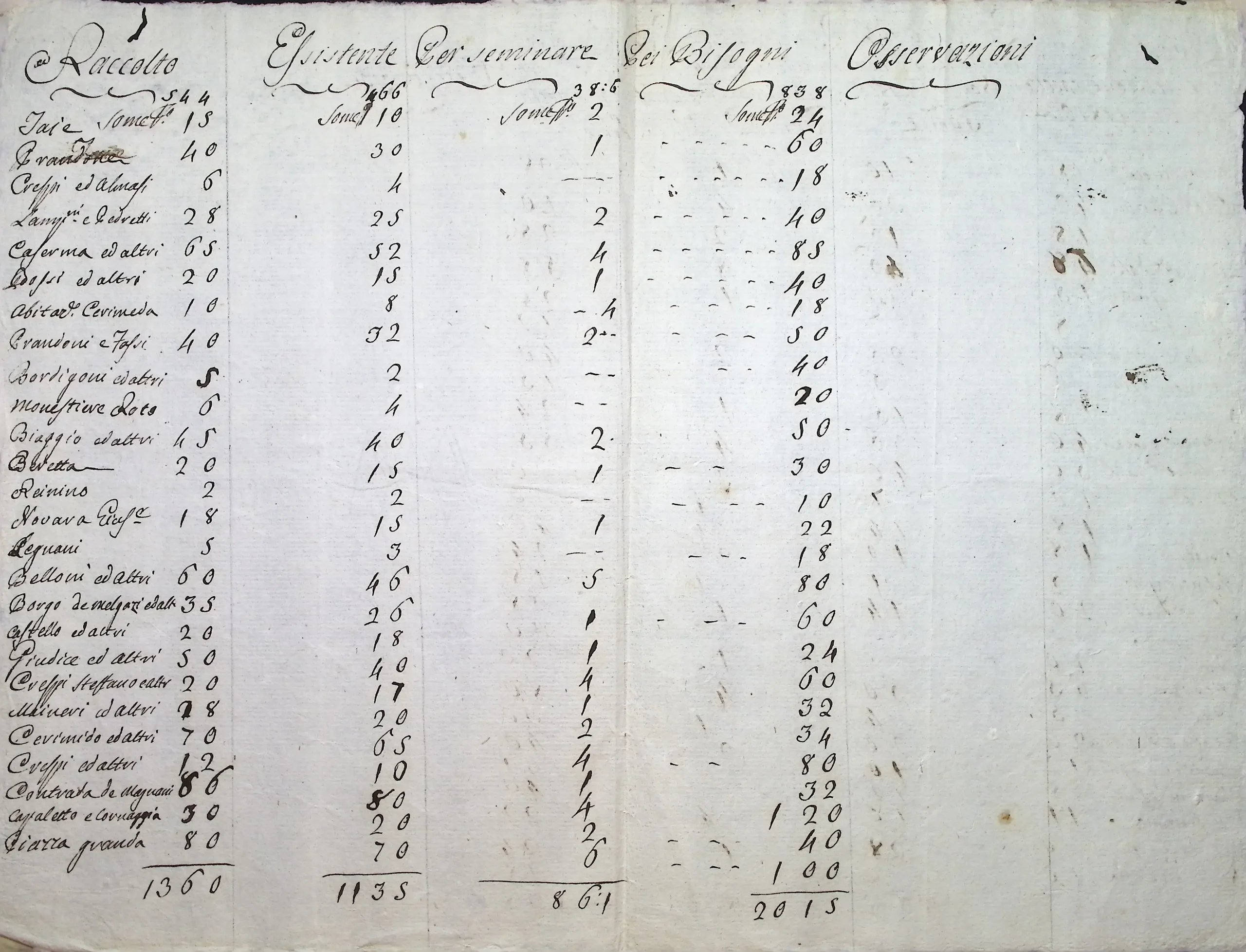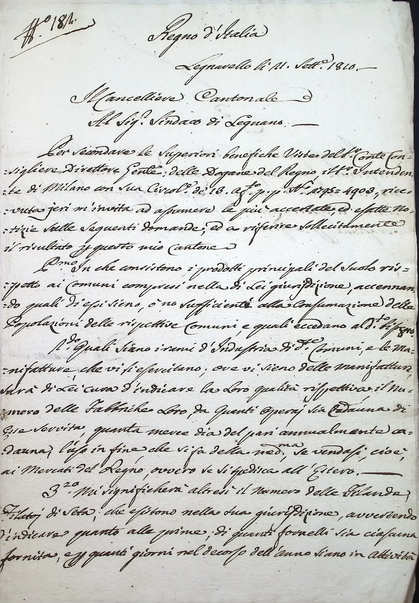 Notizie richieste dal Cancelliere Censuario Cantonale sui prodotti agricoli in territorio di Legnano