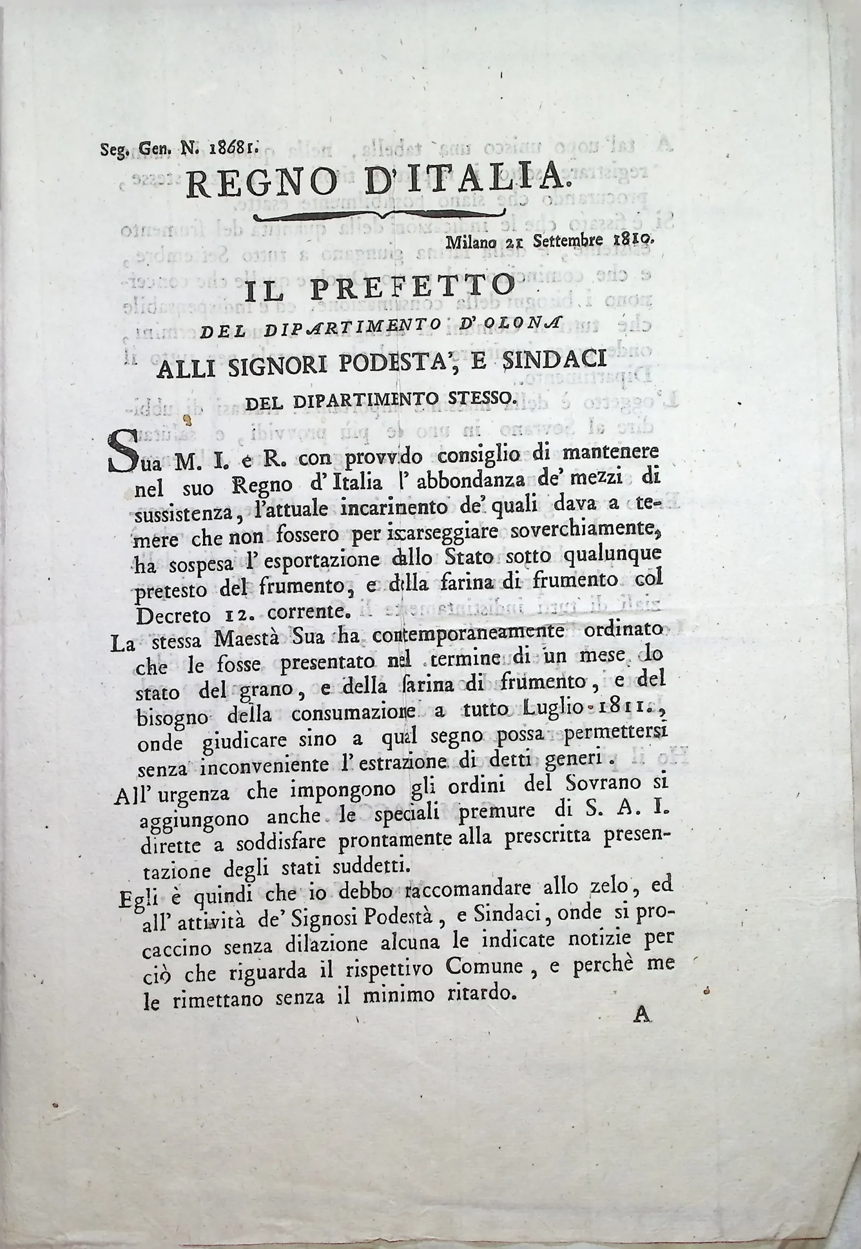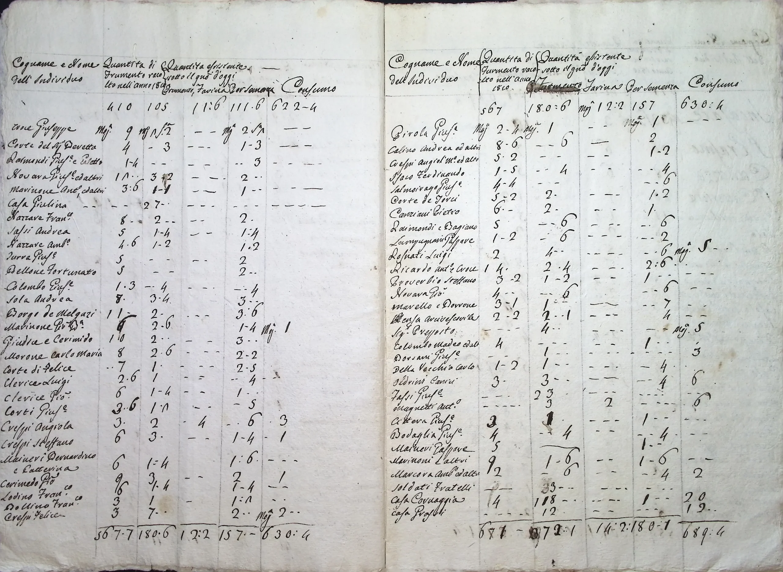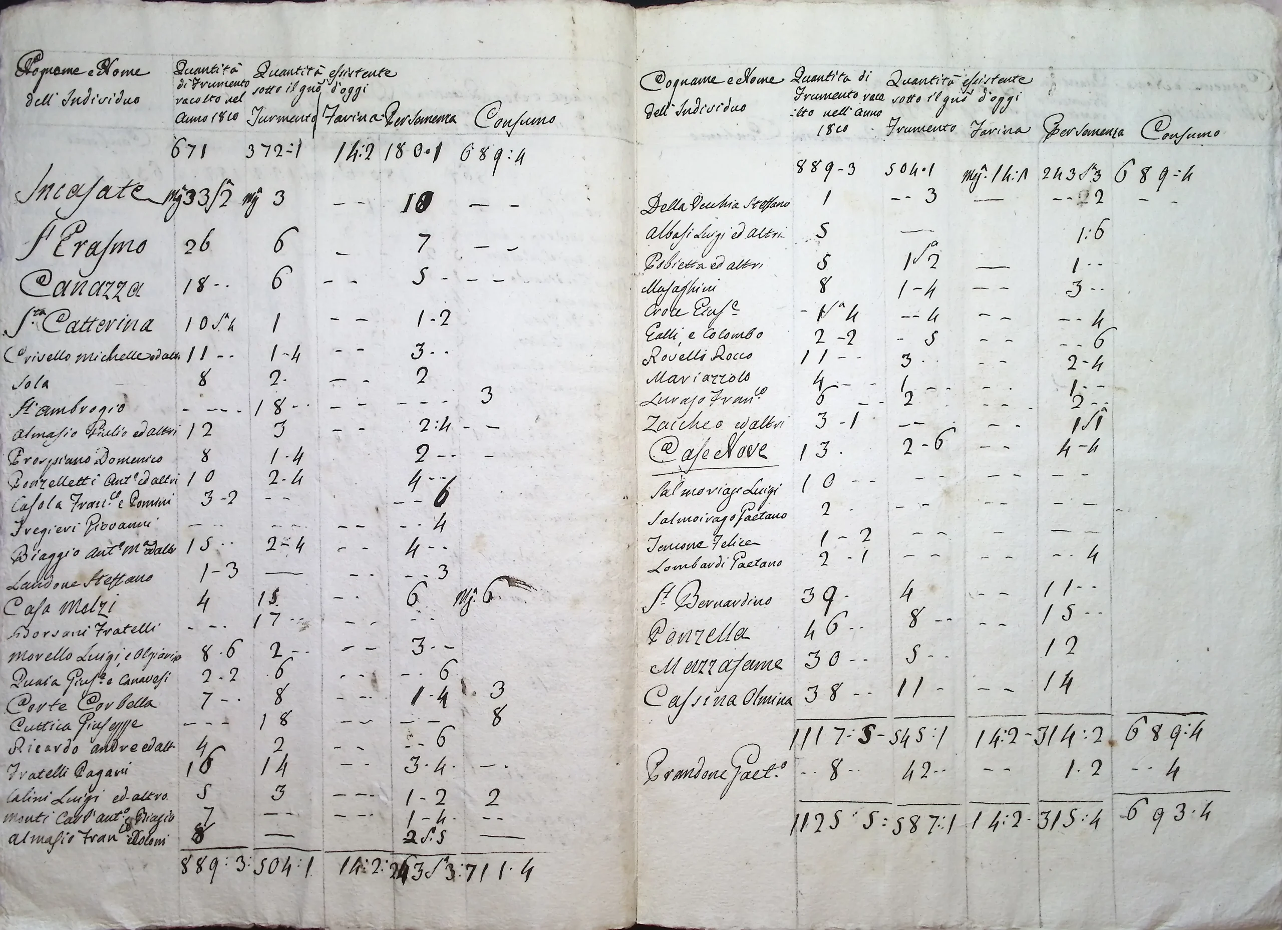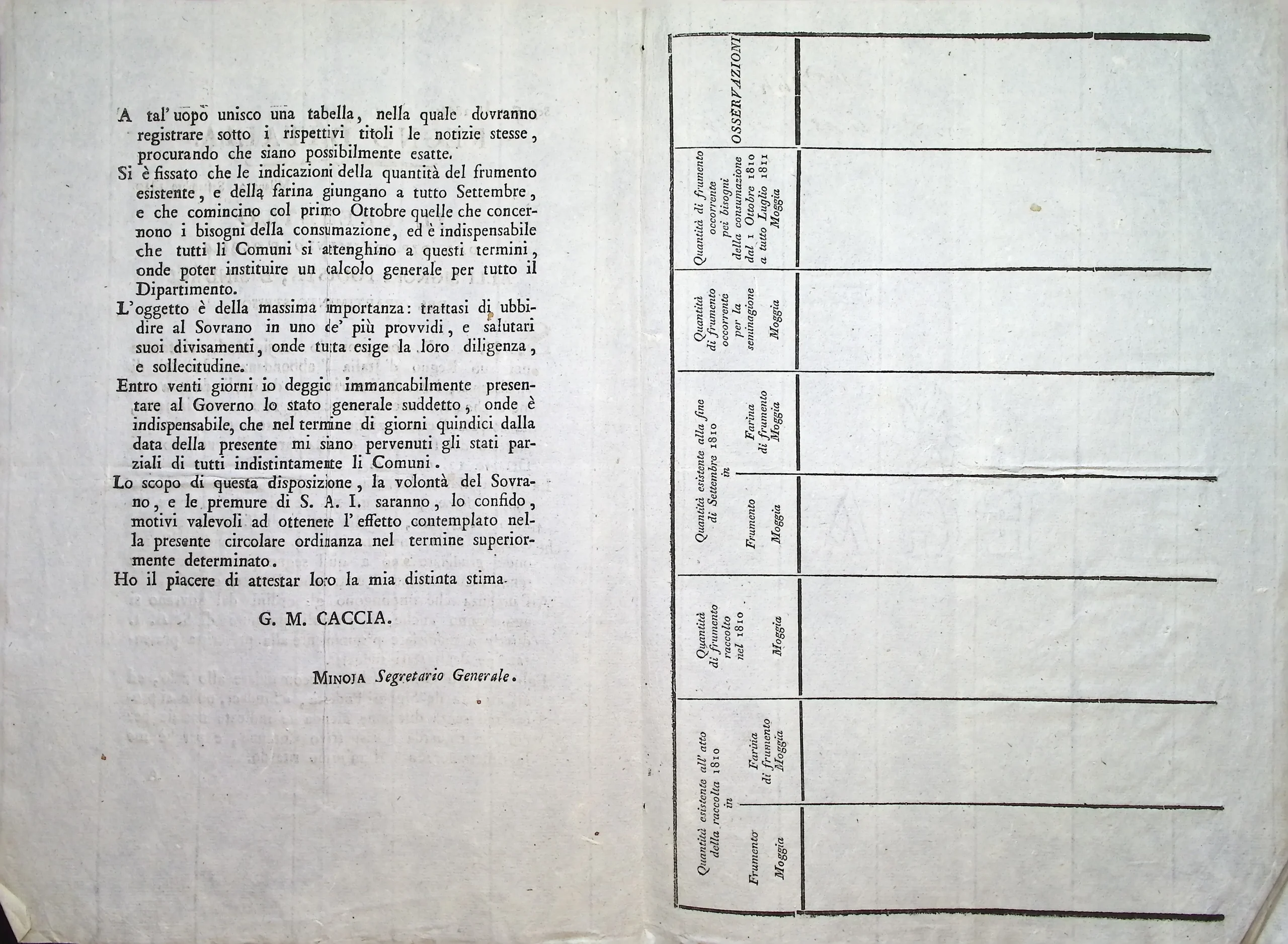 Notizie richieste dal Cancelliere Censuario Cantonale sui prodotti agricoli in territorio di Legnano