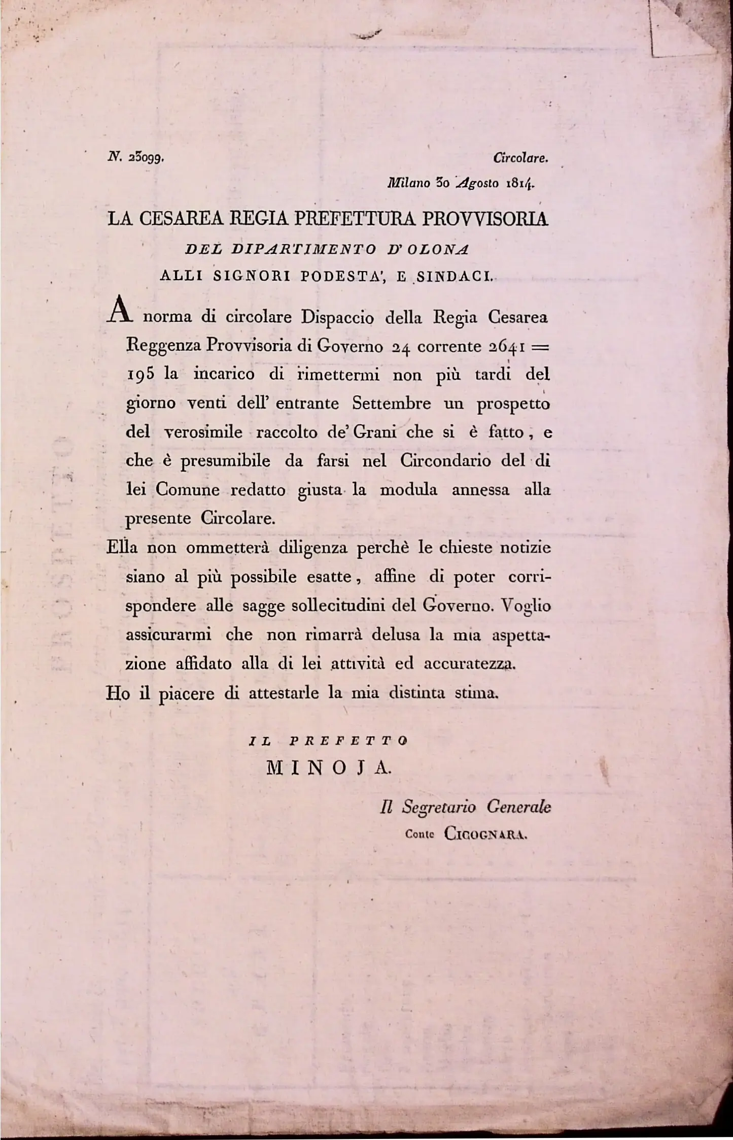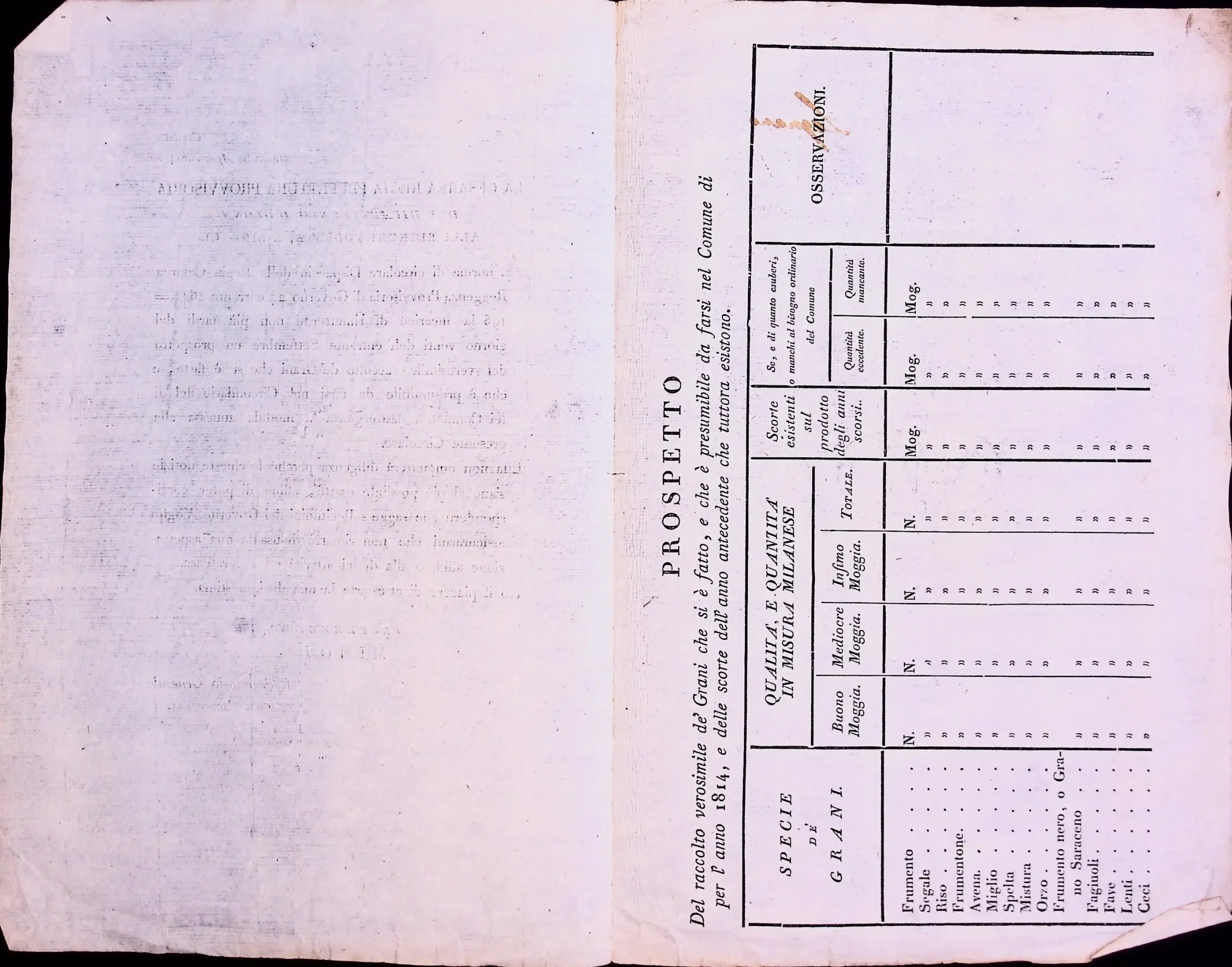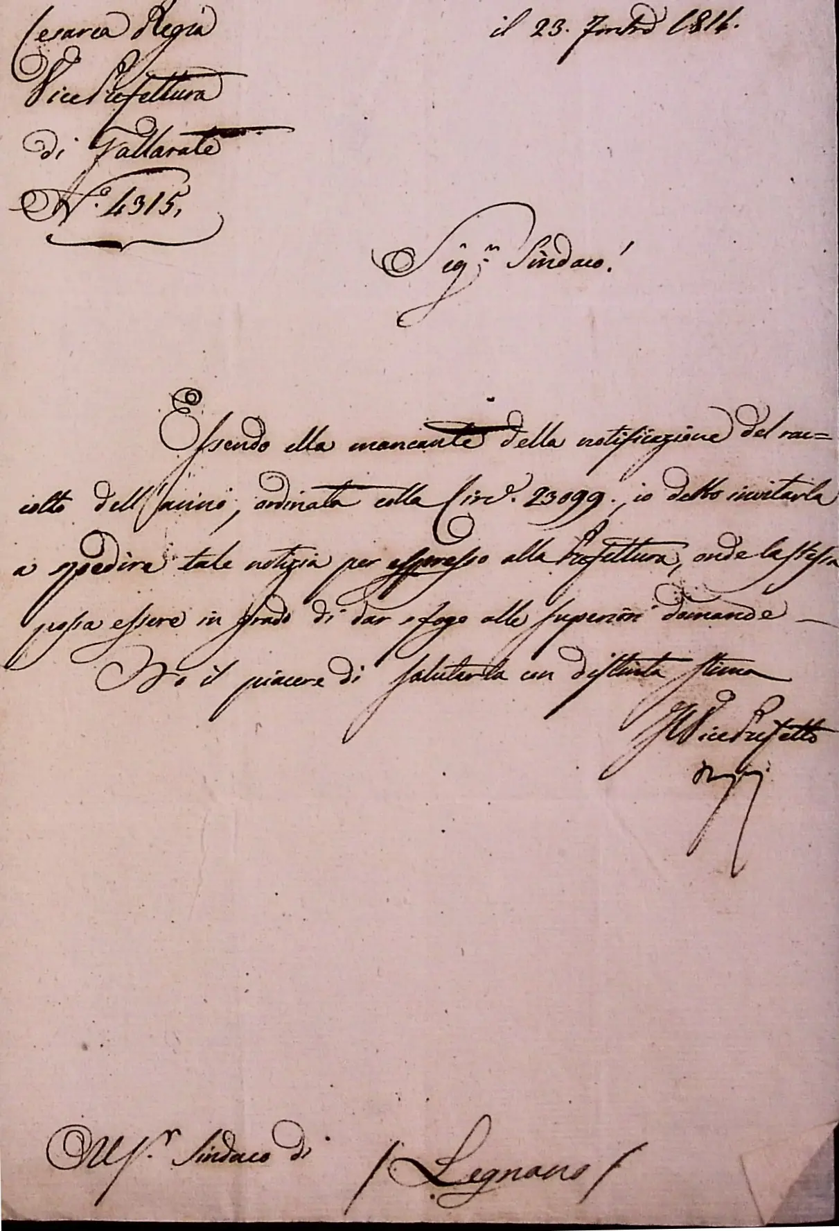 Informazioni sul raccolto del grano e del fieno in territorio di Legnano