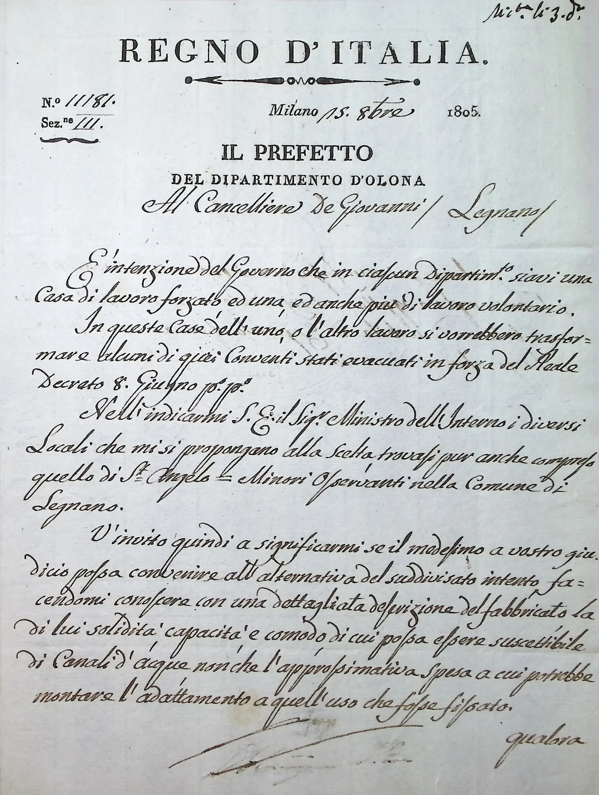 Informazioni sull’adattabilità a casa di lavoro forzato o volontario del soppresso convento dei Minori Osservanti di S. Angelo