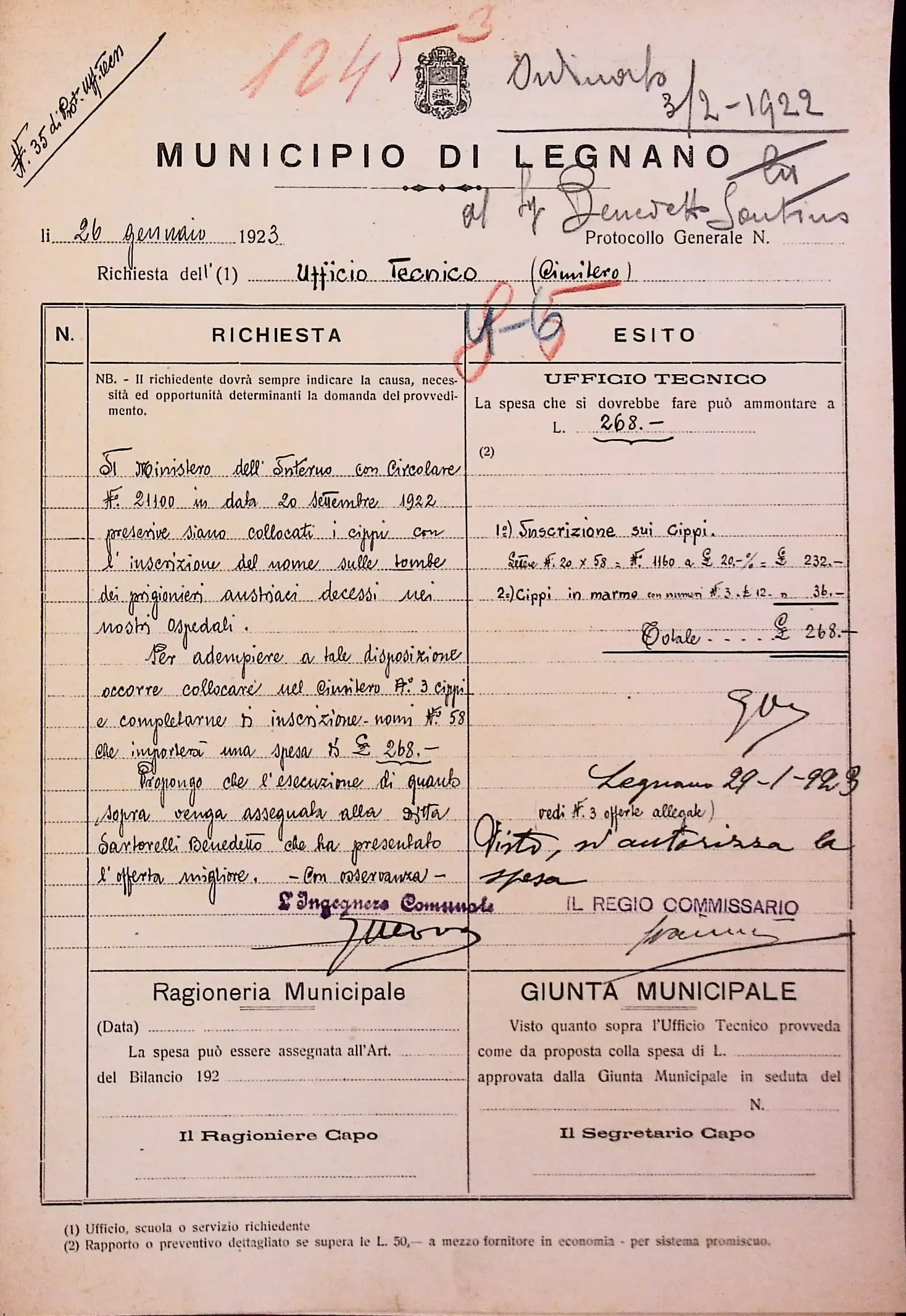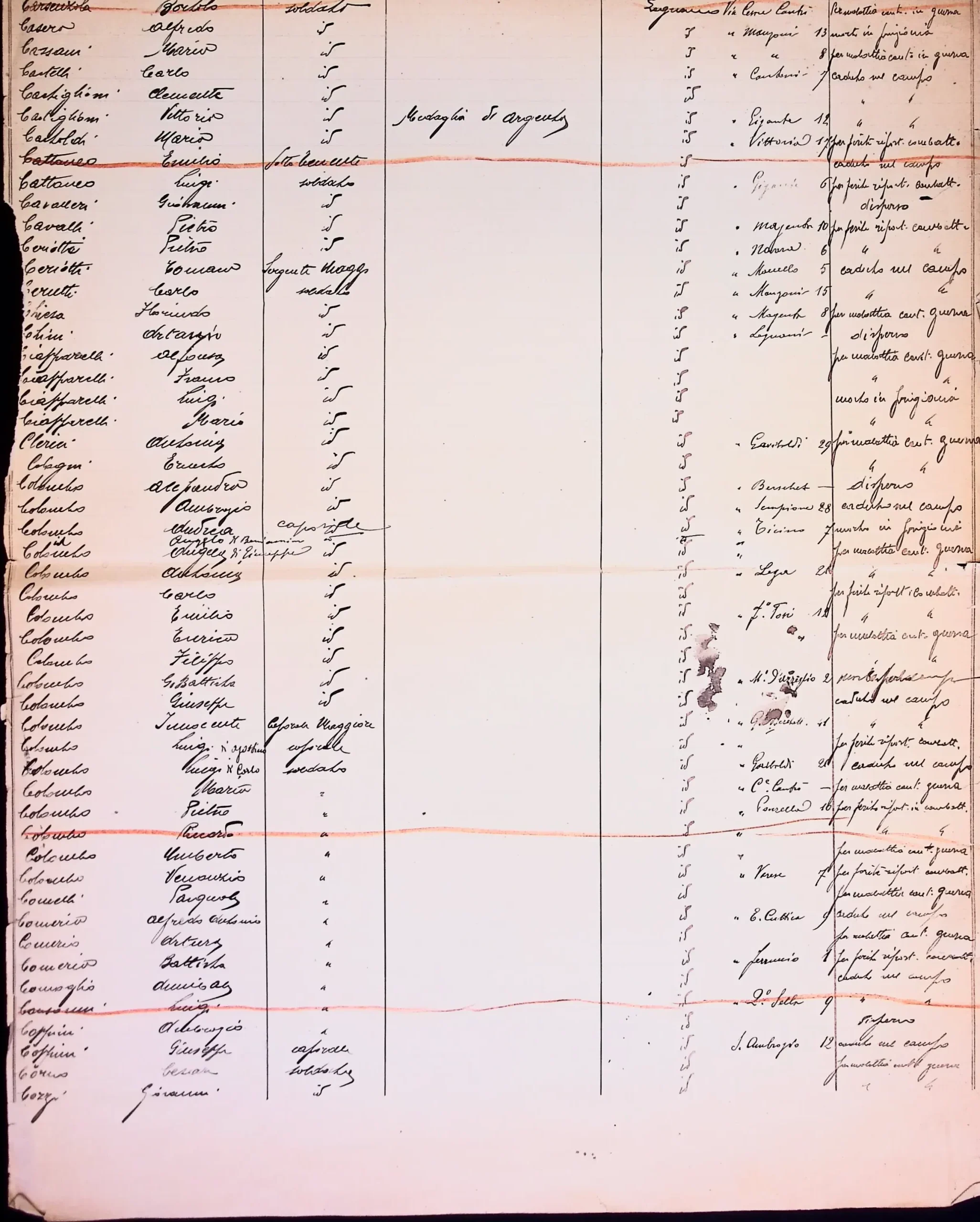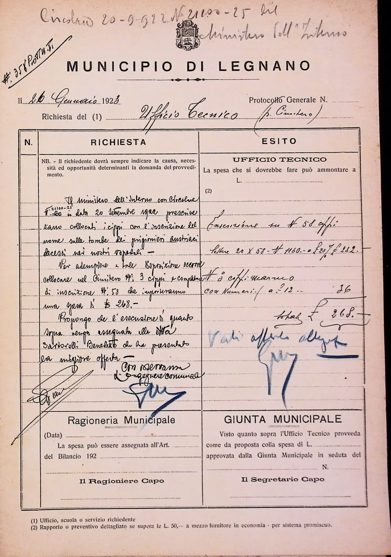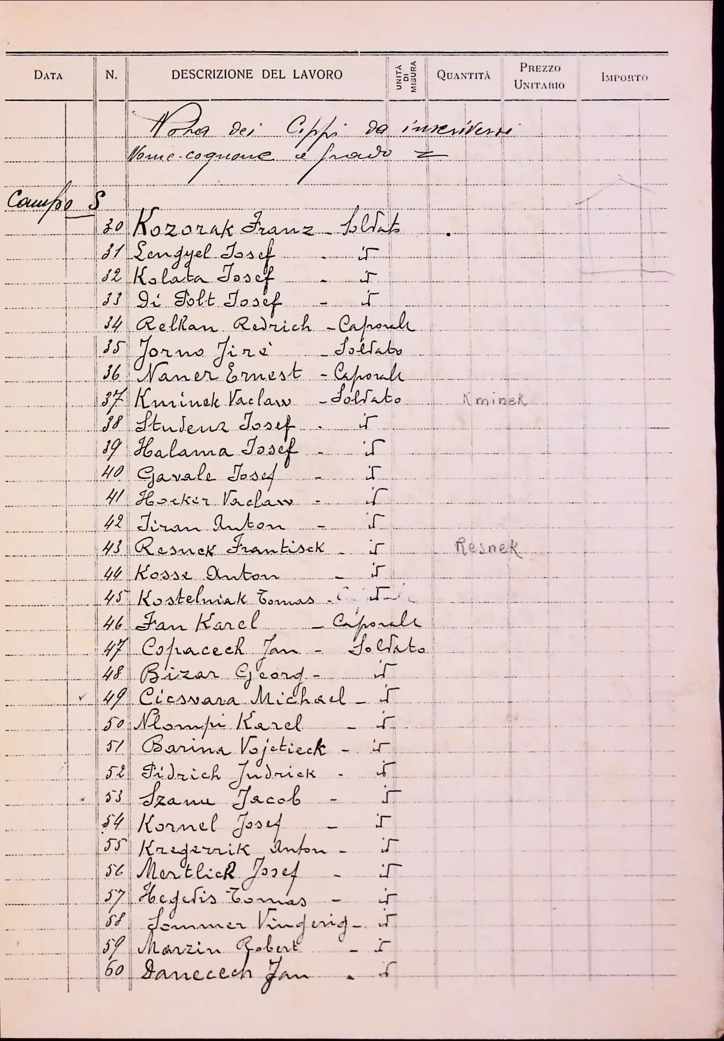 Iscrizione sui cippi del cimitero dei nomi dei militari austriaci morti nel locale ospedale