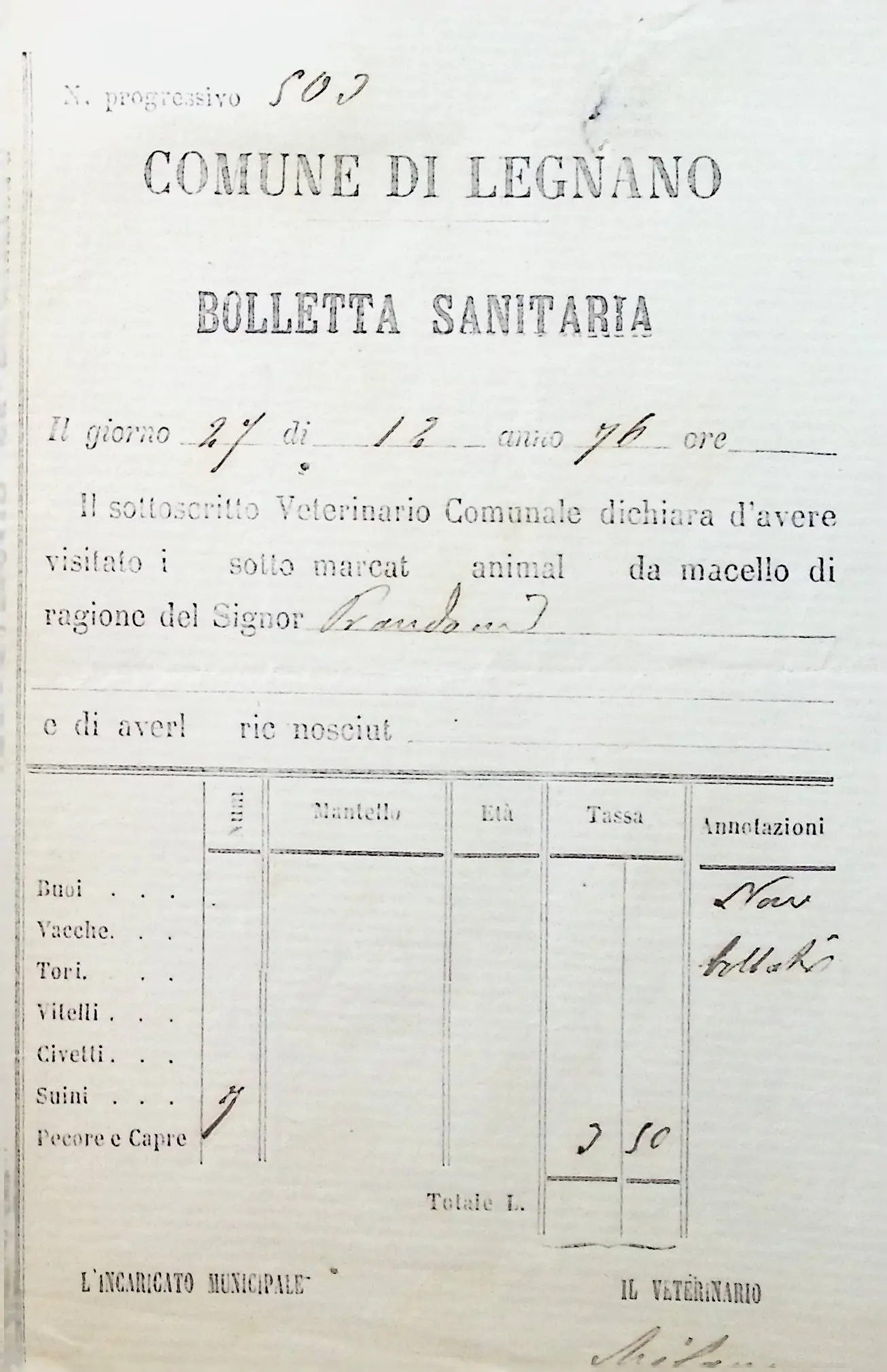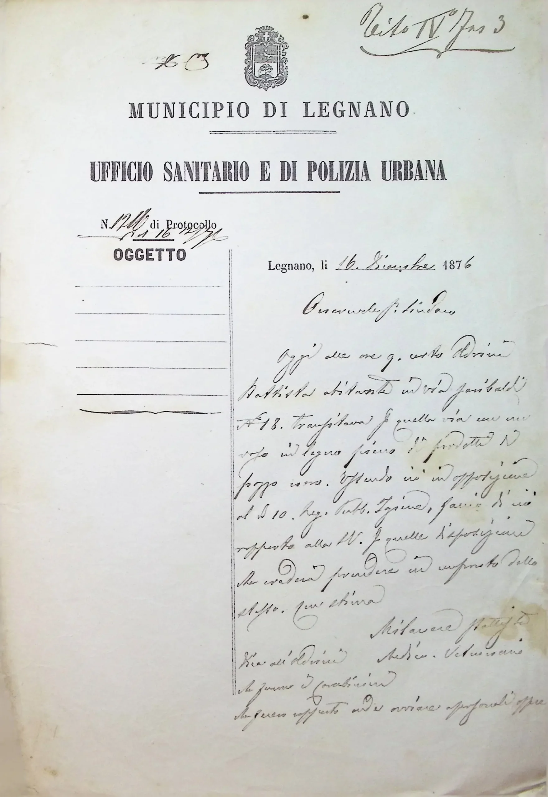 Ispezioni del veterinario comunale per contravvenzioni al Regolamento d’igiene pubblica