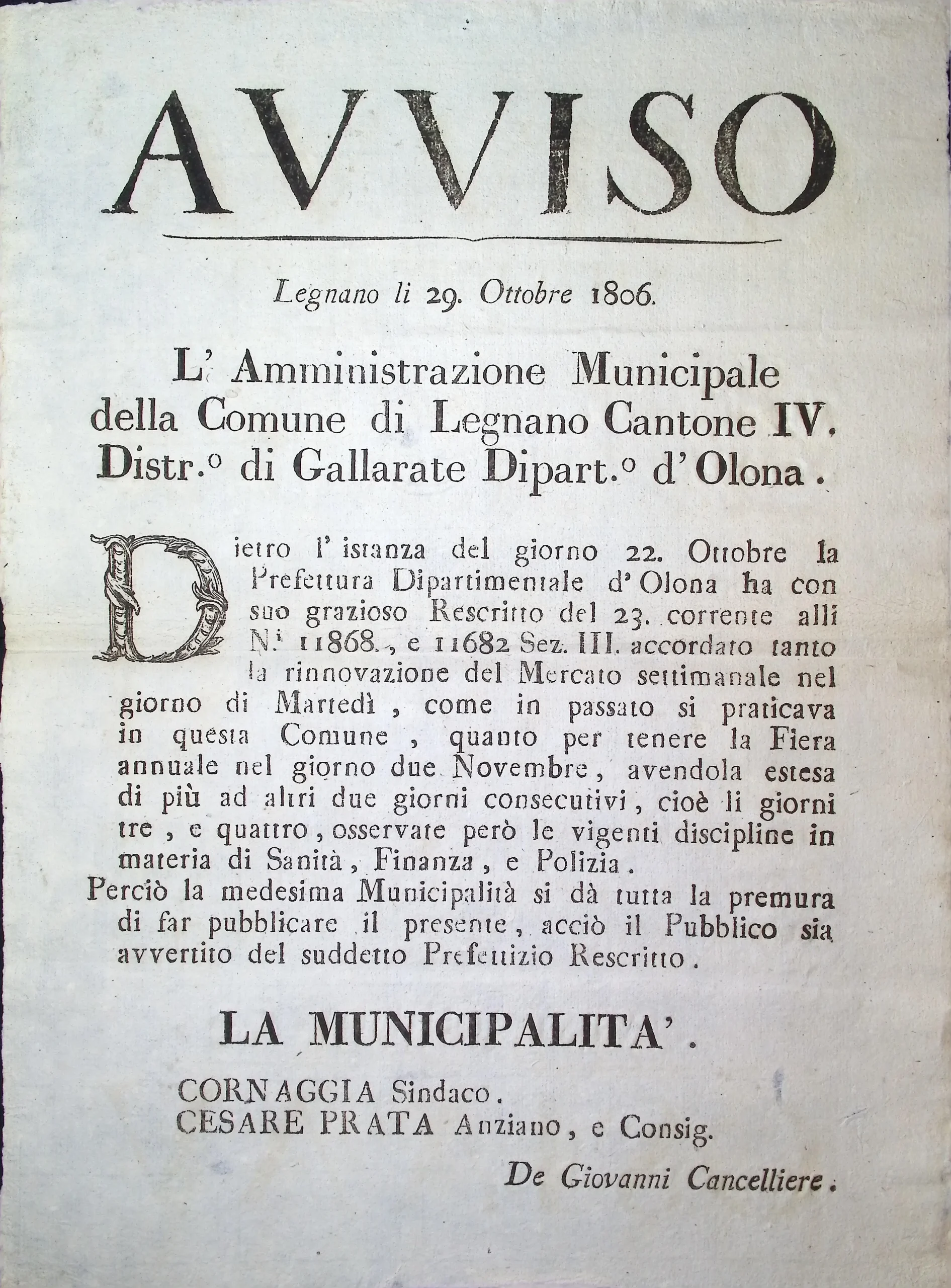 Istanza alla Prefettura per la ripresa del mercato settimanale e della Fiera dei Morti, stante la cessazione di malattie epidemiche nei bovini, e relativa concessione