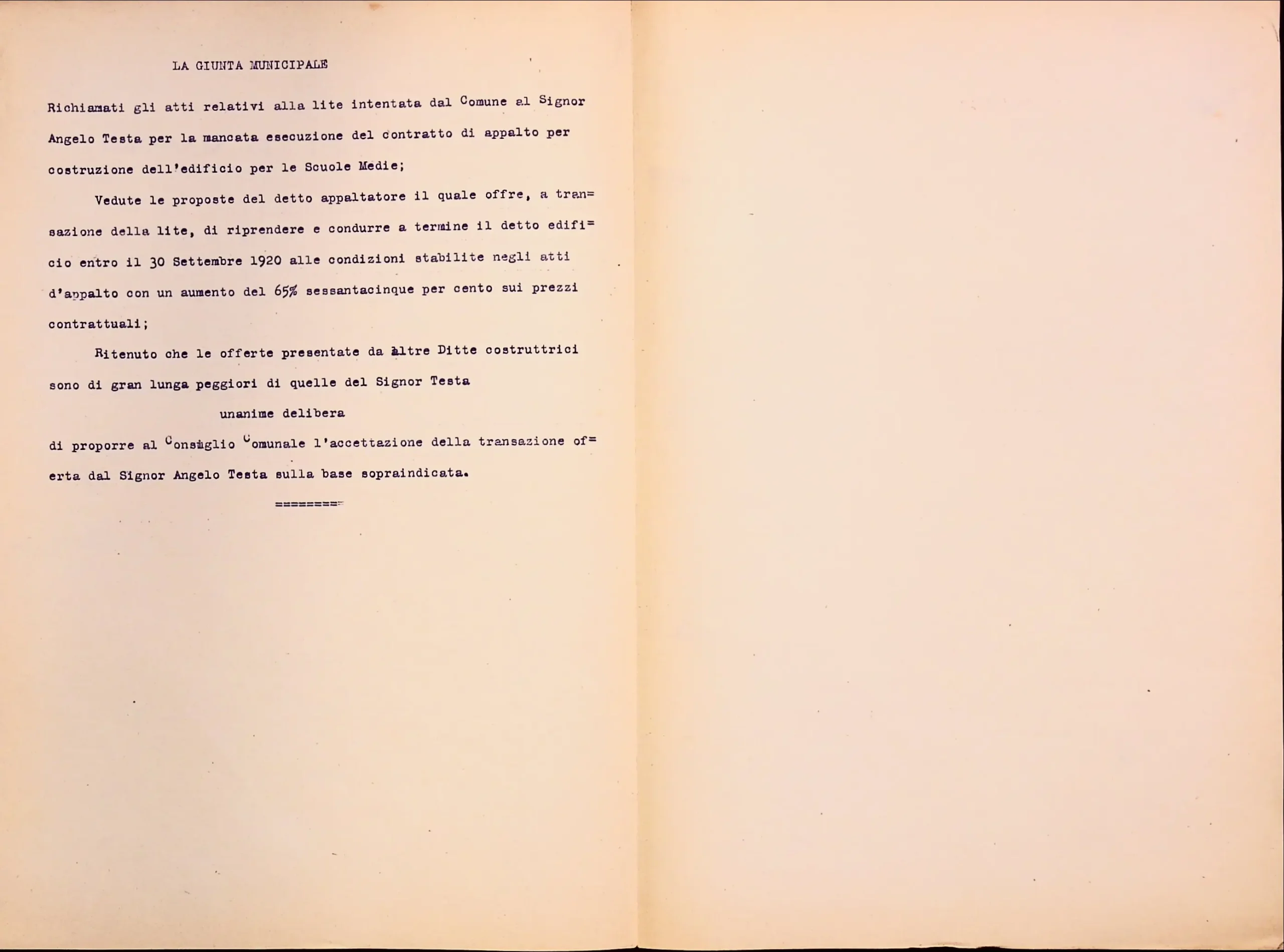 Lite Comune / Testa Angelo per la costruzione di edificio scolastico – Transazione