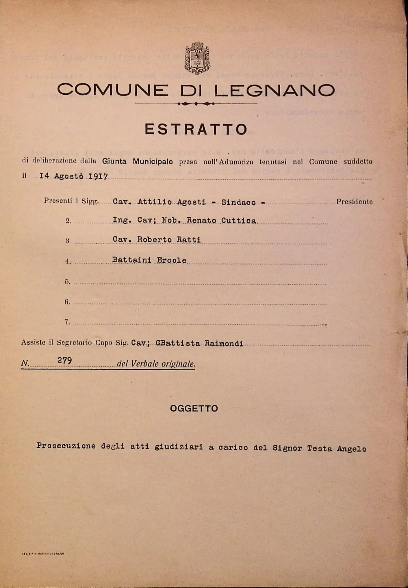 | Classificazione | I.9 - Cause, Liti, Conflitti riguardanti l’Amministrazione Comunale |