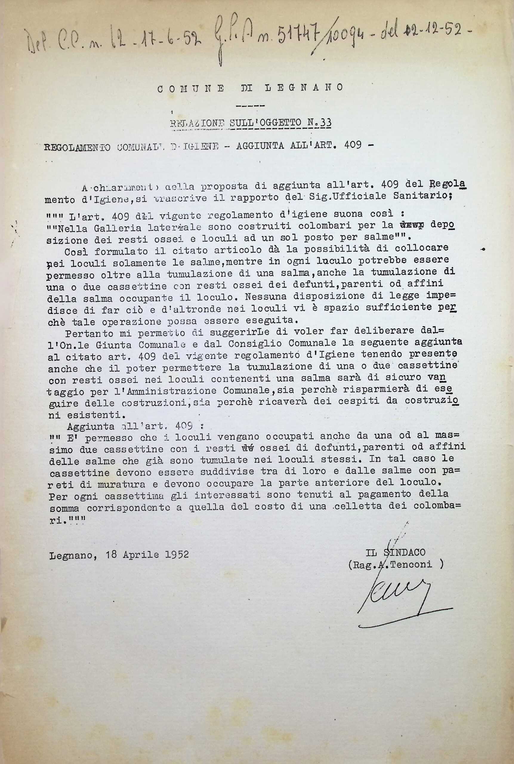 | Classificazione | IV.5 - Igiene pubblica; Regolamento; Macelli |