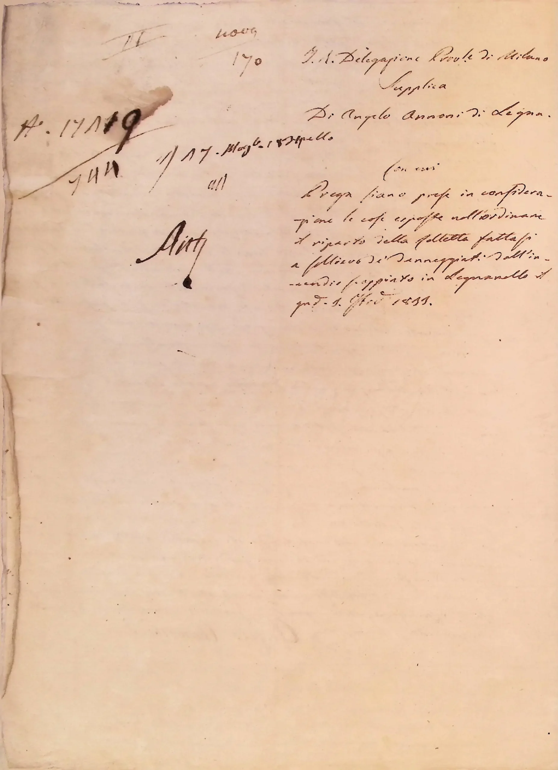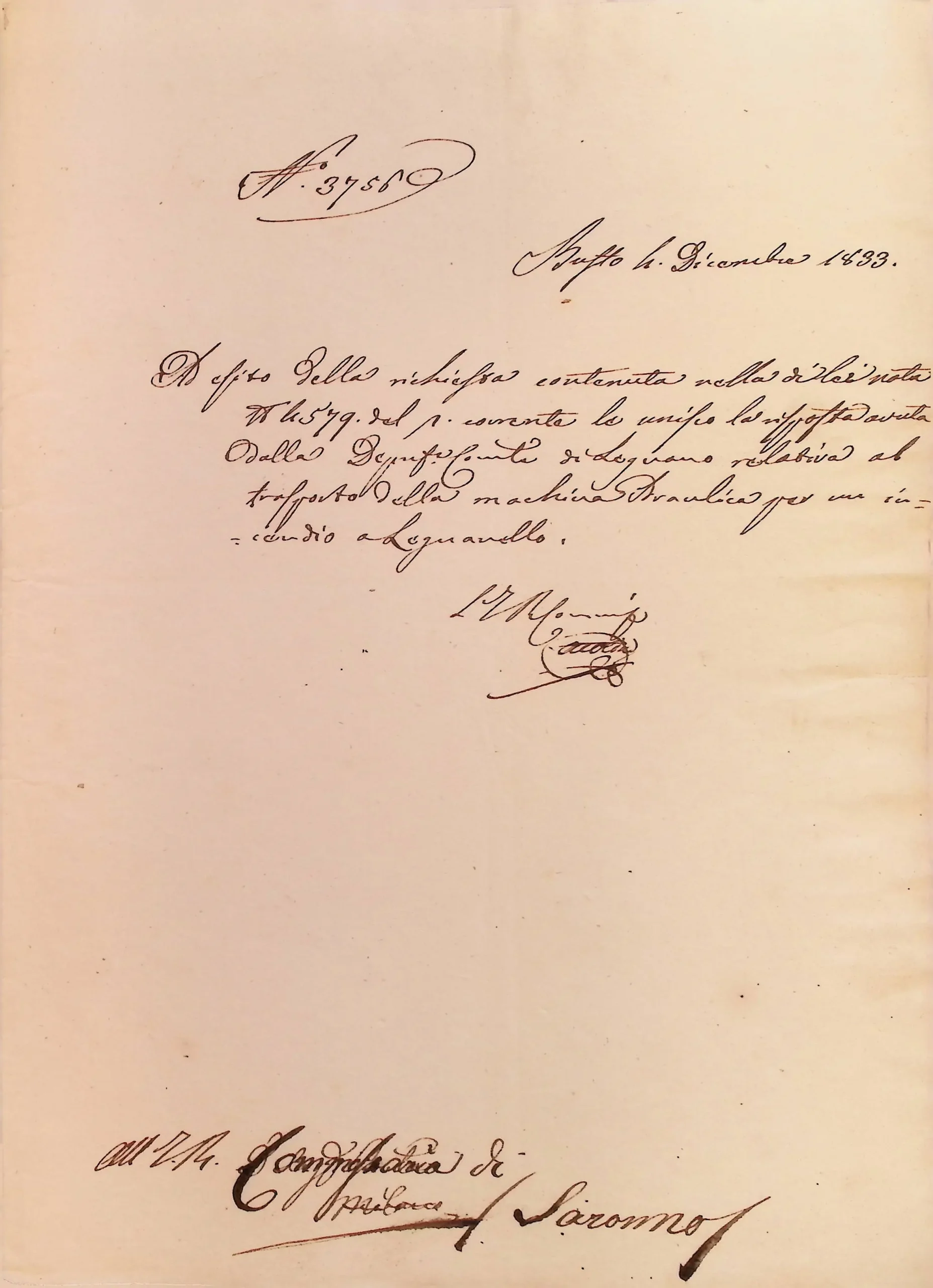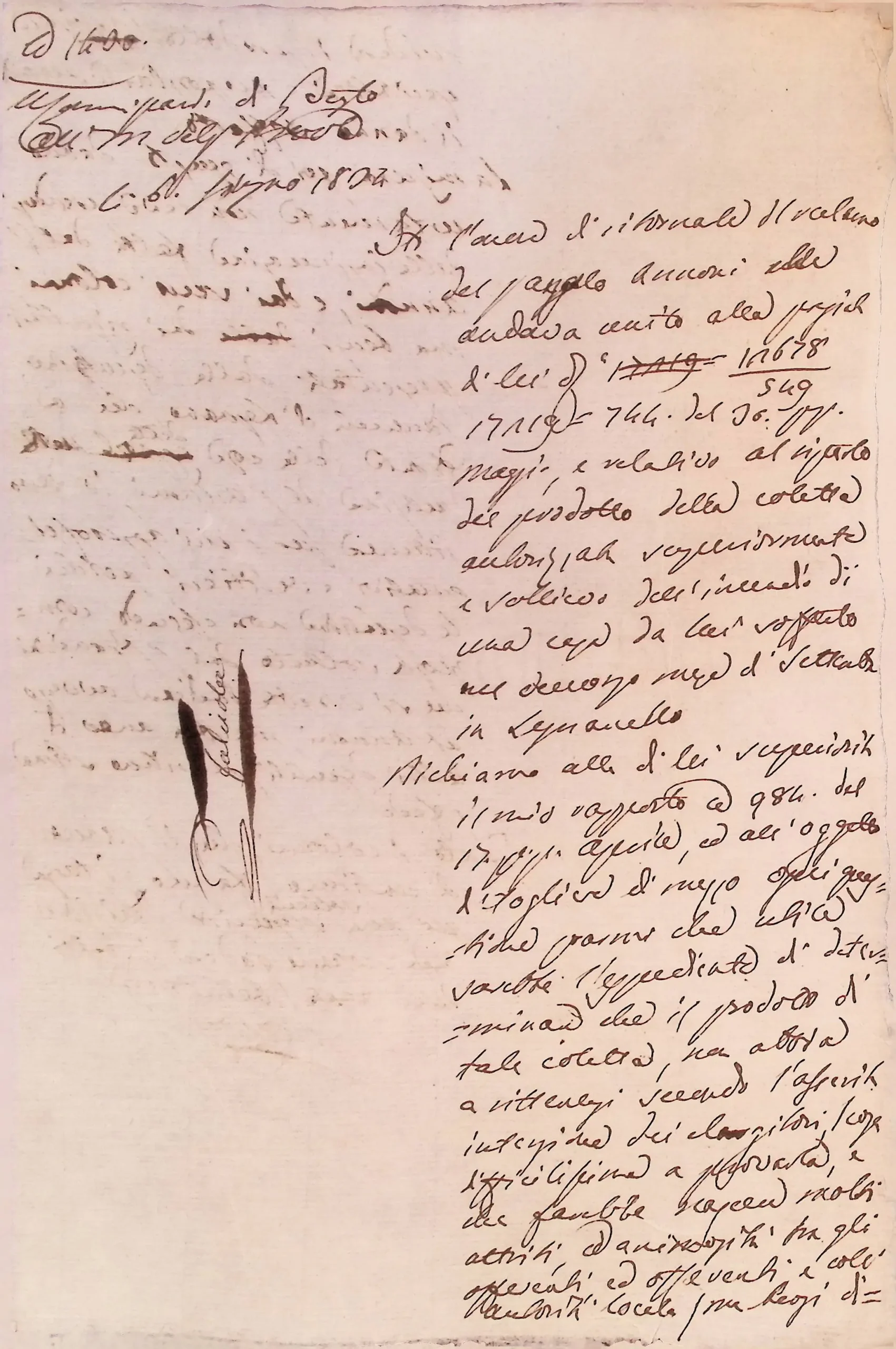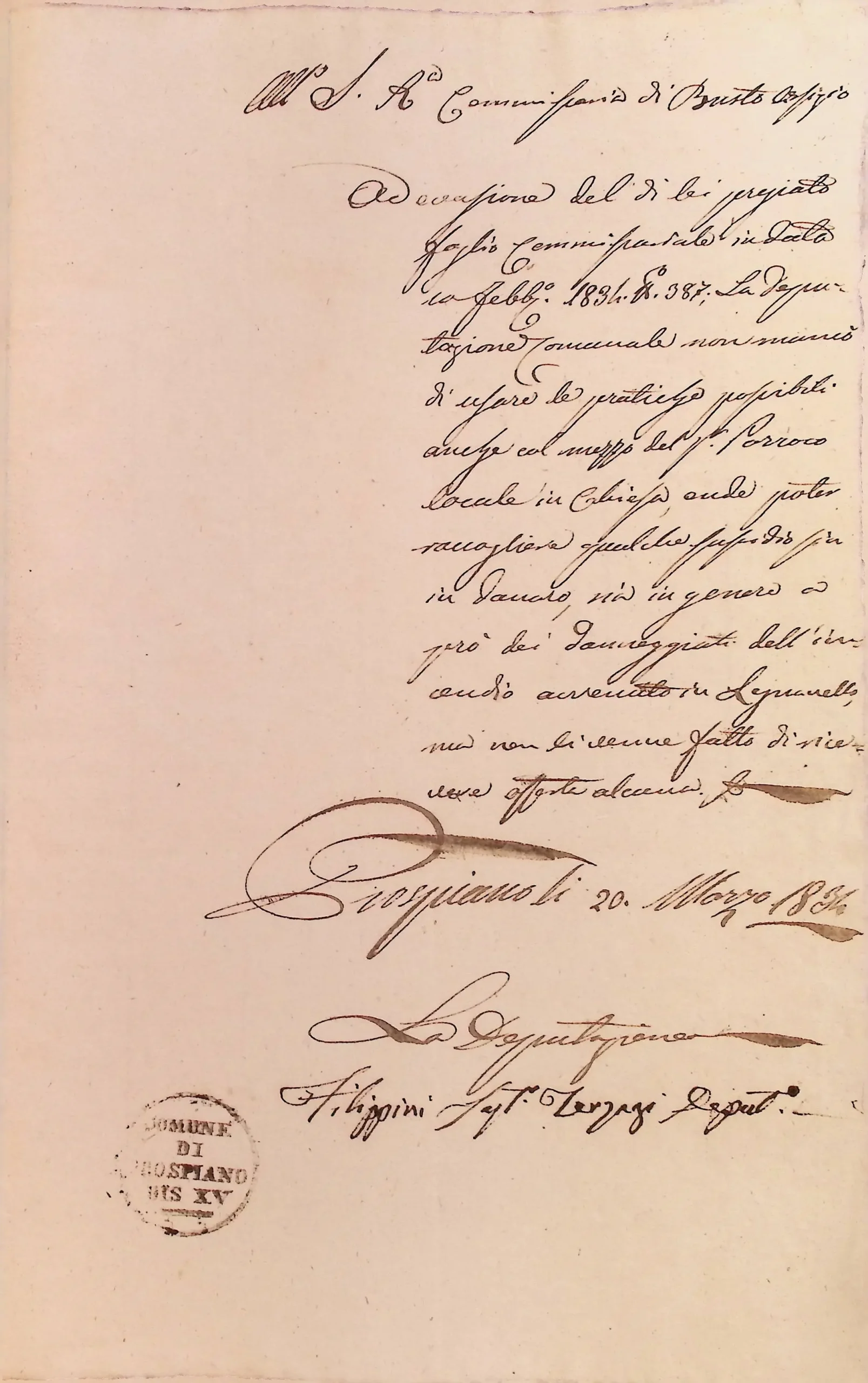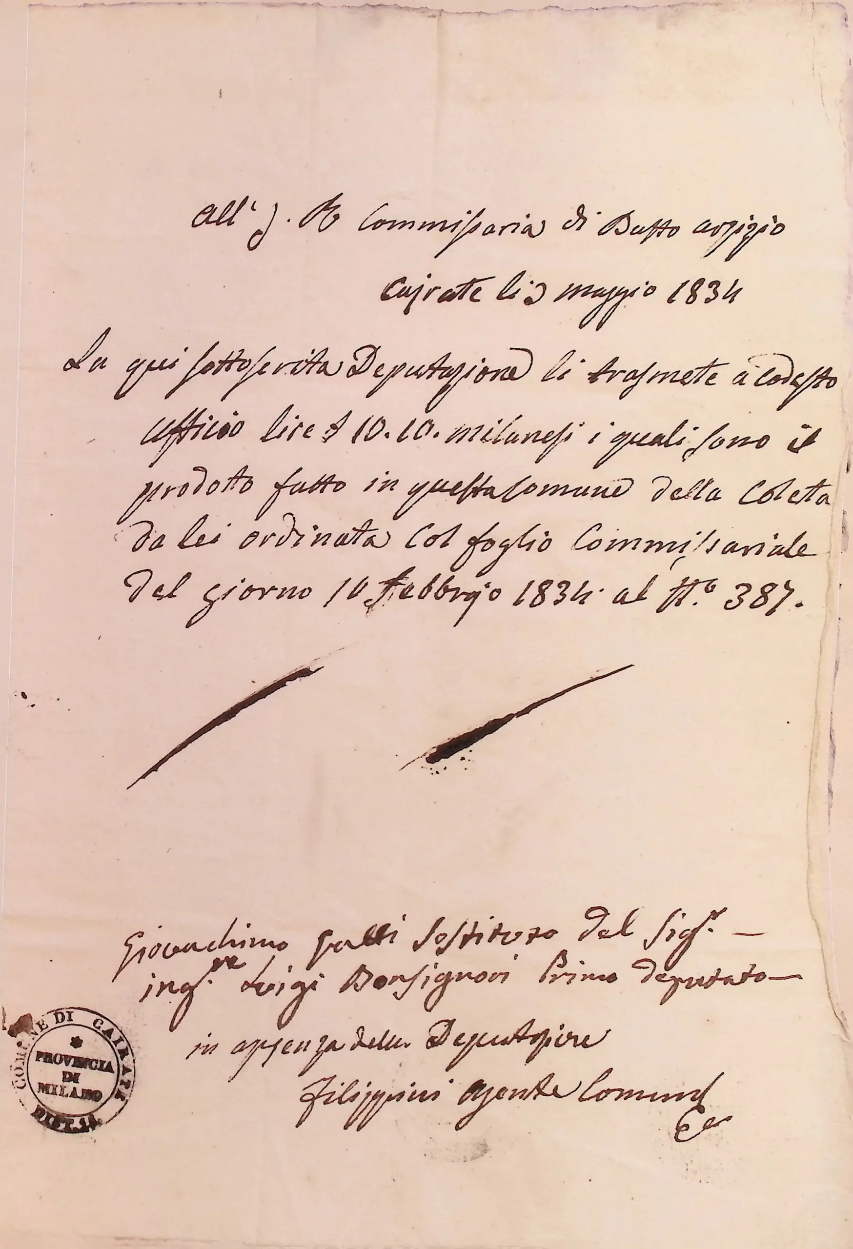 Carteggio relativo all’incendio verificatosi in Legnarello il 23 settembre 1833, alle spese per l’intervento dei vigili del fuoco e al pagamento dei sussidi ai danneggiati