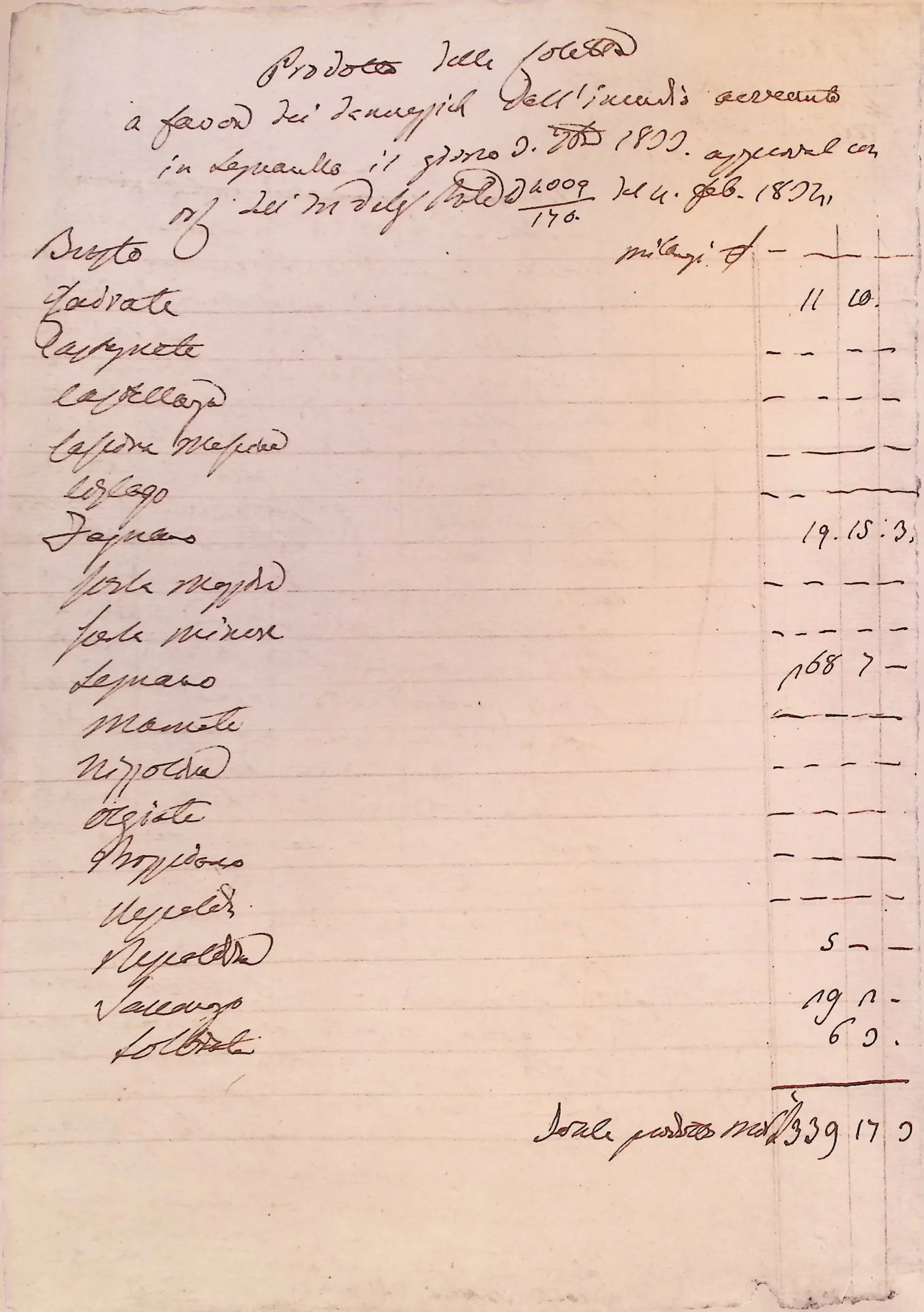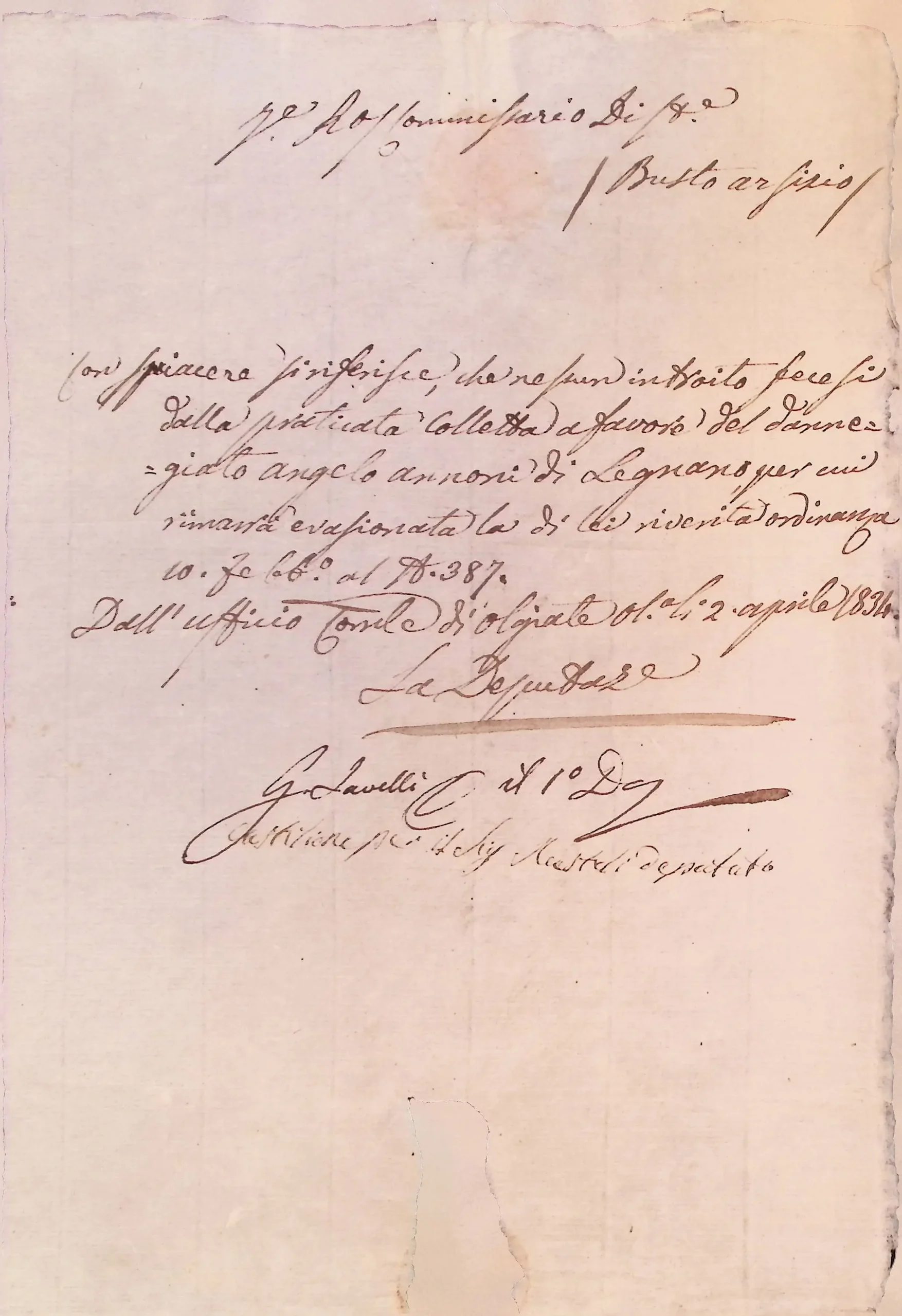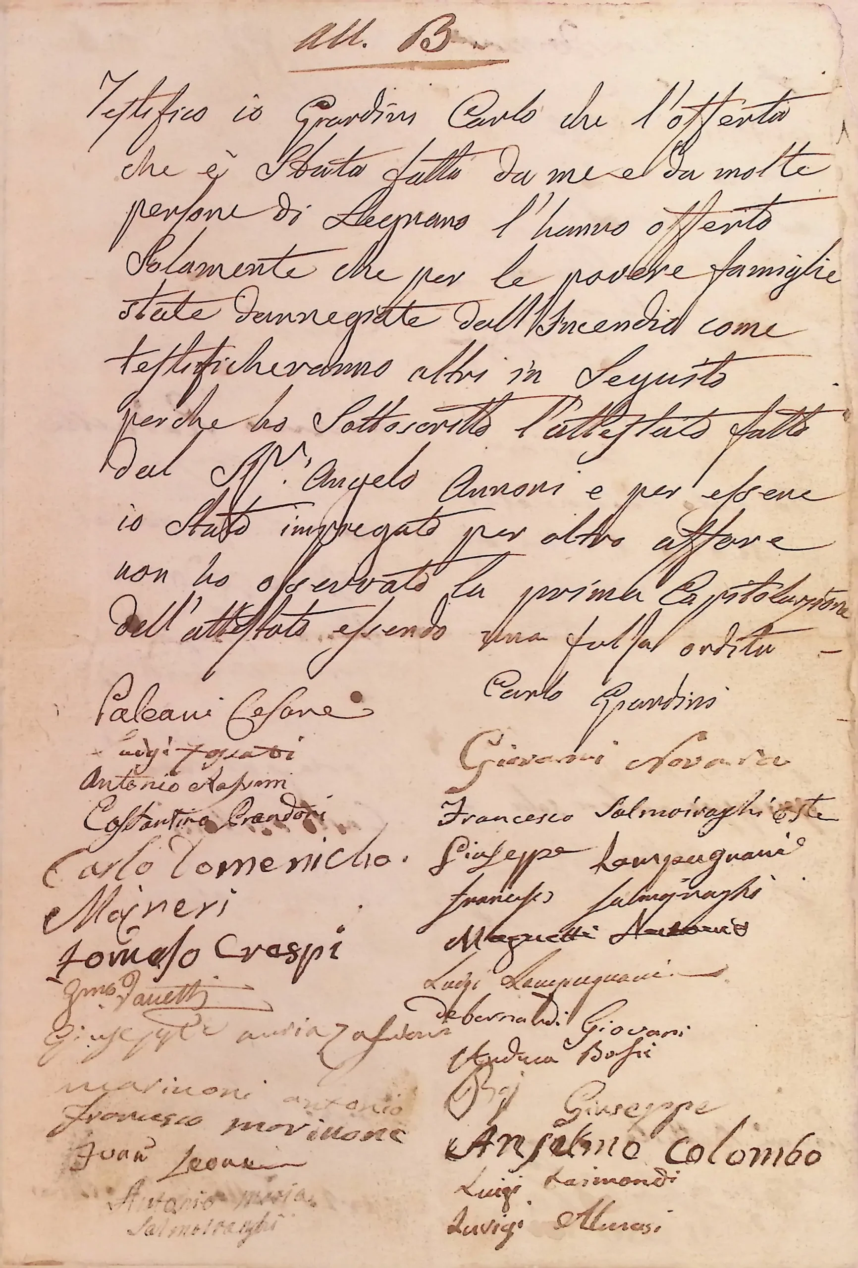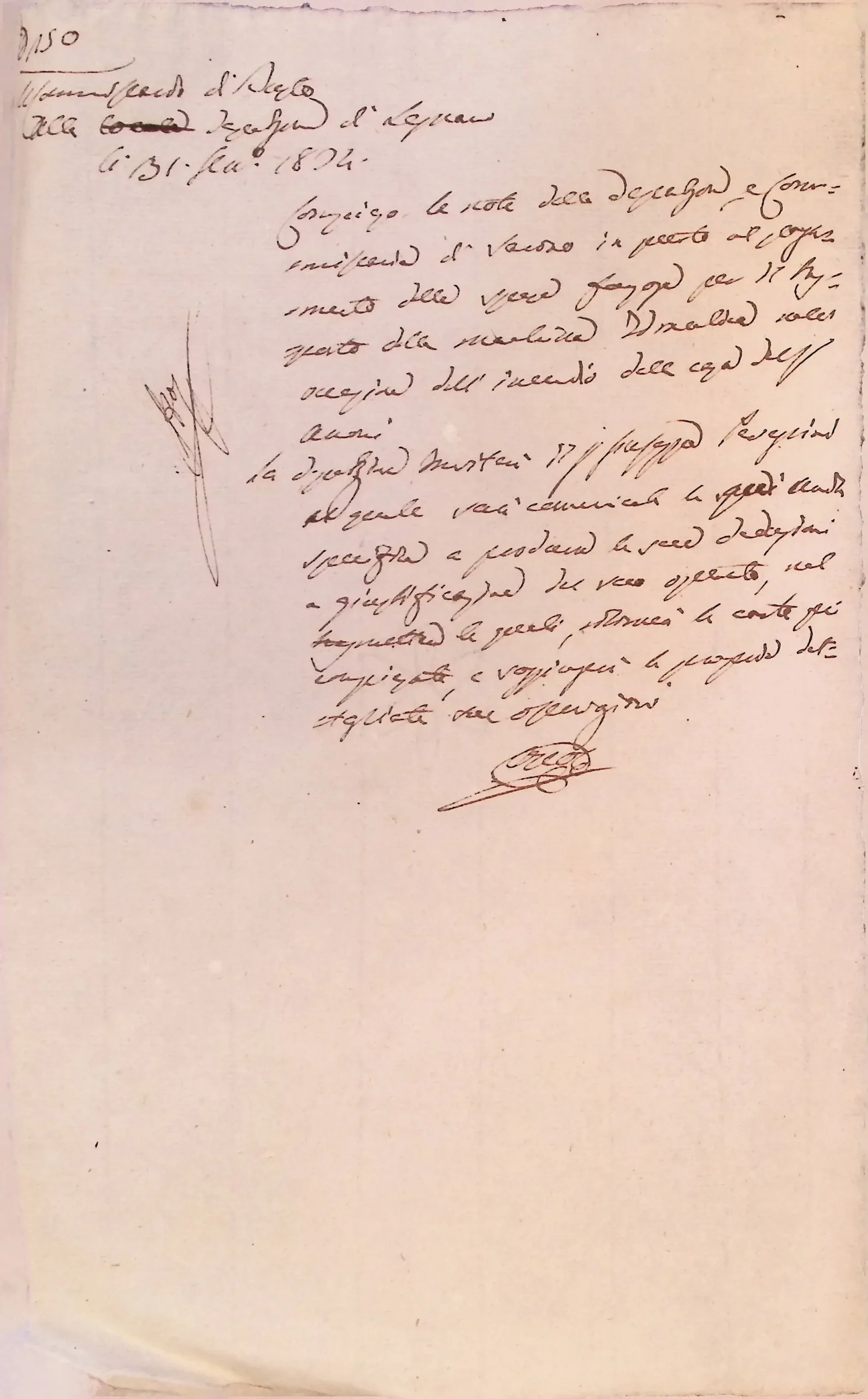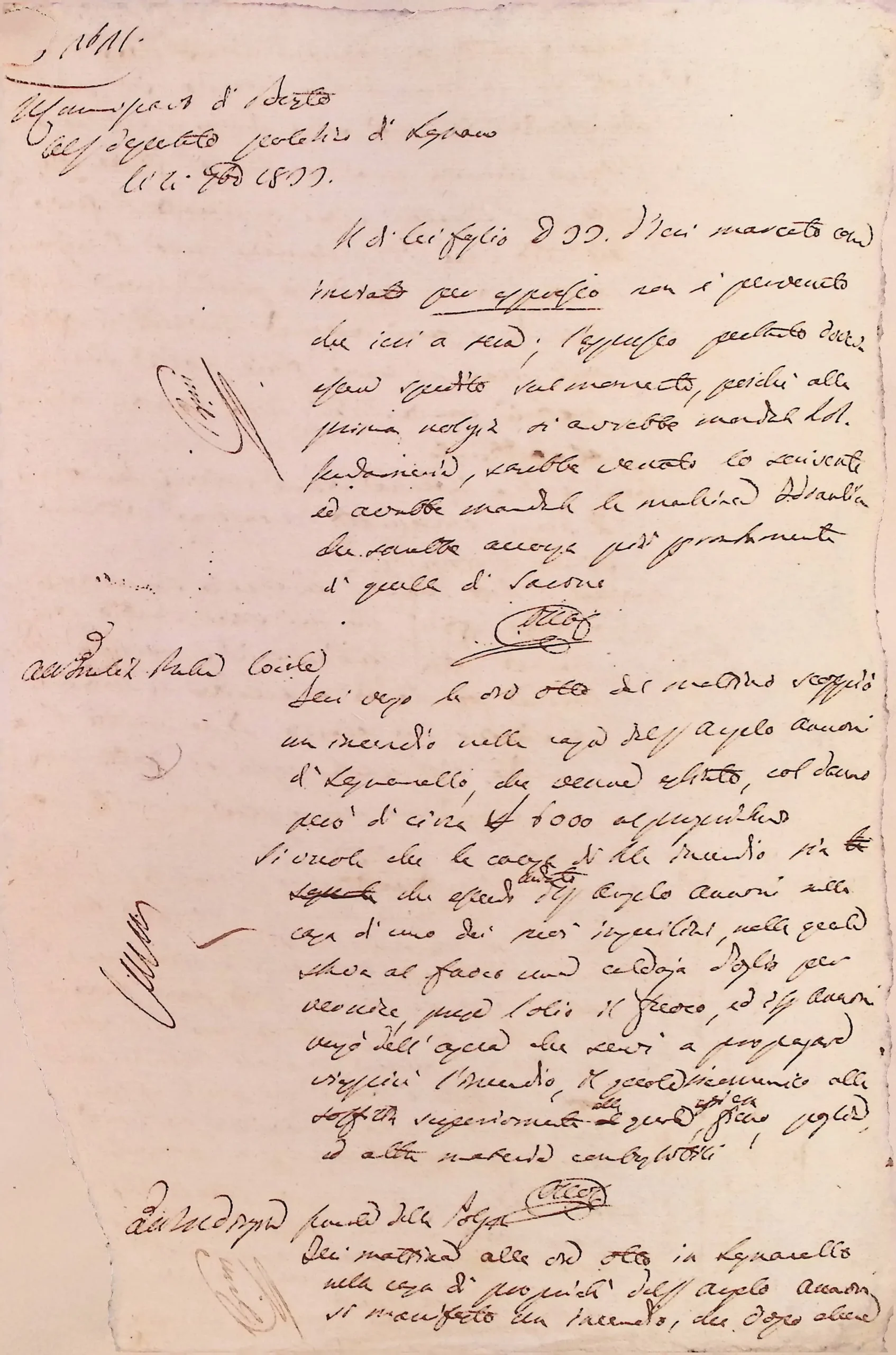 Carteggio relativo all’incendio verificatosi in Legnarello il 23 settembre 1833, alle spese per l’intervento dei vigili del fuoco e al pagamento dei sussidi ai danneggiati