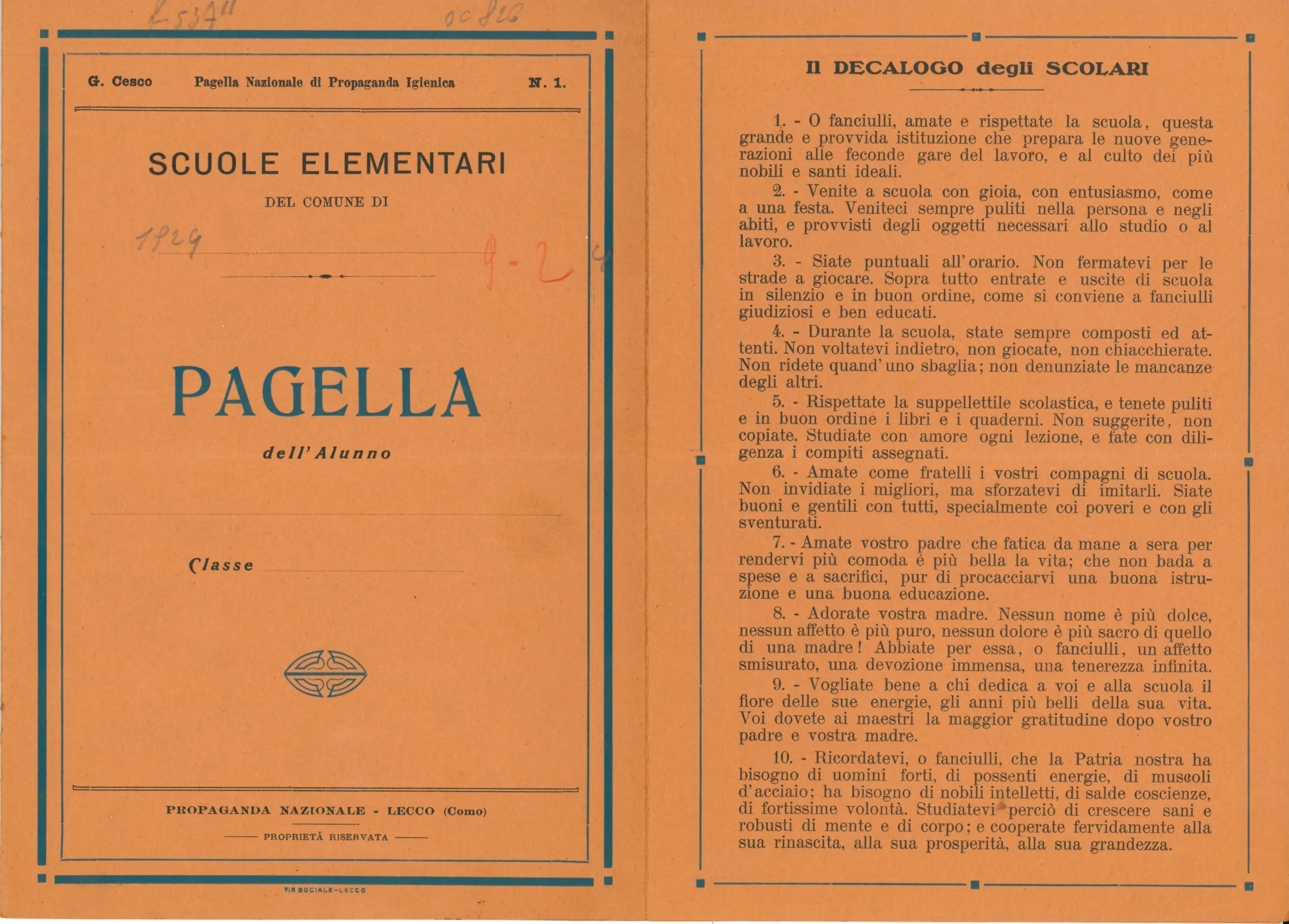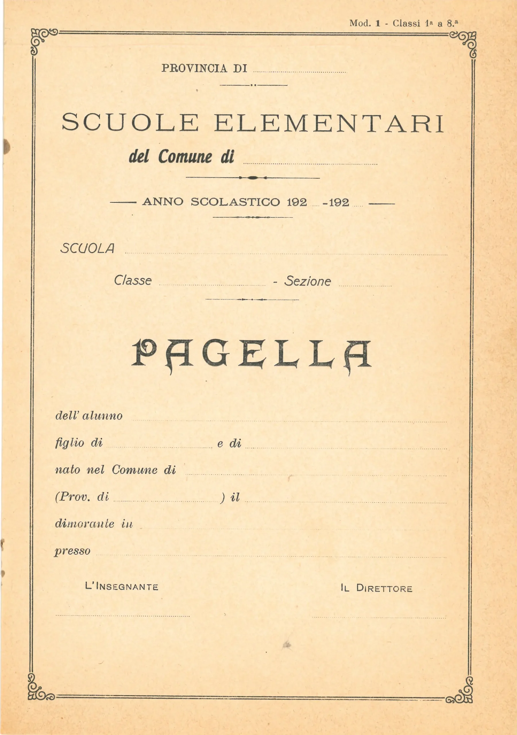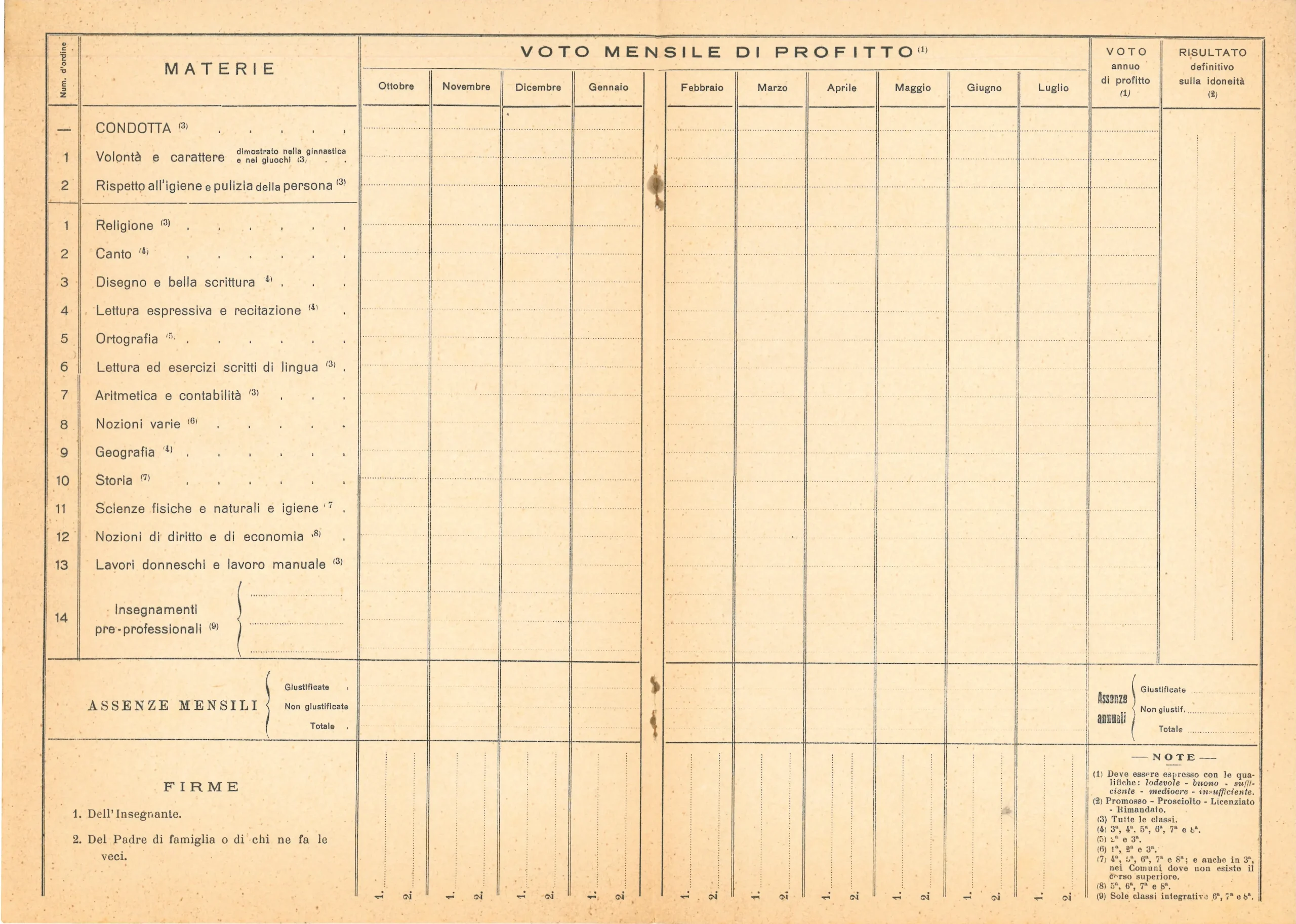 Pagella tipo delle Scuole Elementari proposta dal Ministero