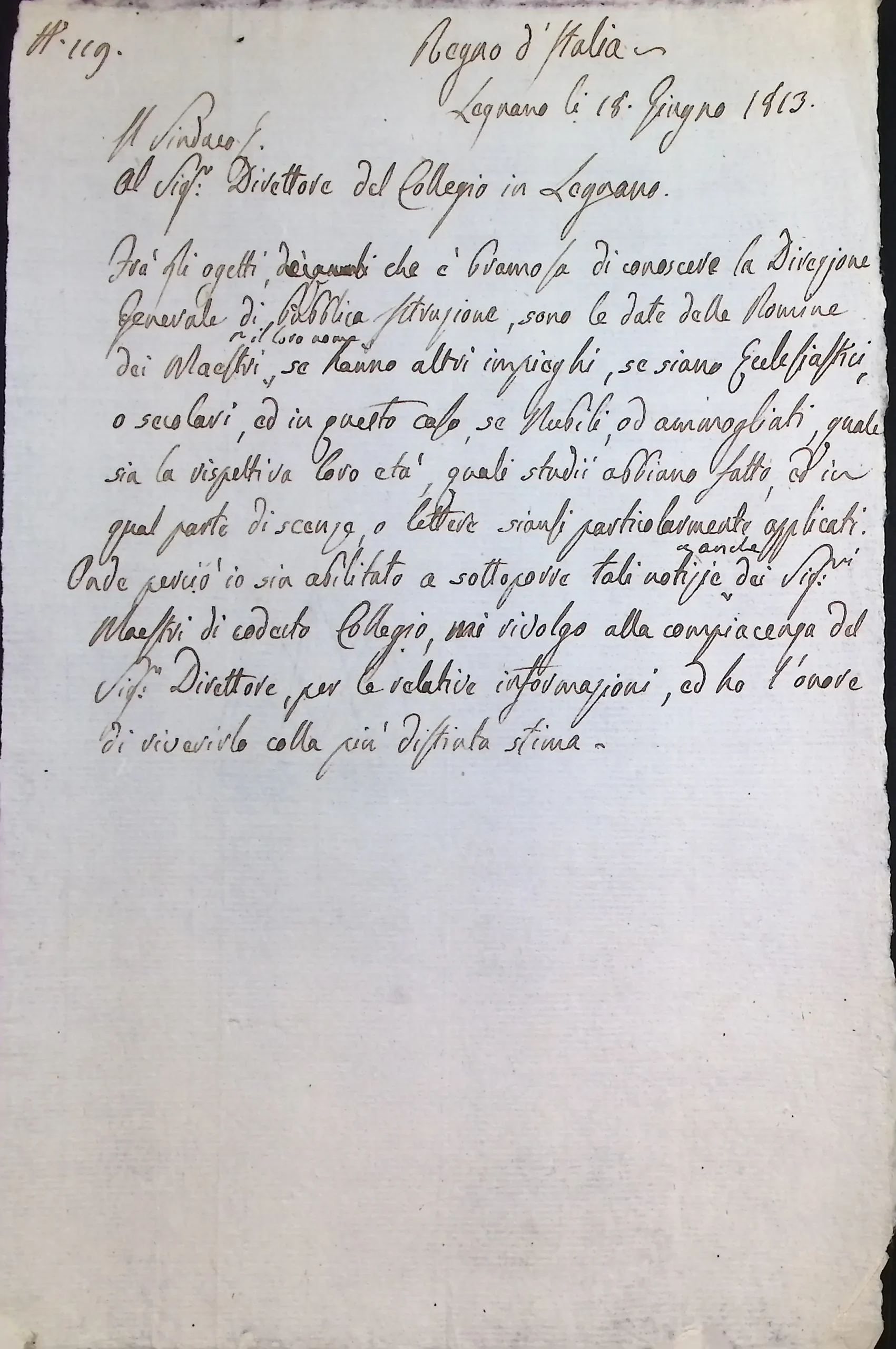 Carteggio con la Vice Prefettura in merito alla nomina dei docenti del Collegio di proprietà di Antonio Marocco