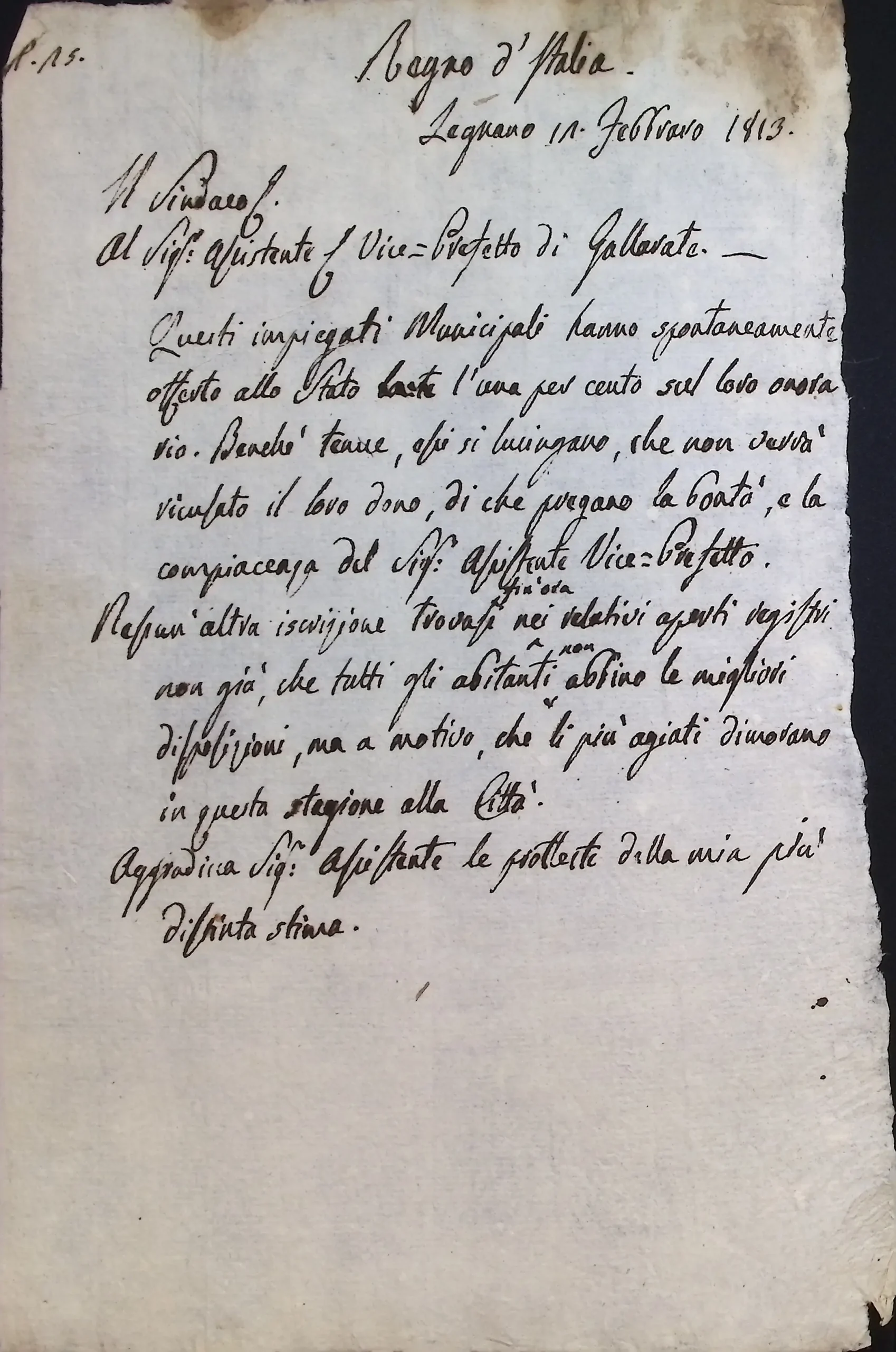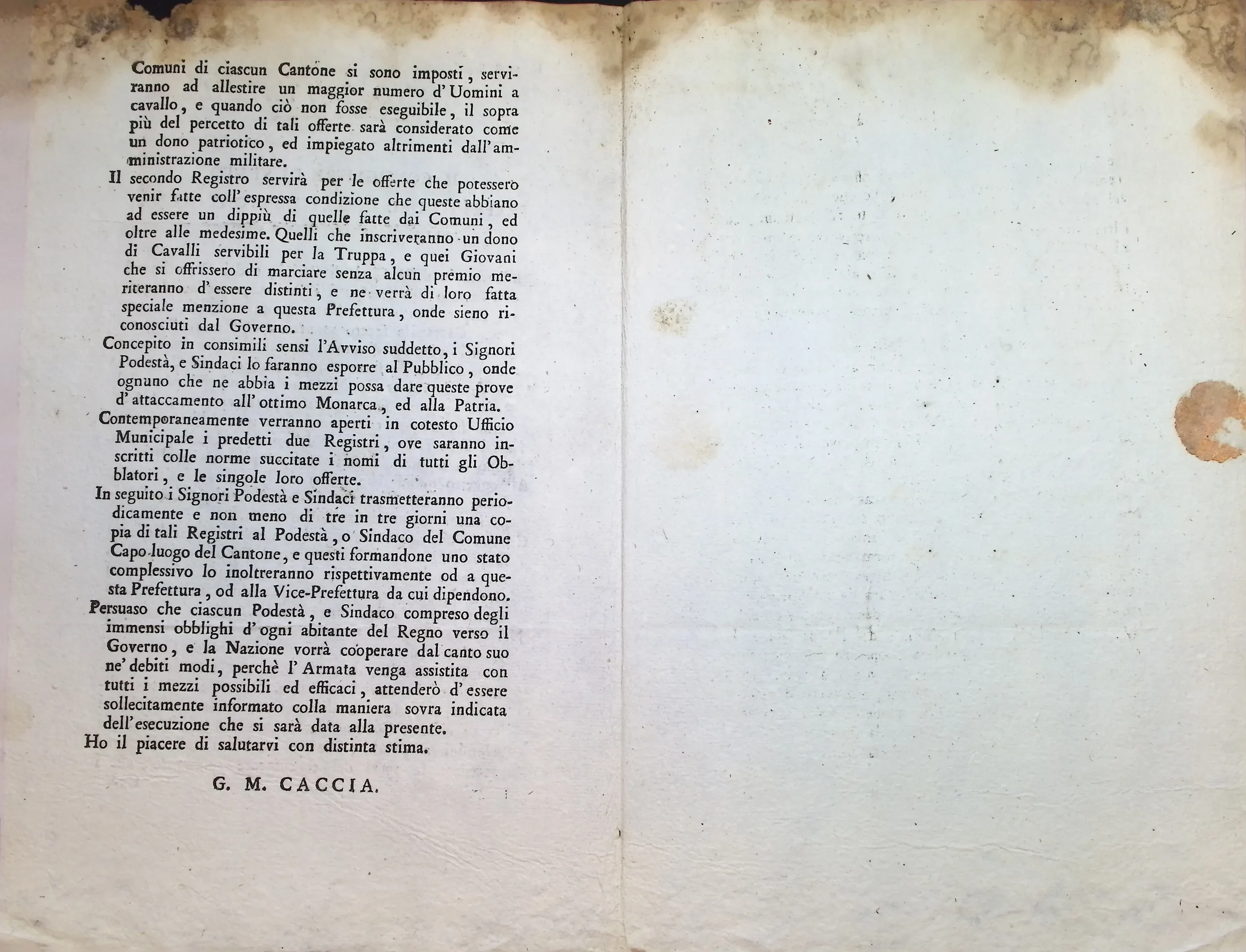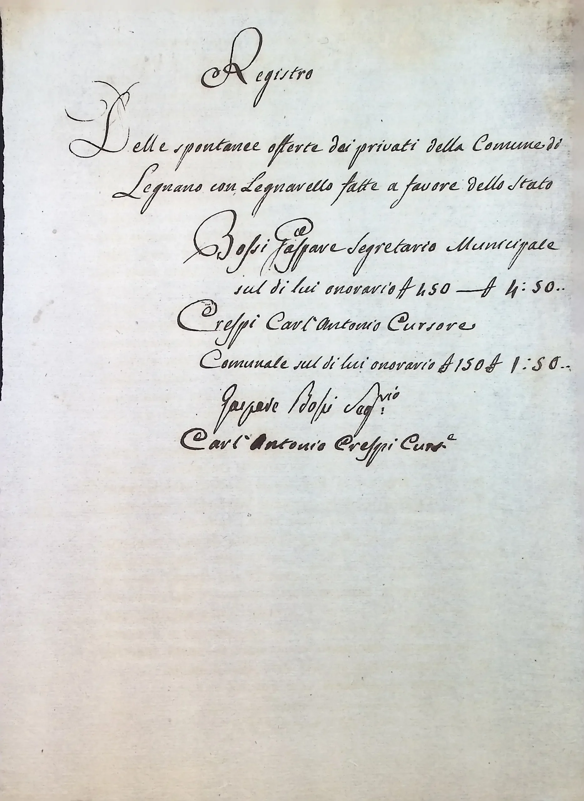 Raccolta di fondi tra gli impiegati e i possidenti del Comune per il sostegno delle spese militari